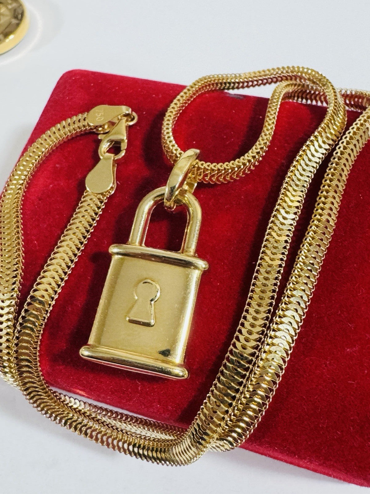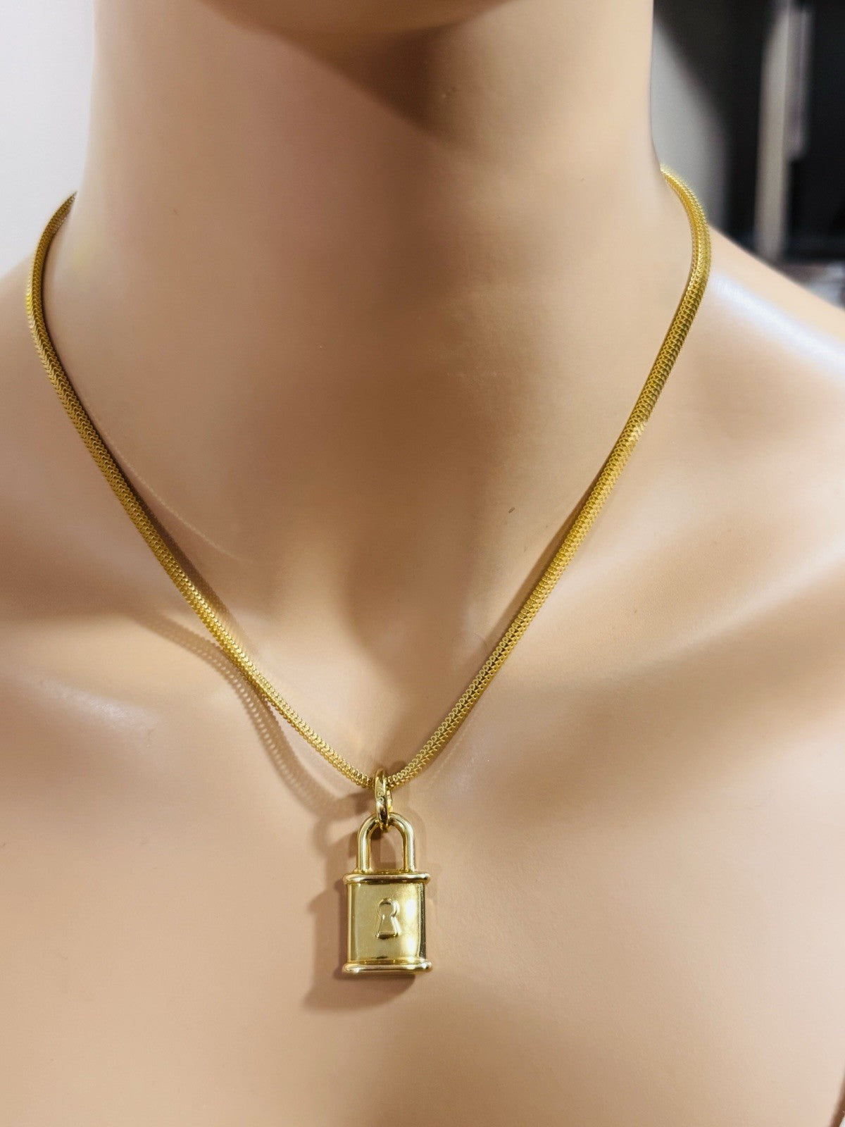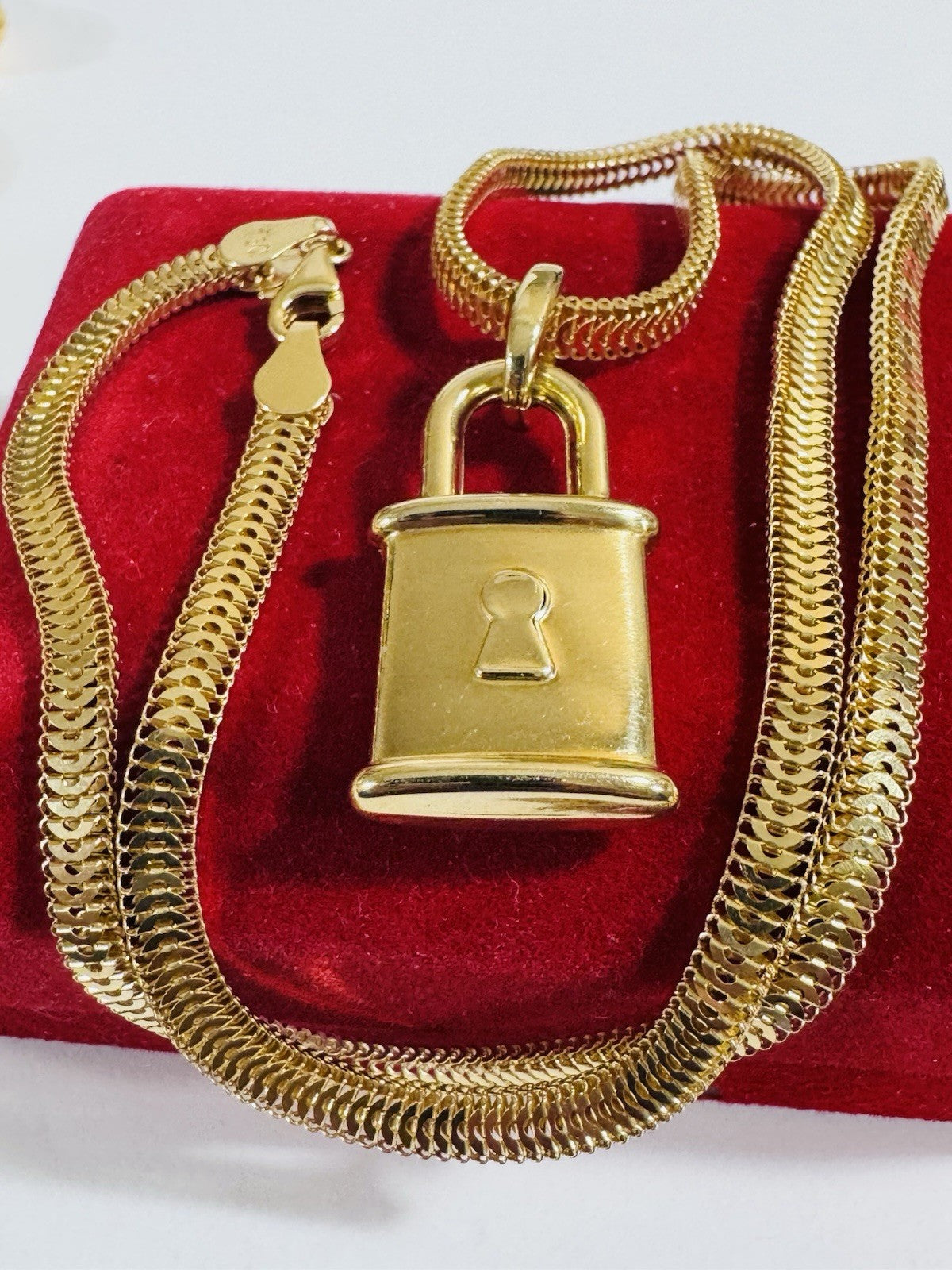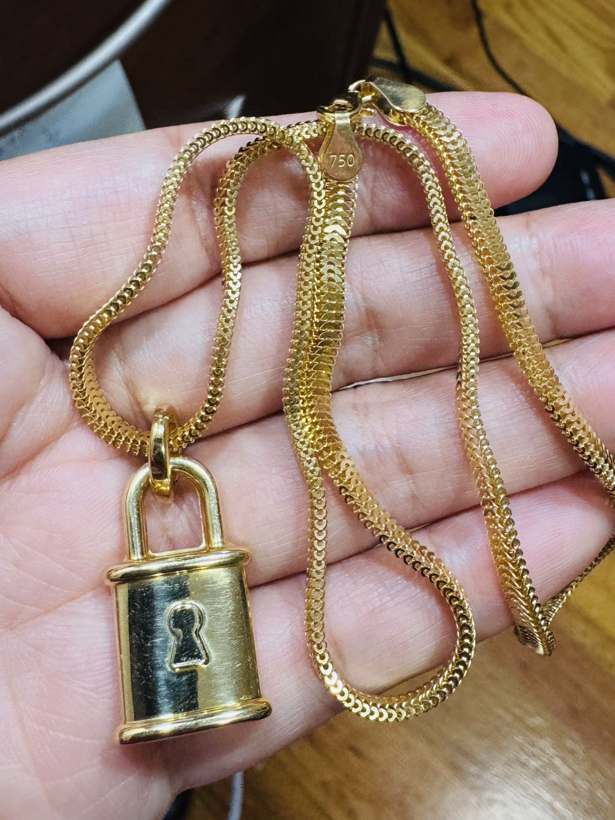 Pure 750 18K Fine Gold Snake Chain Padlock Set Necklace 18” Long 4mm 14.66g
