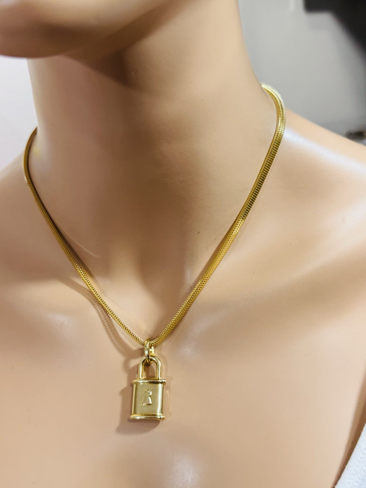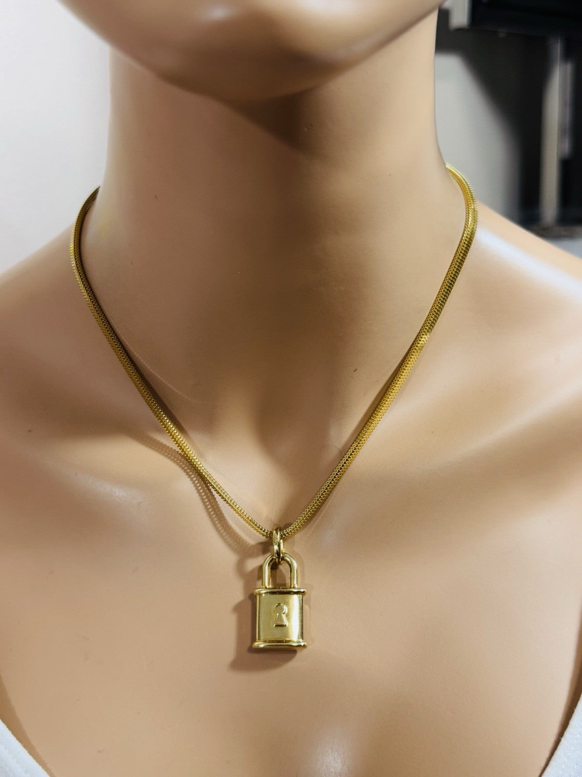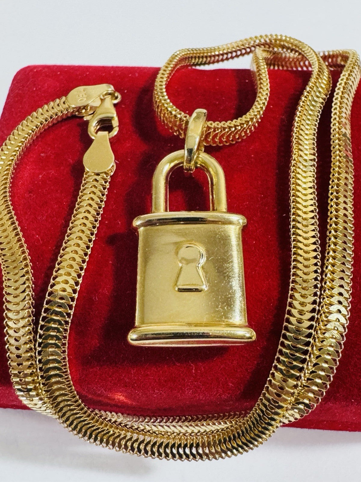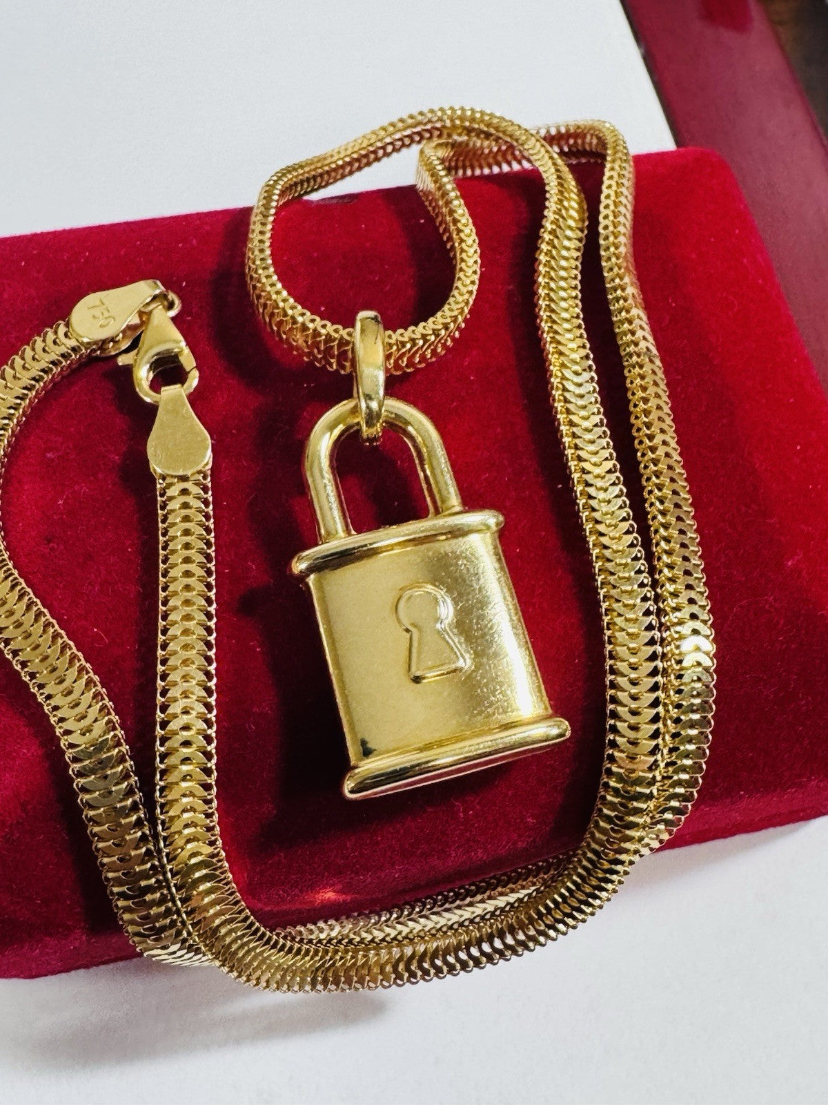 Pure 750 18K Fine Gold Snake Chain Padlock Set Necklace 18” Long 4mm 14.66g