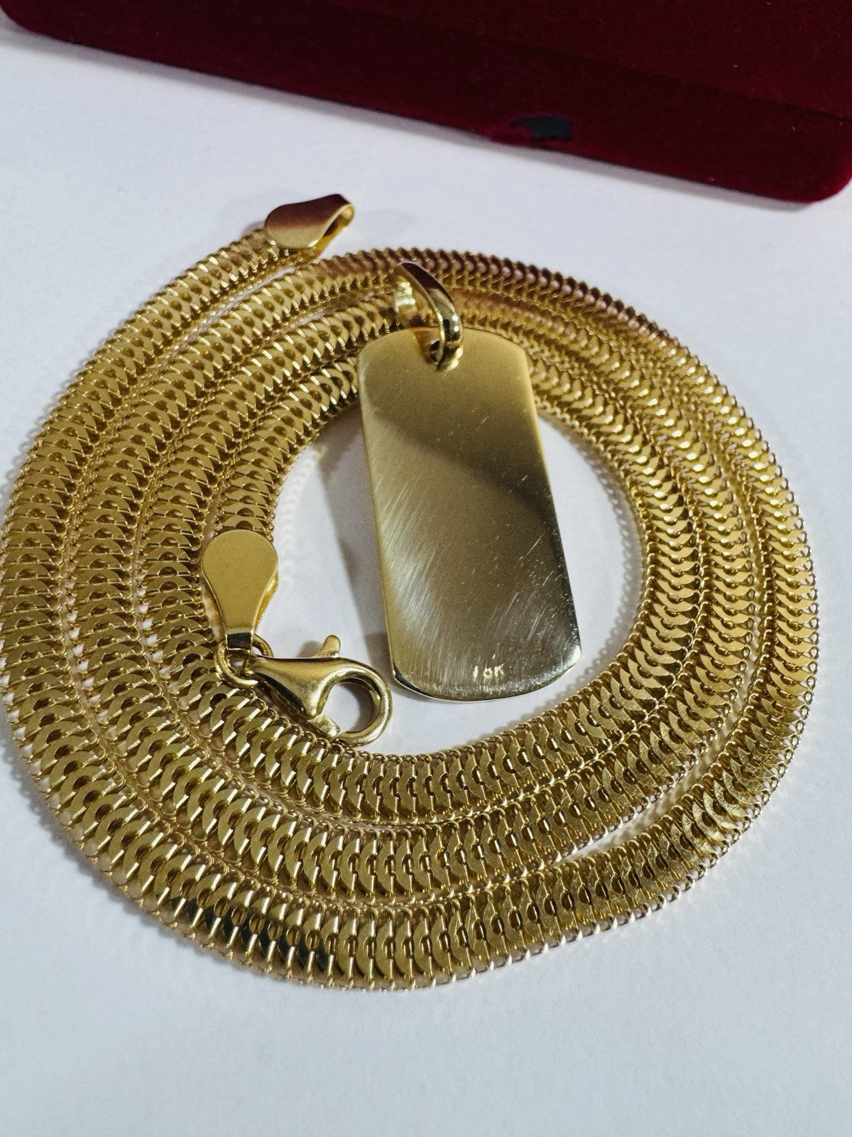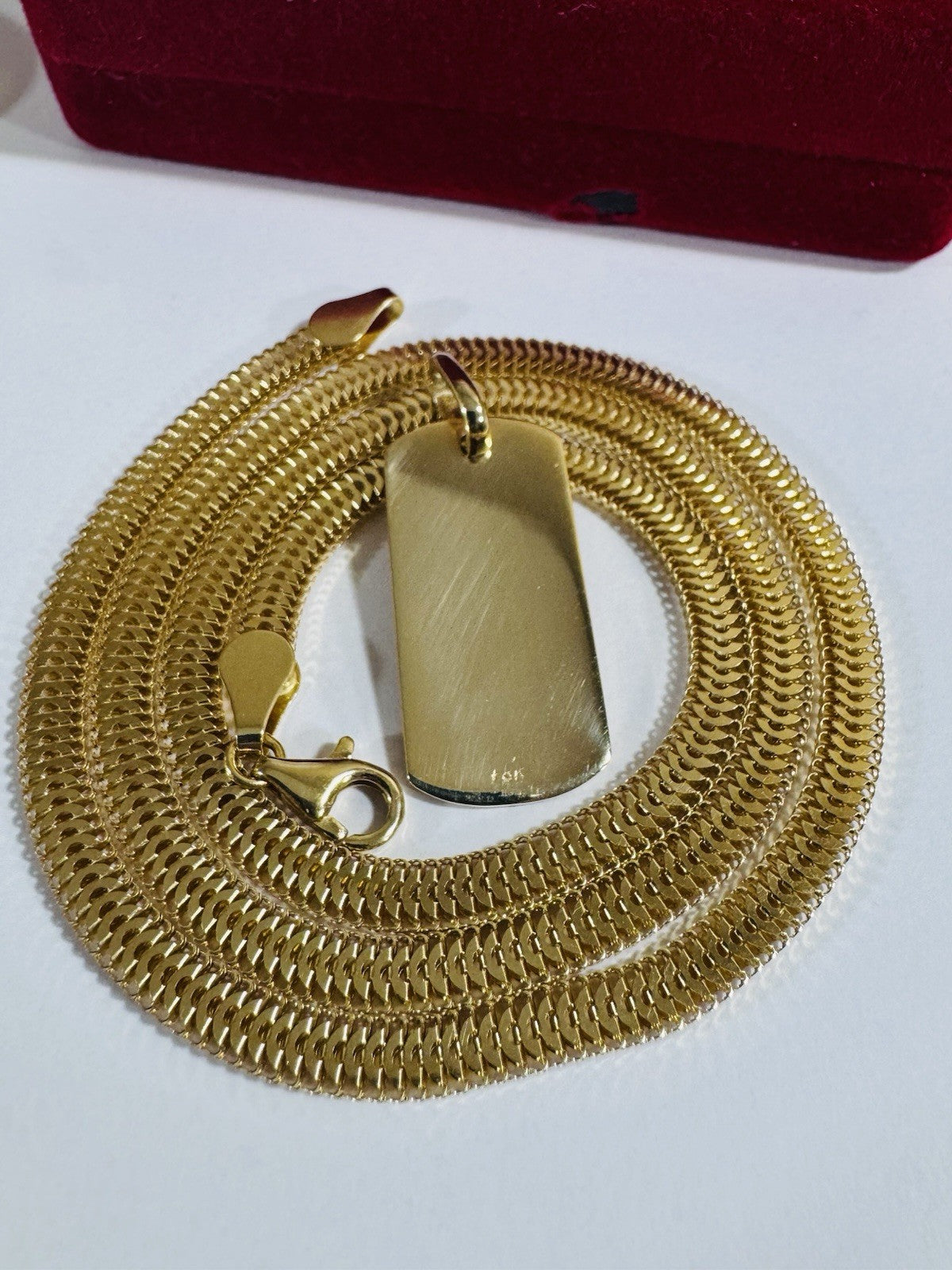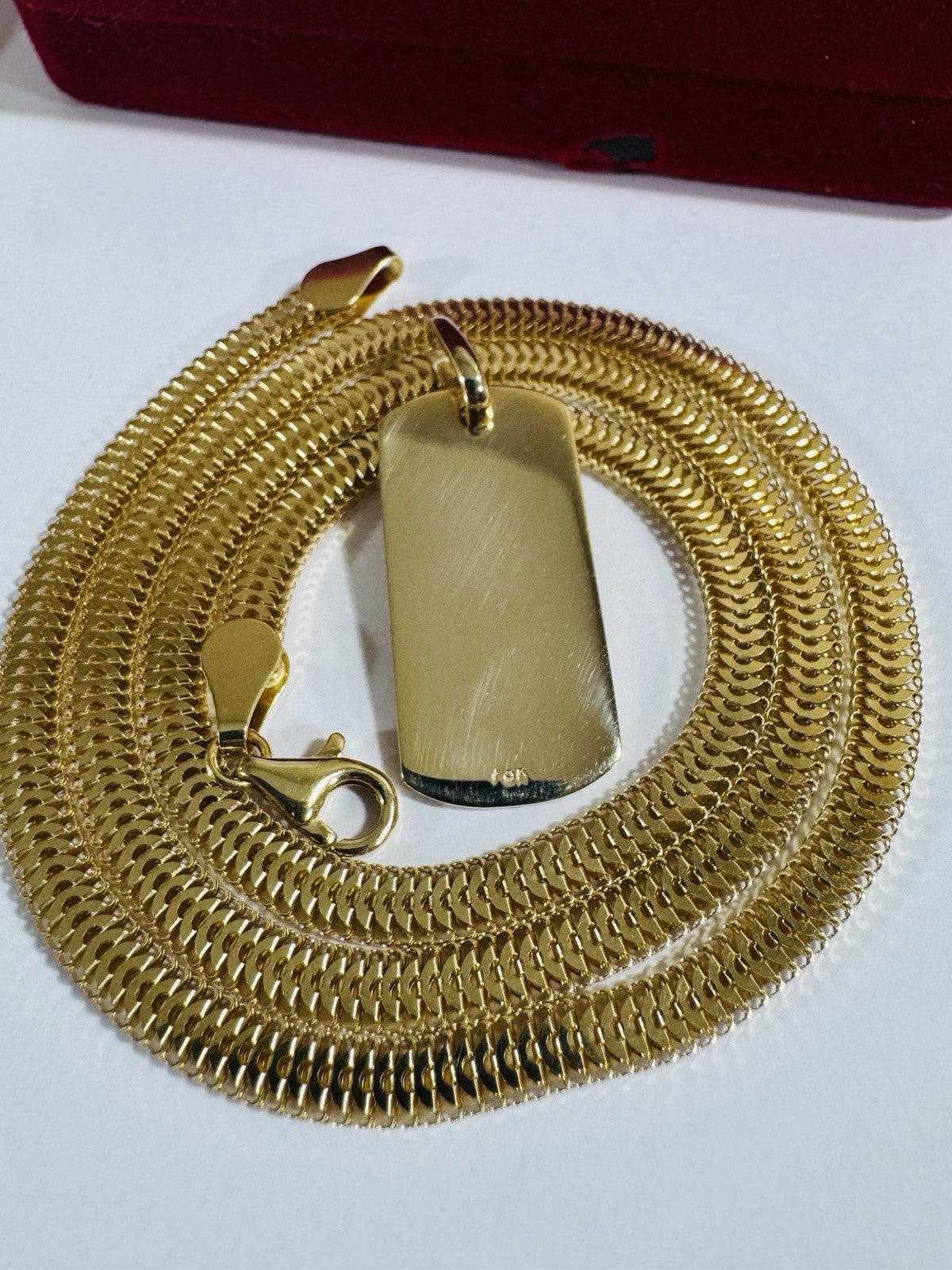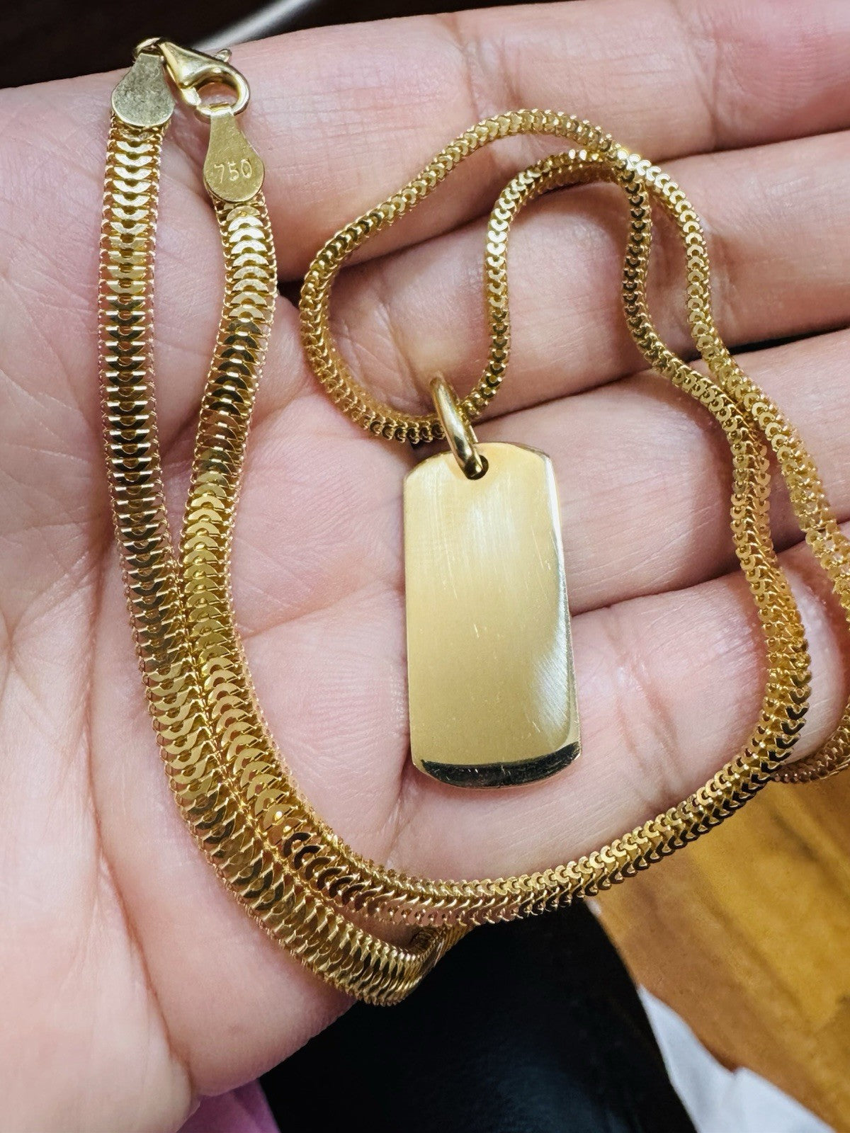 Pure 750 18K Fine Gold Snake Chain Rectangle Set Necklace 18” Long 4mm 17.45g