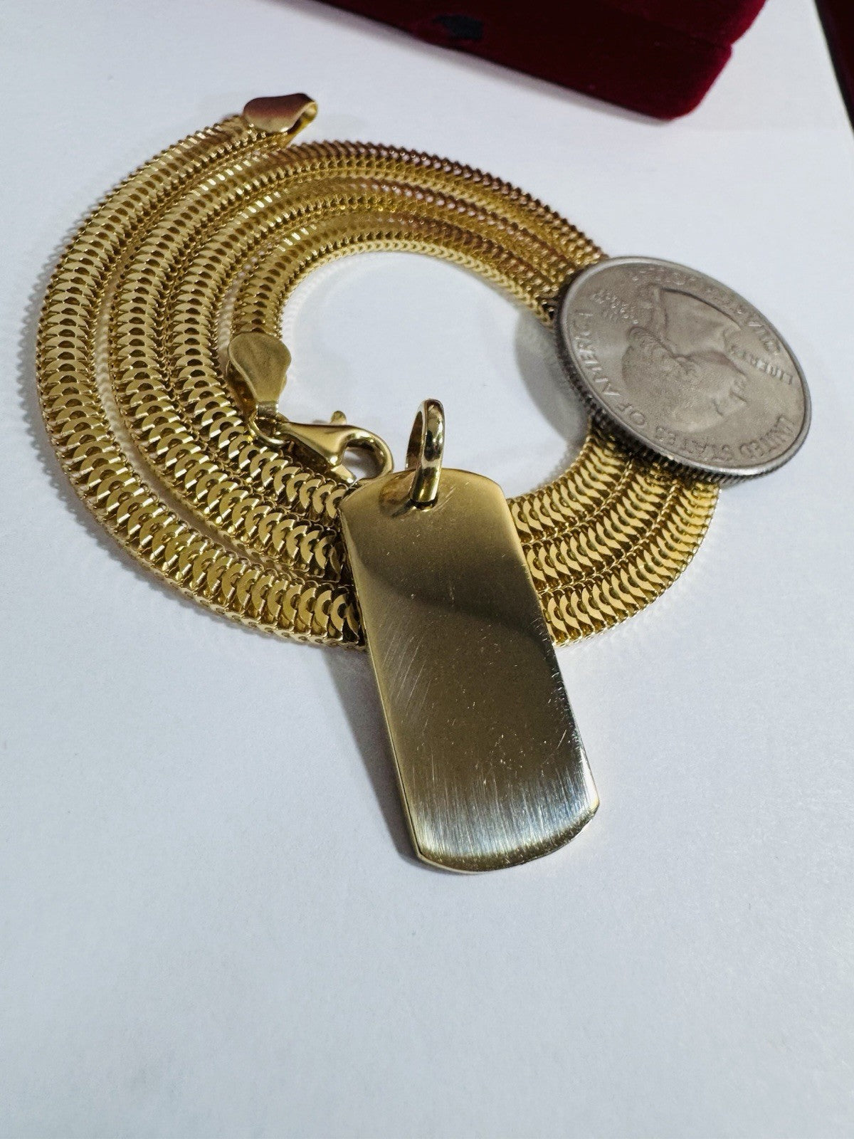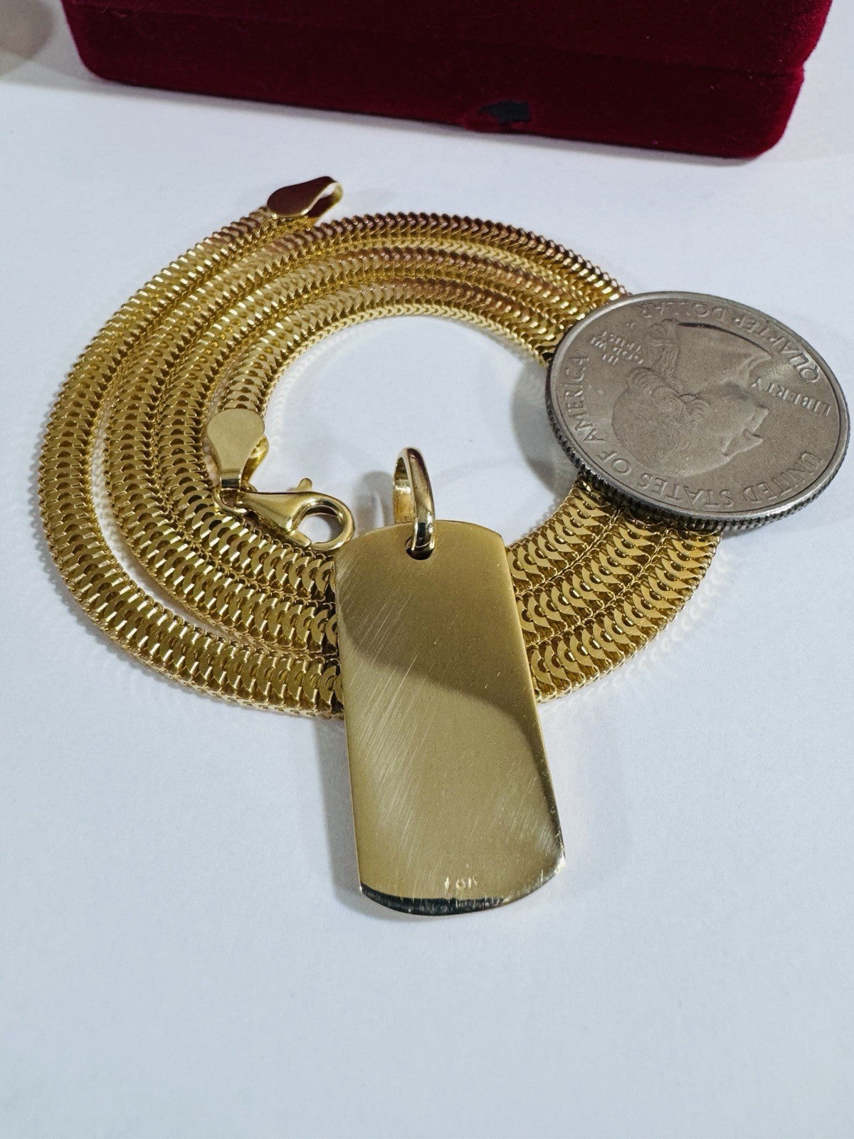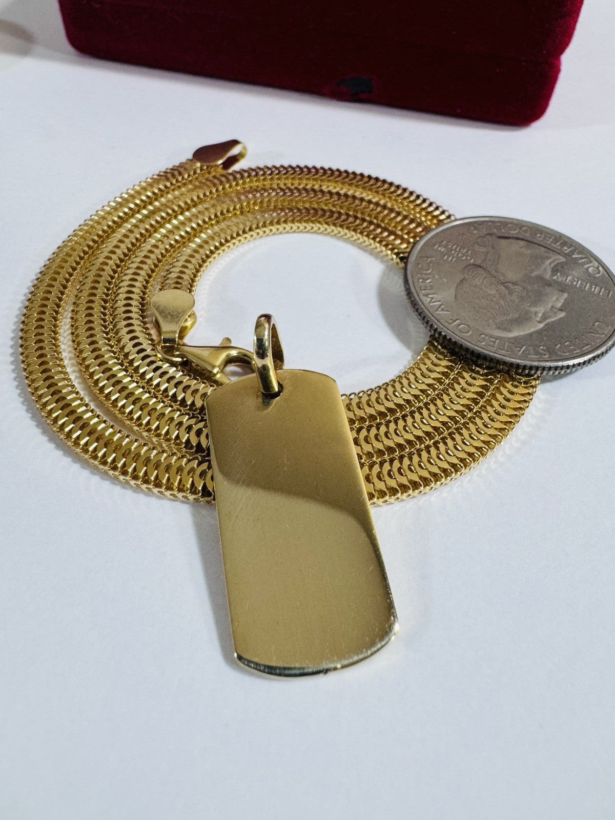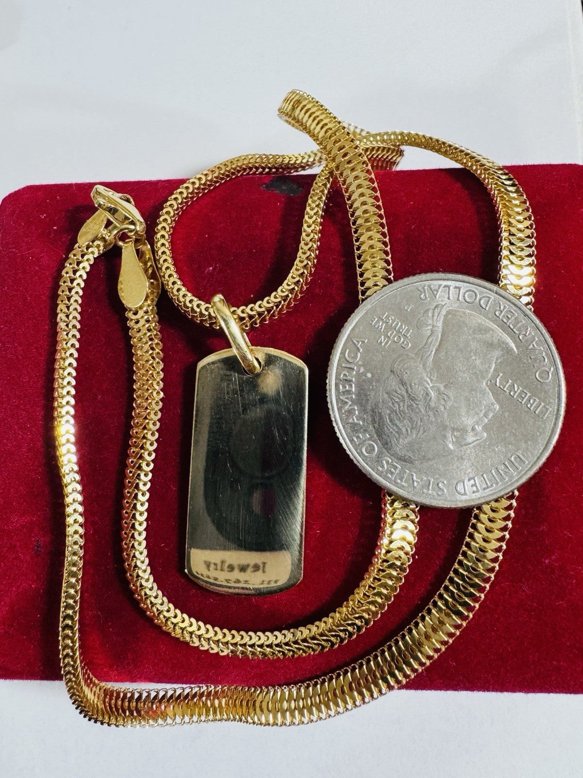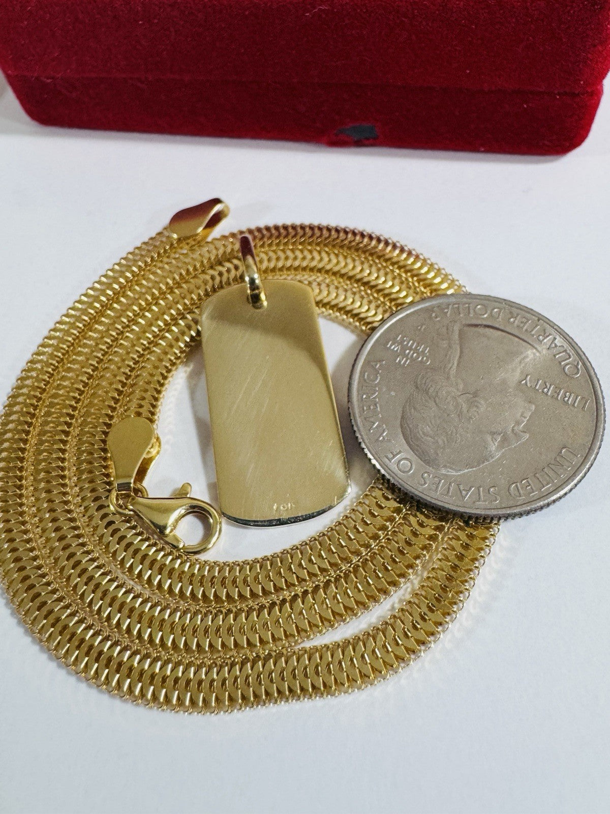 Pure 750 18K Fine Gold Snake Chain Rectangle Set Necklace 18” Long 4mm 17.45g