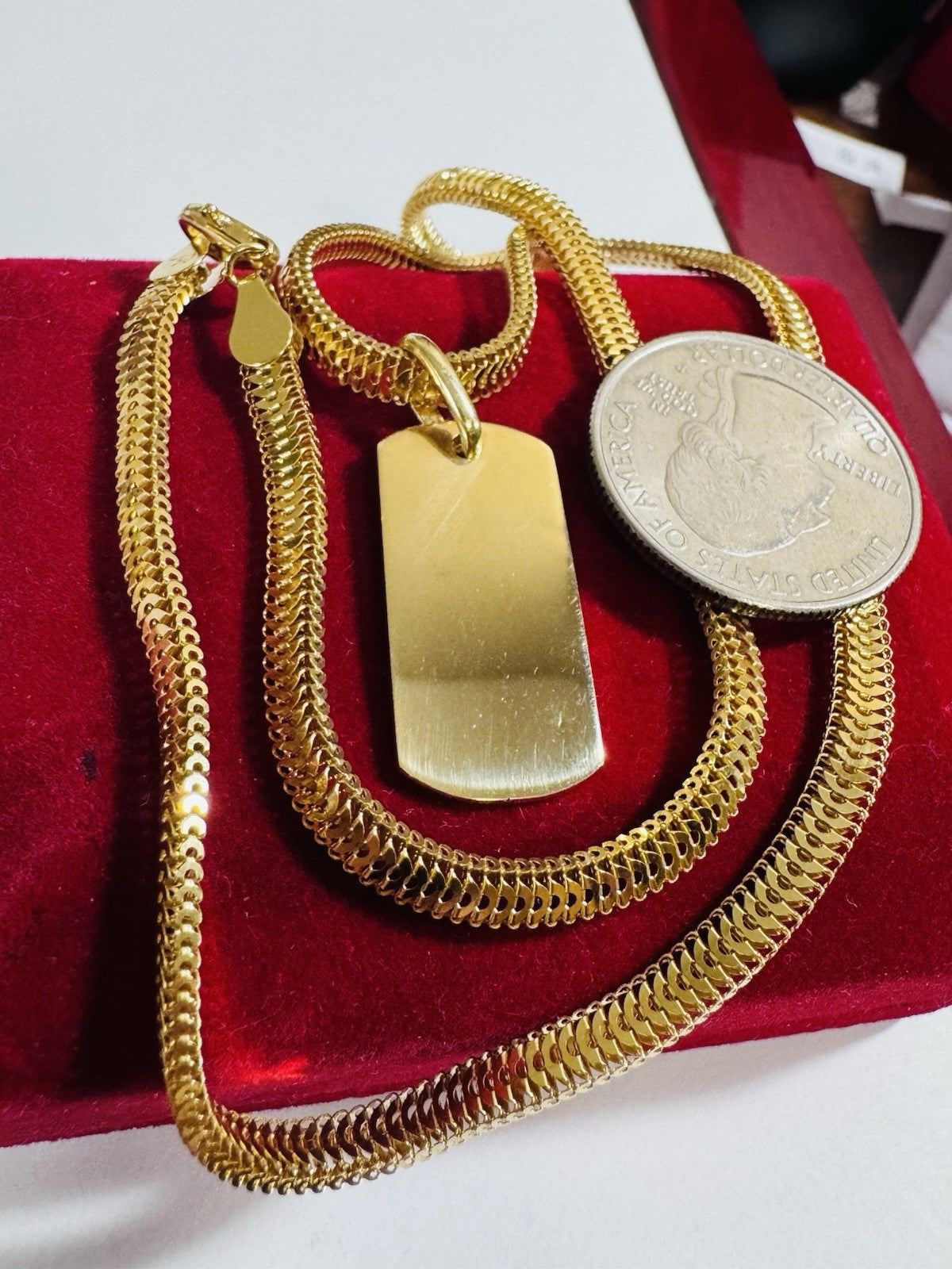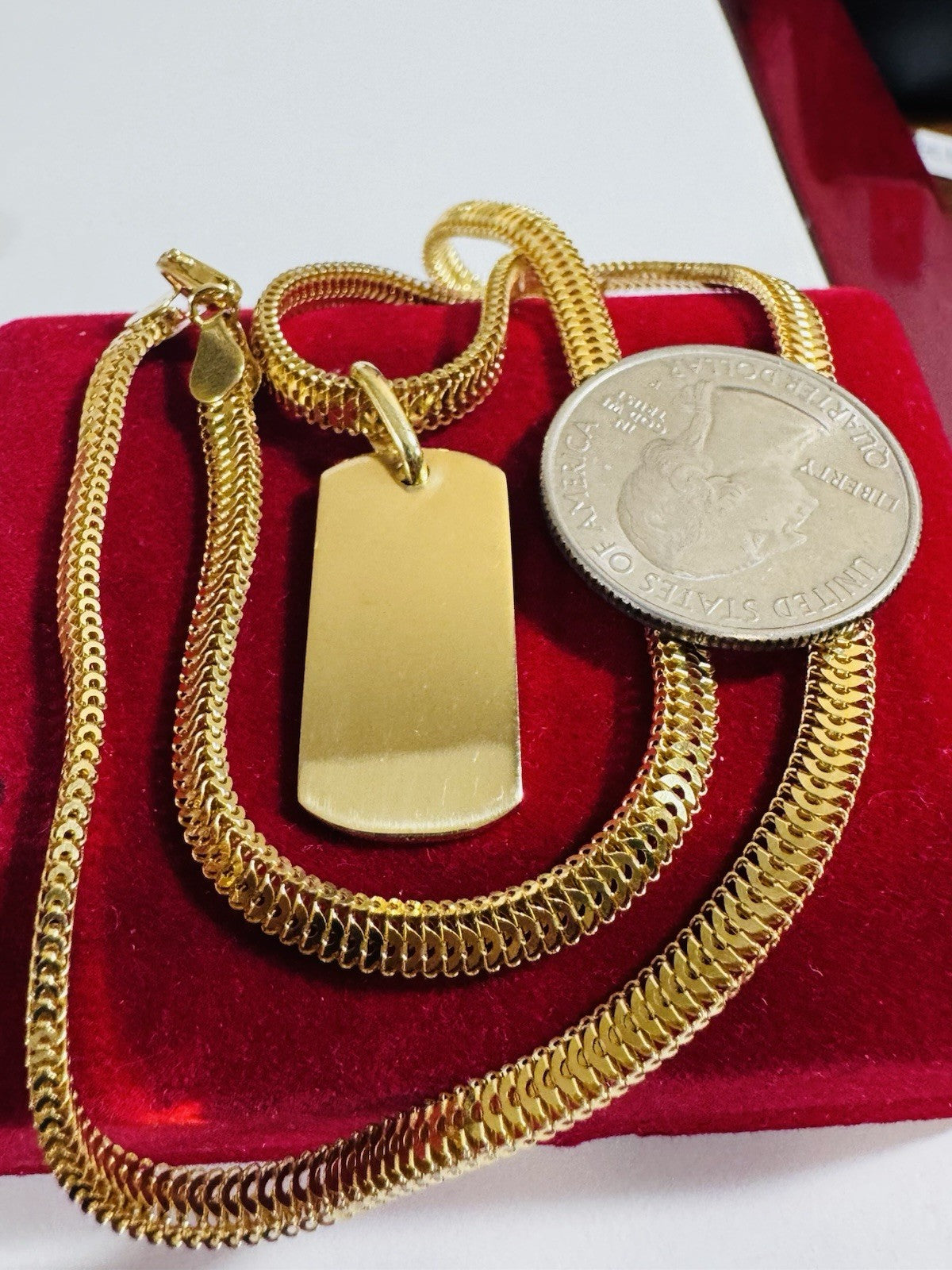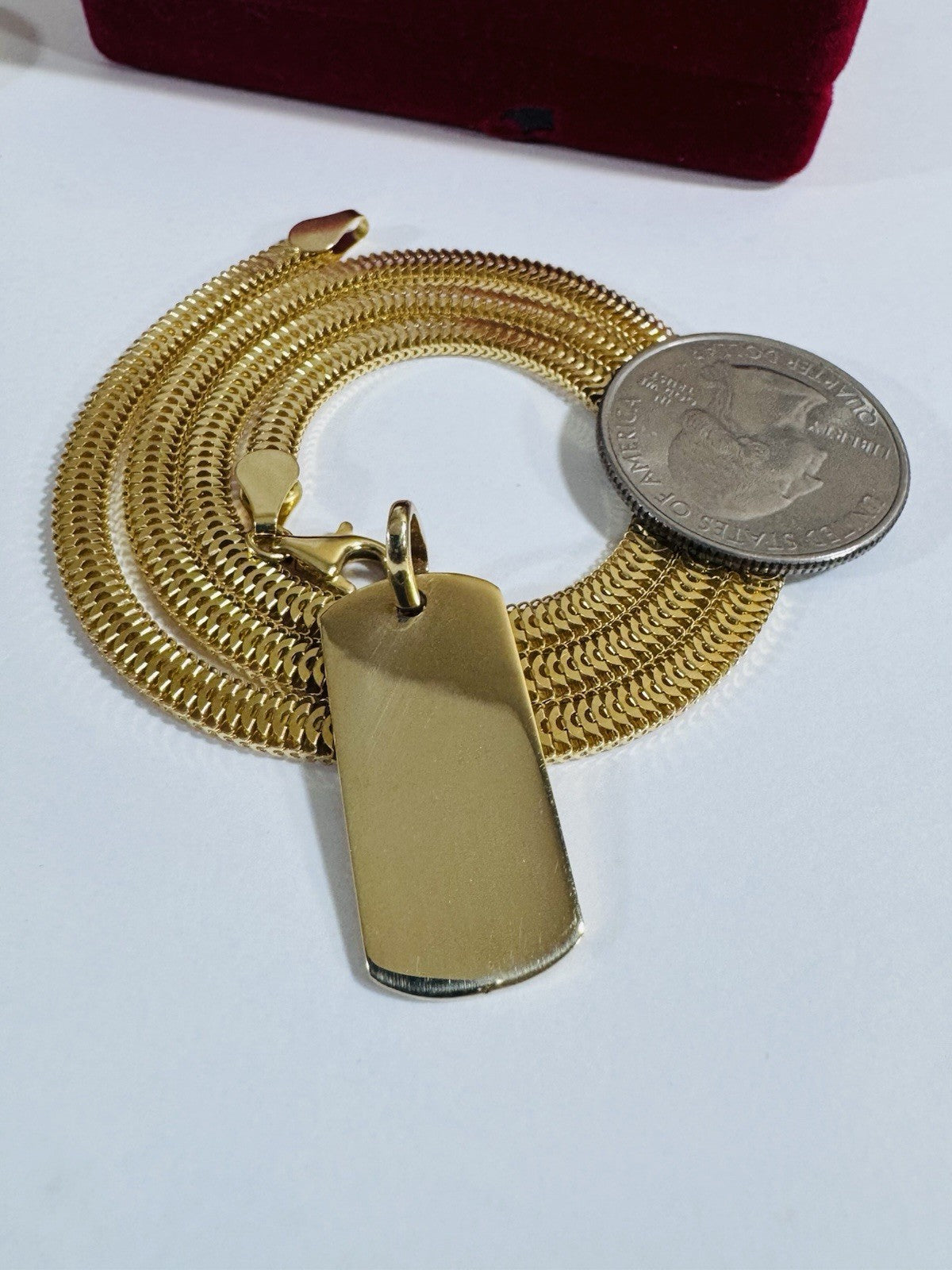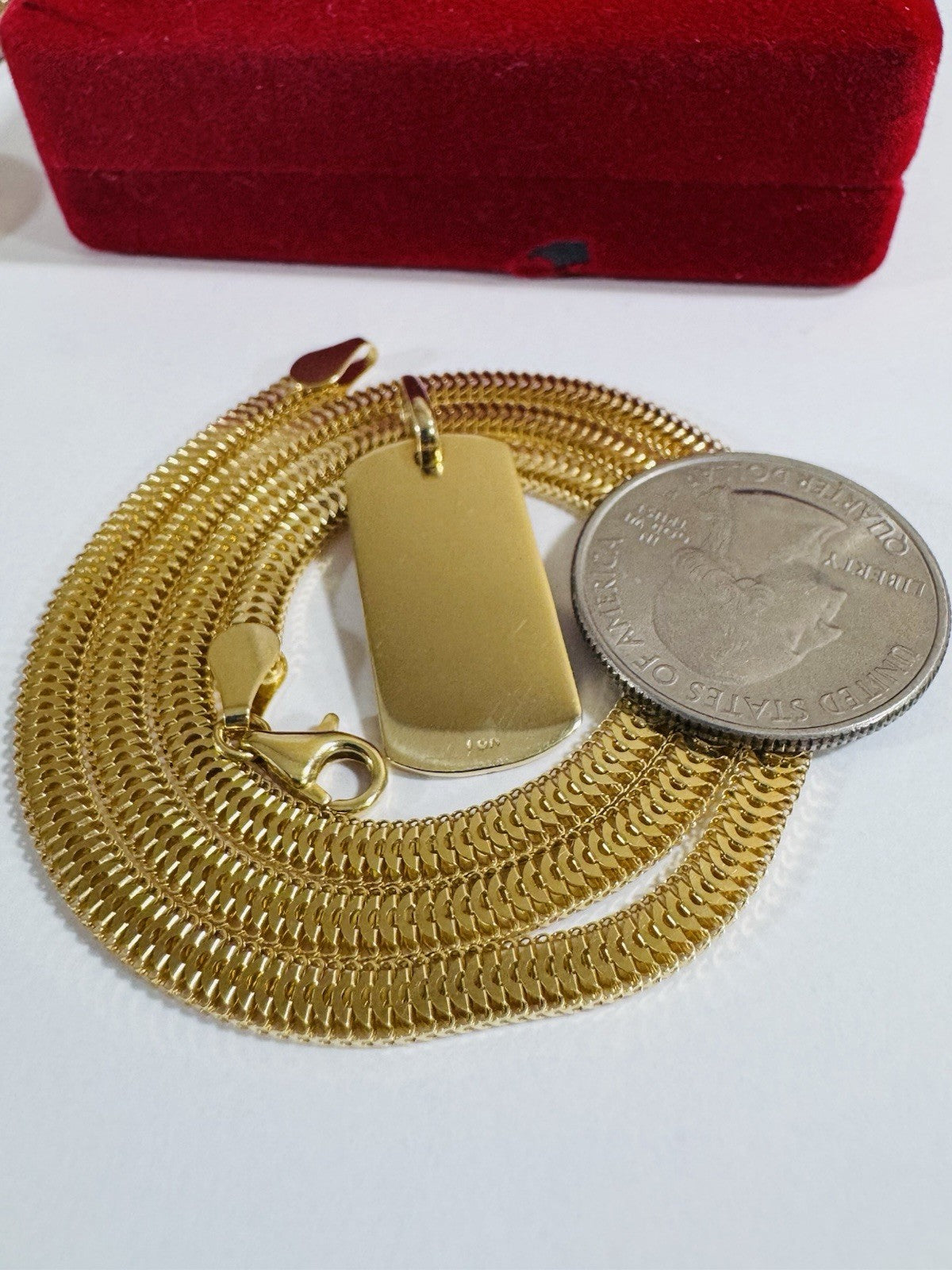 Pure 750 18K Fine Gold Snake Chain Rectangle Set Necklace 18” Long 4mm 17.45g