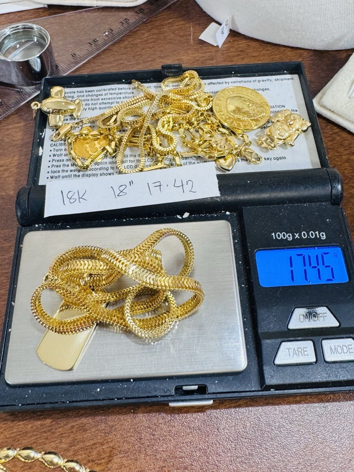 This stunning 18K 750 fine yellow gold Set necklace is a timeless piece perfect for any occasion. The Set necklace is 18” inches long and features a secured closure for easy wear 17.45 grams 4mm wide chain. This is women’s size.