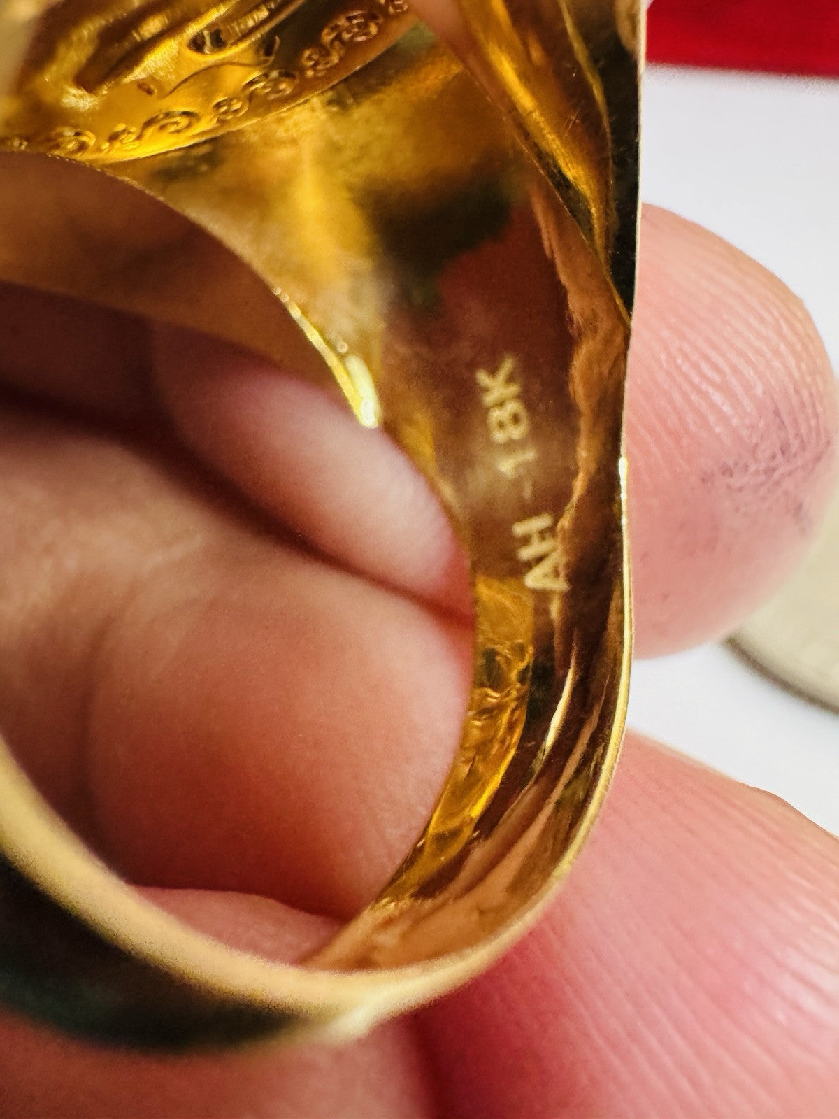Real 18K 18C 750 Geniune Saudi Gold Mens Arabic Ring Fits Size 7”/7.5” 4.5g