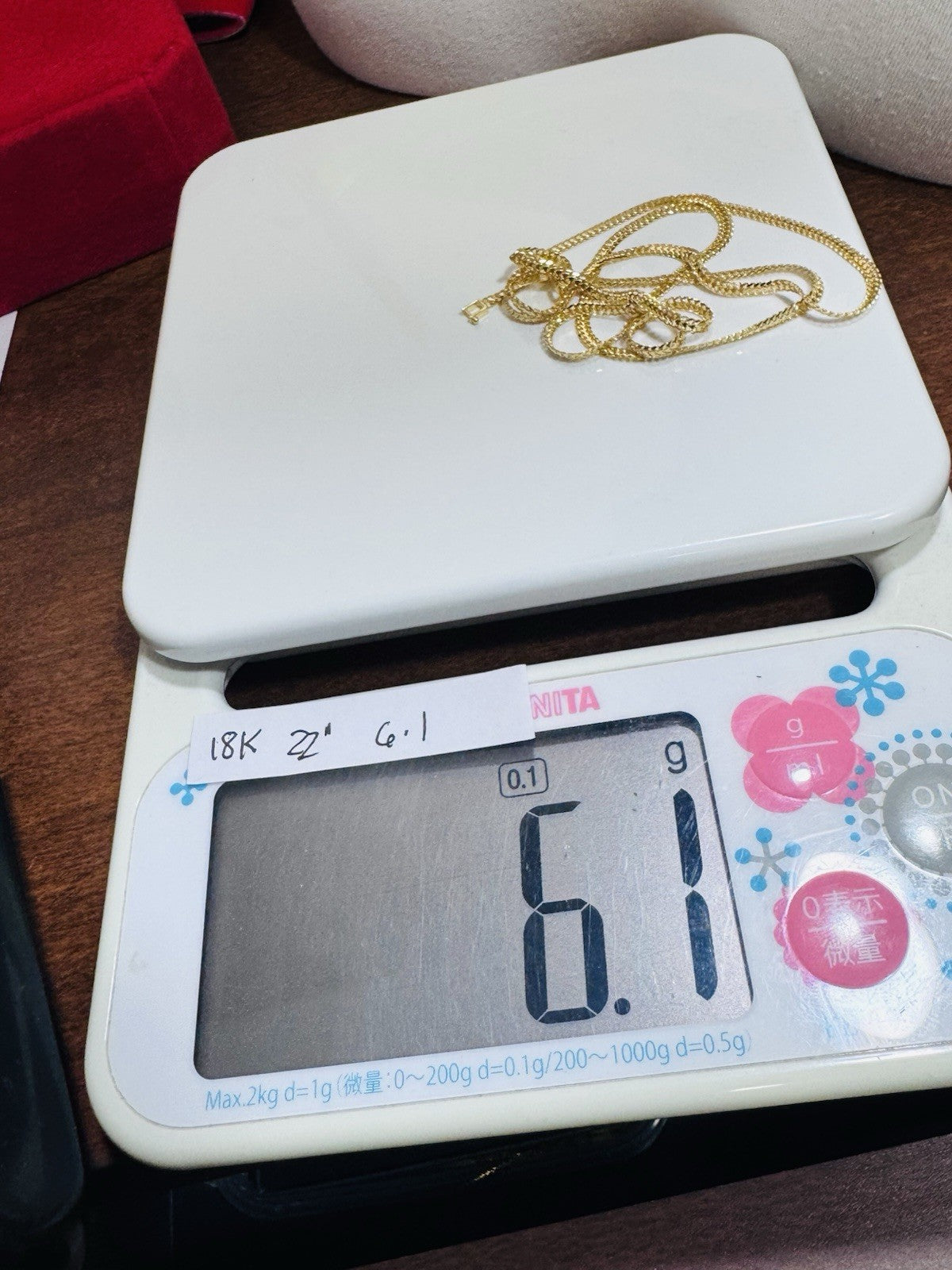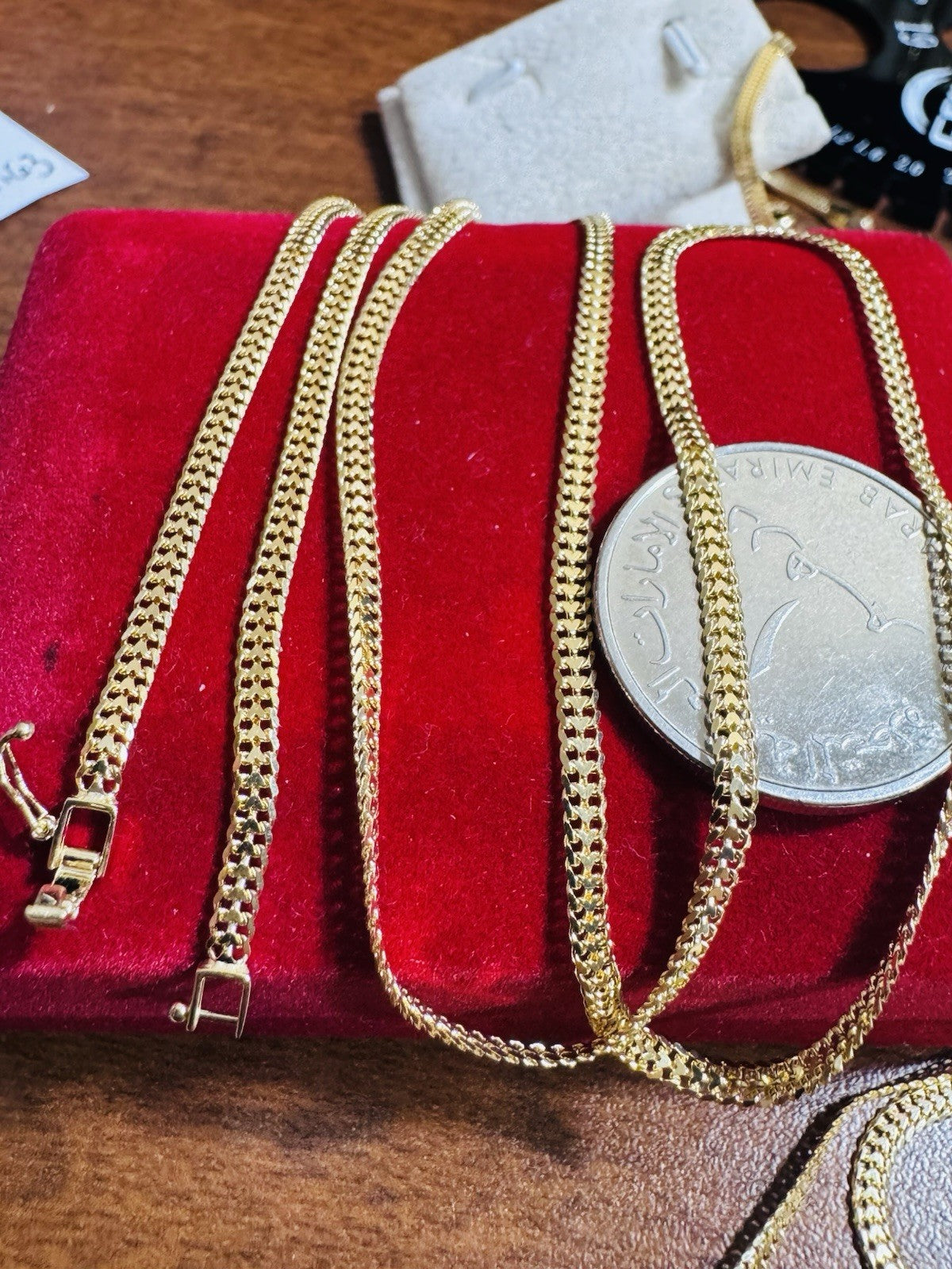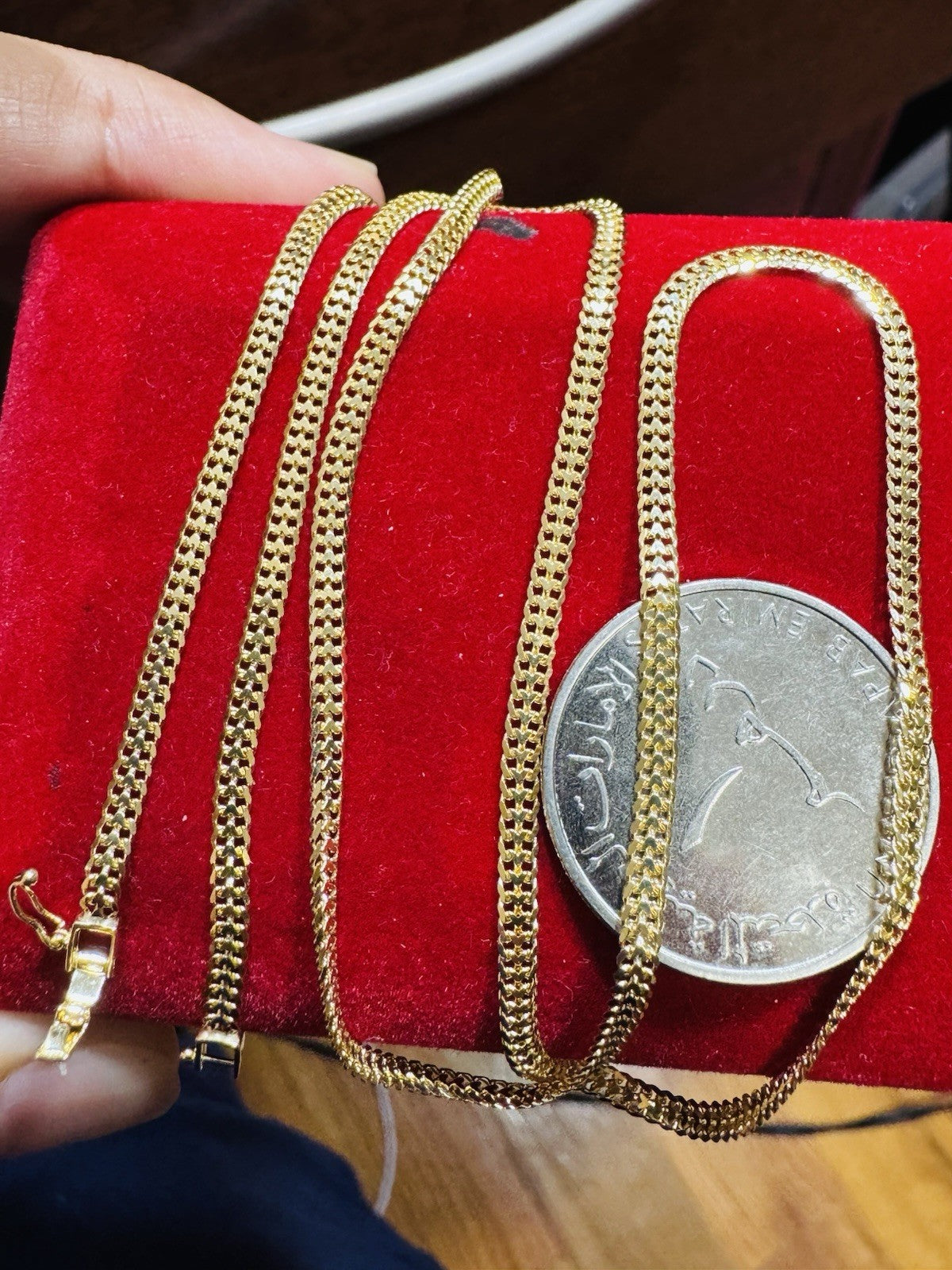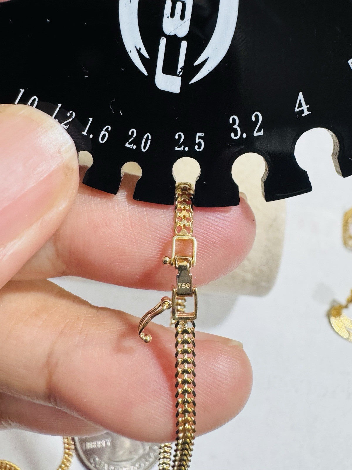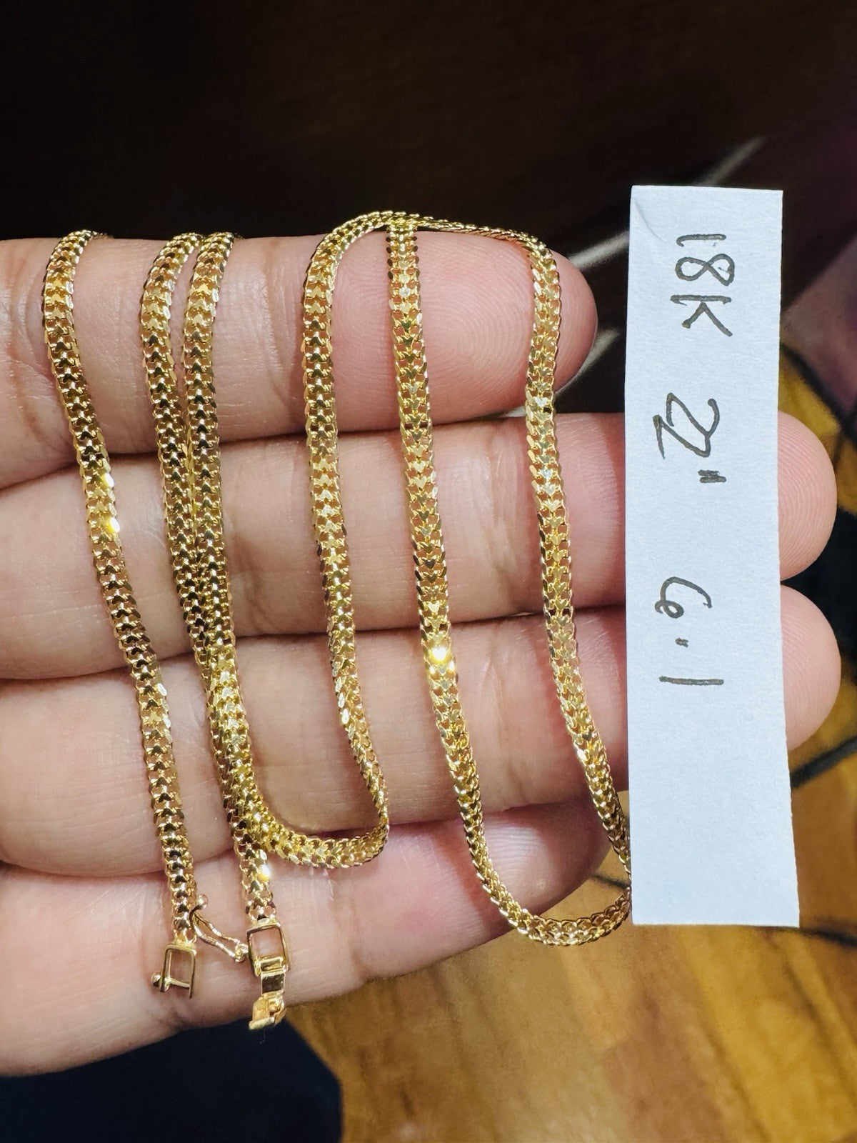 This beautiful Chain necklace is expertly crafted in 18K 750 real yellow gold and features a stunning 21.6 inch chain with a lobster clasp with 2.5mm wide. 6.1 grams