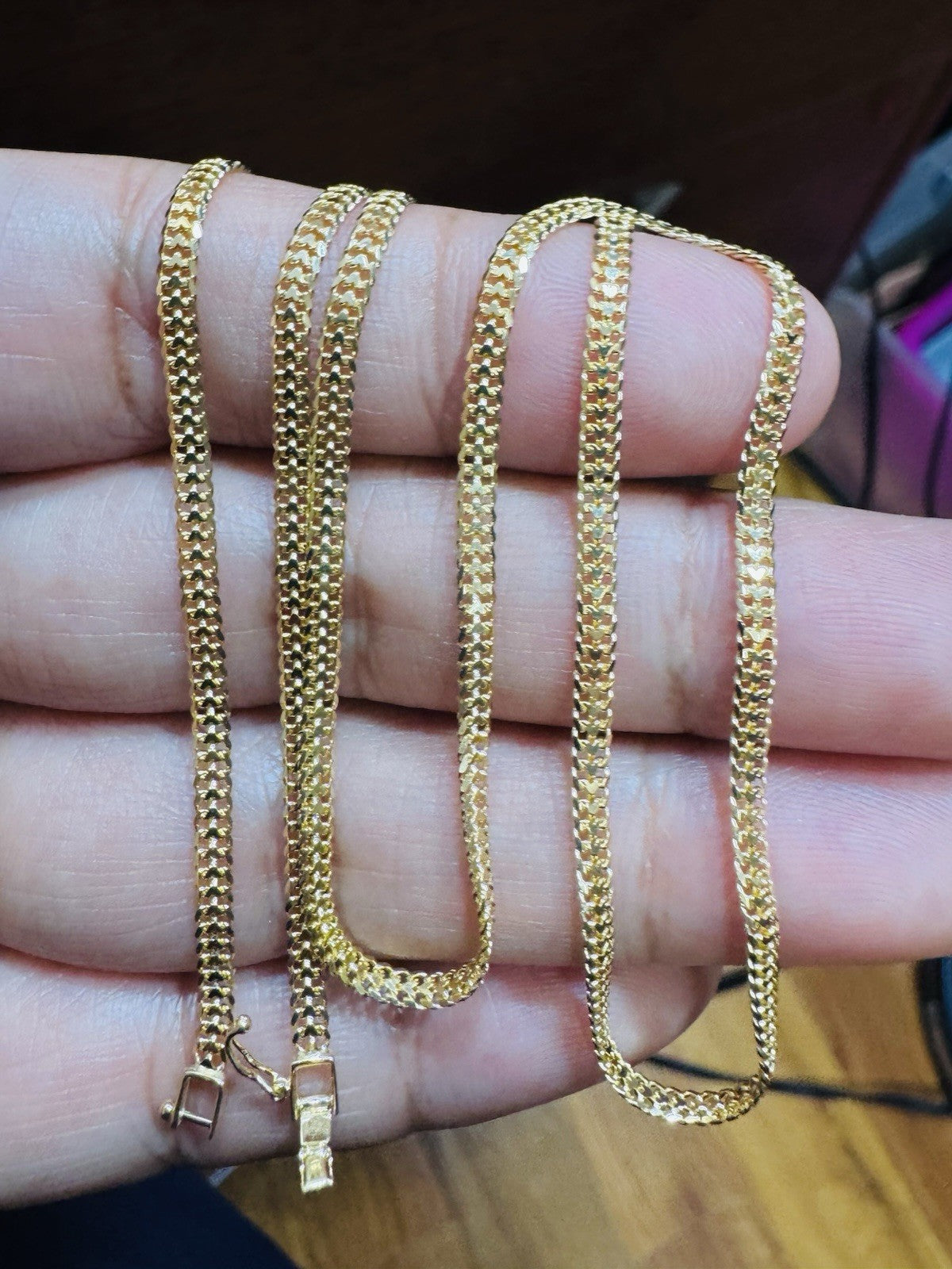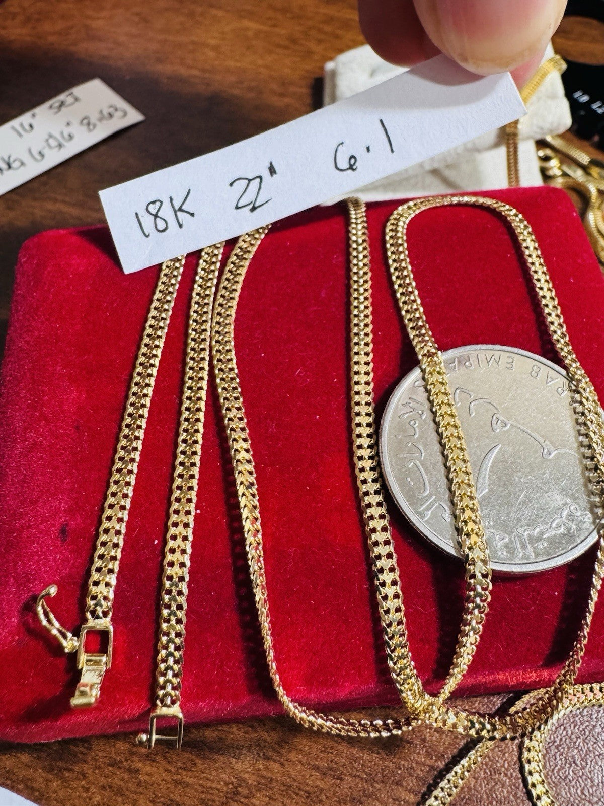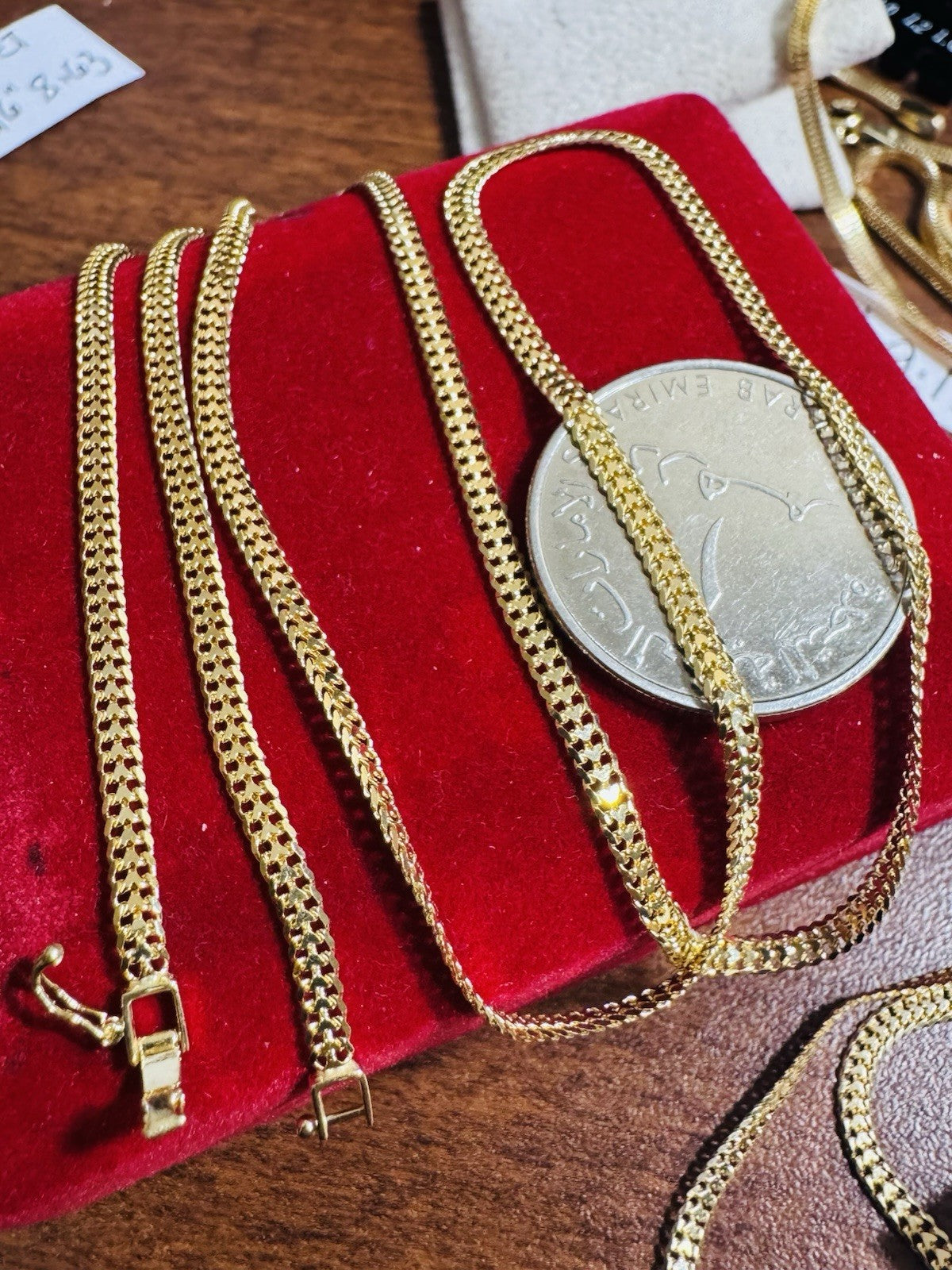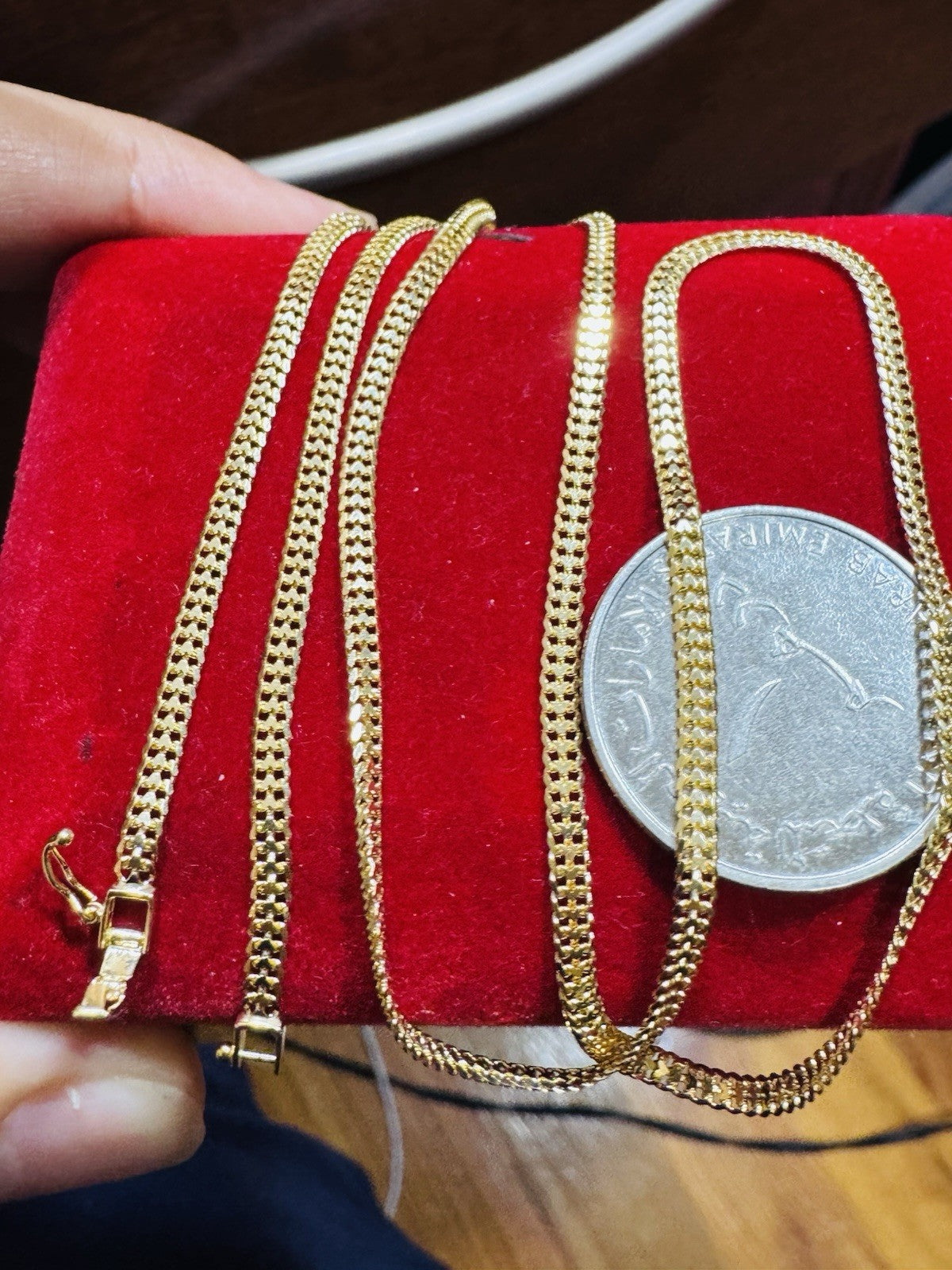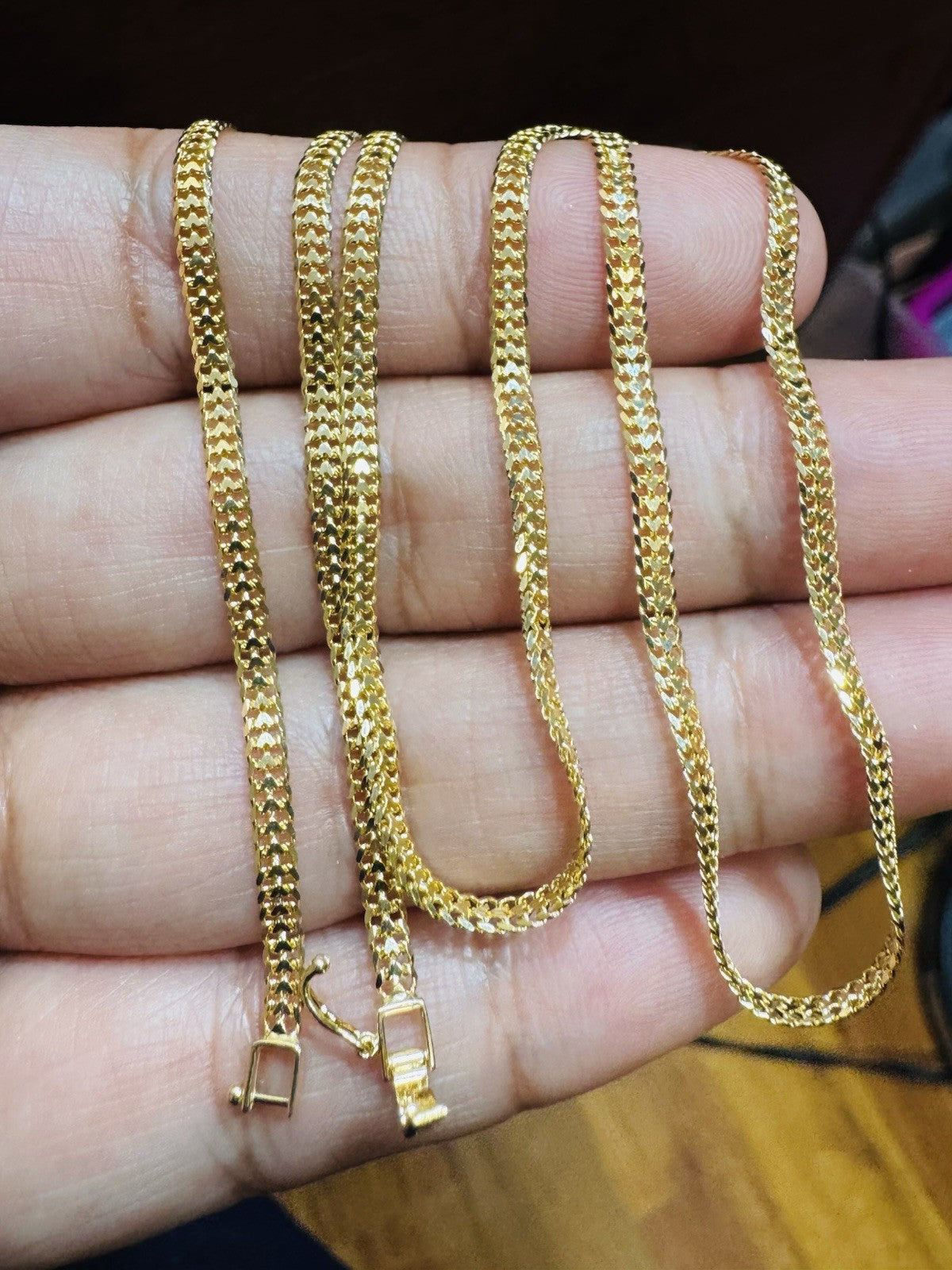 This beautiful Chain necklace is expertly crafted in 18K 750 real yellow gold and features a stunning 21.6 inch chain with a lobster clasp with 2.5mm wide. 6.1 grams