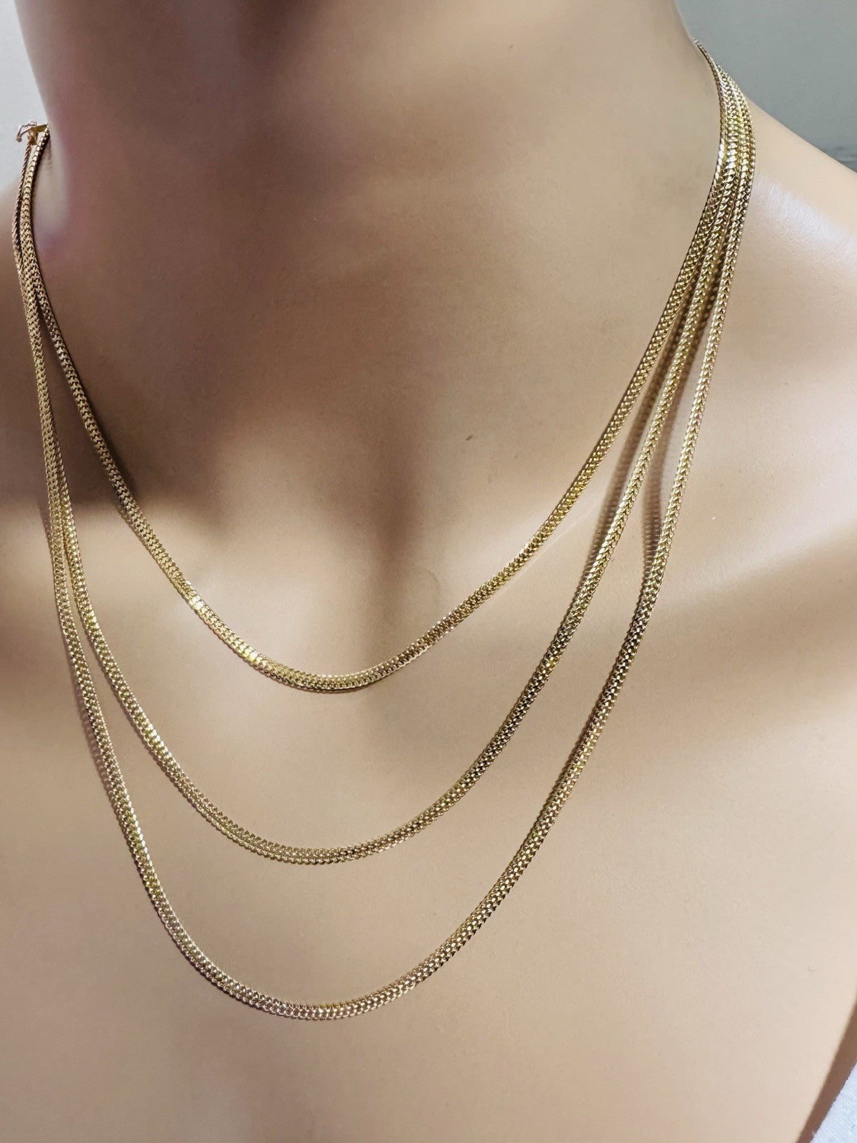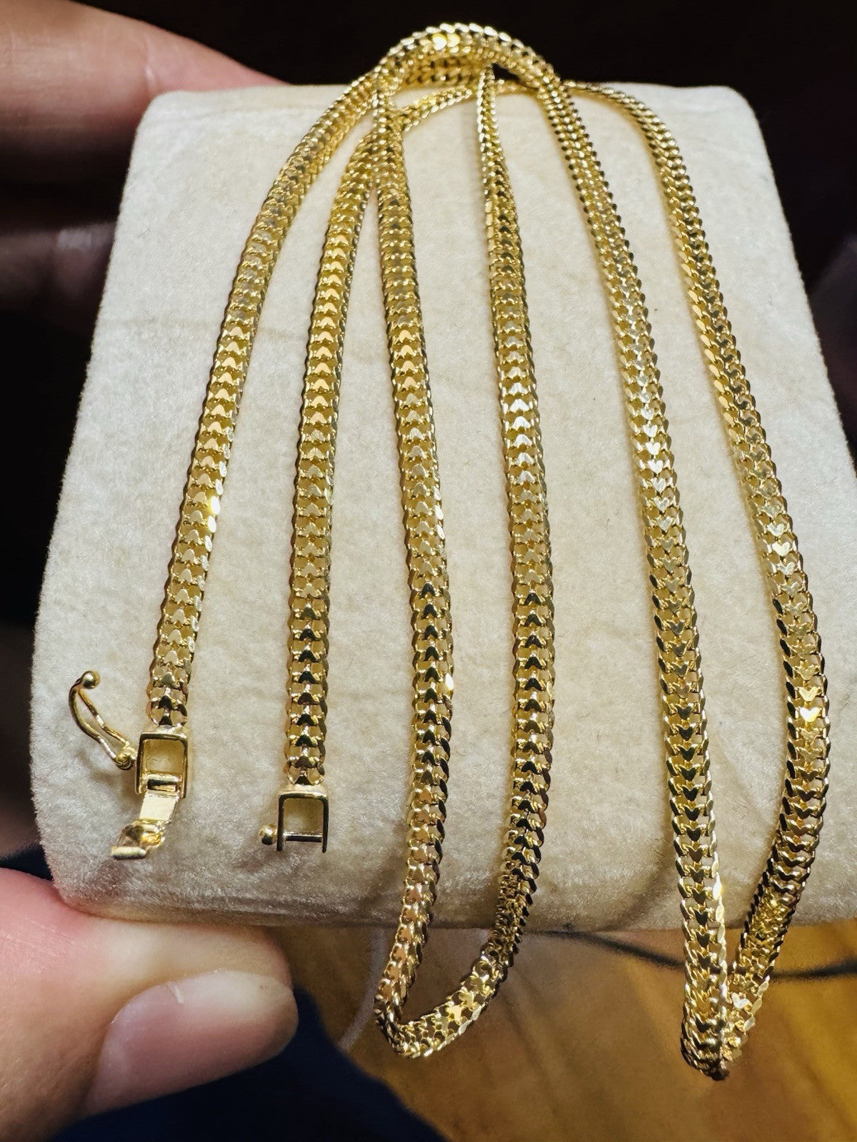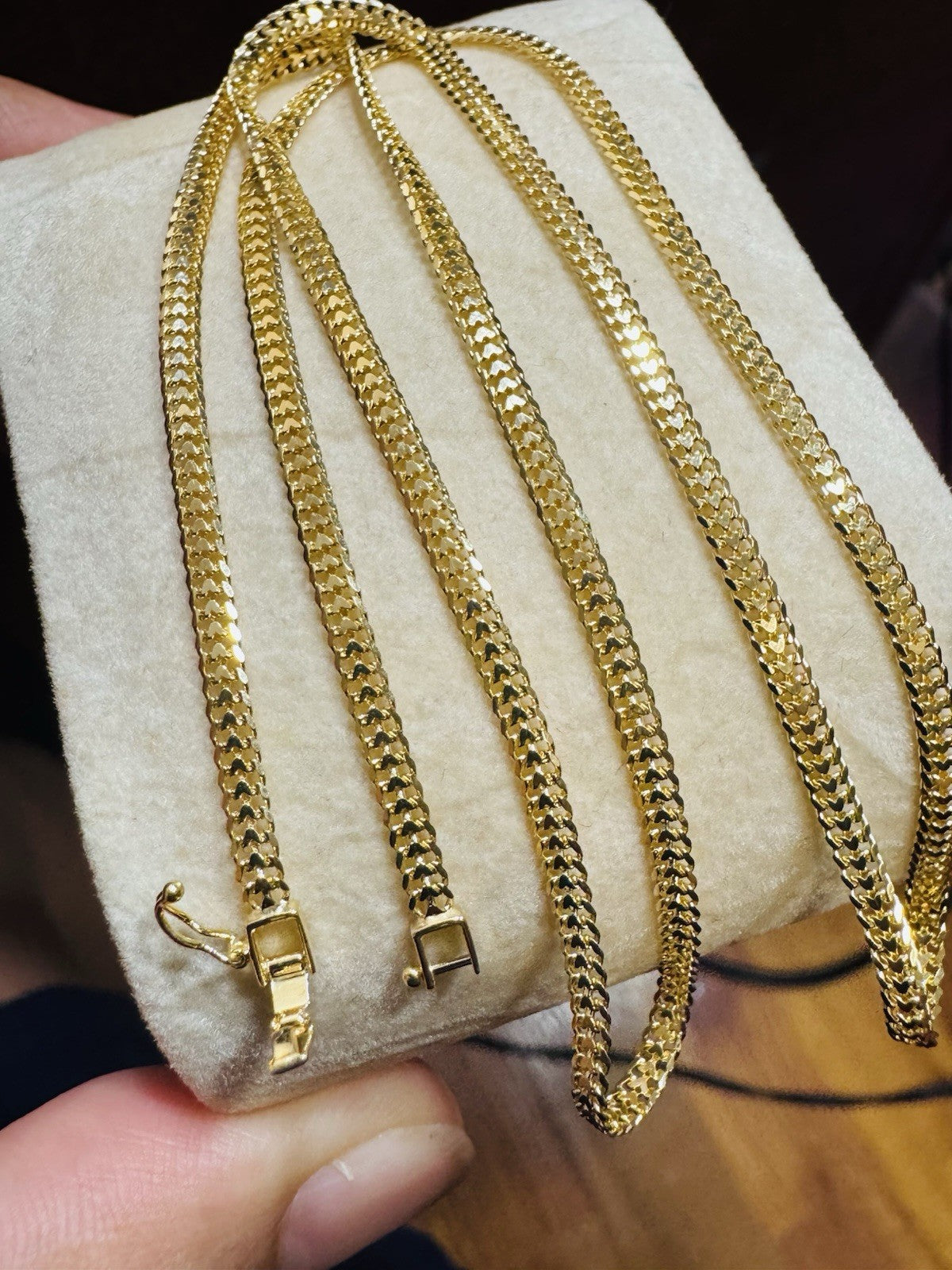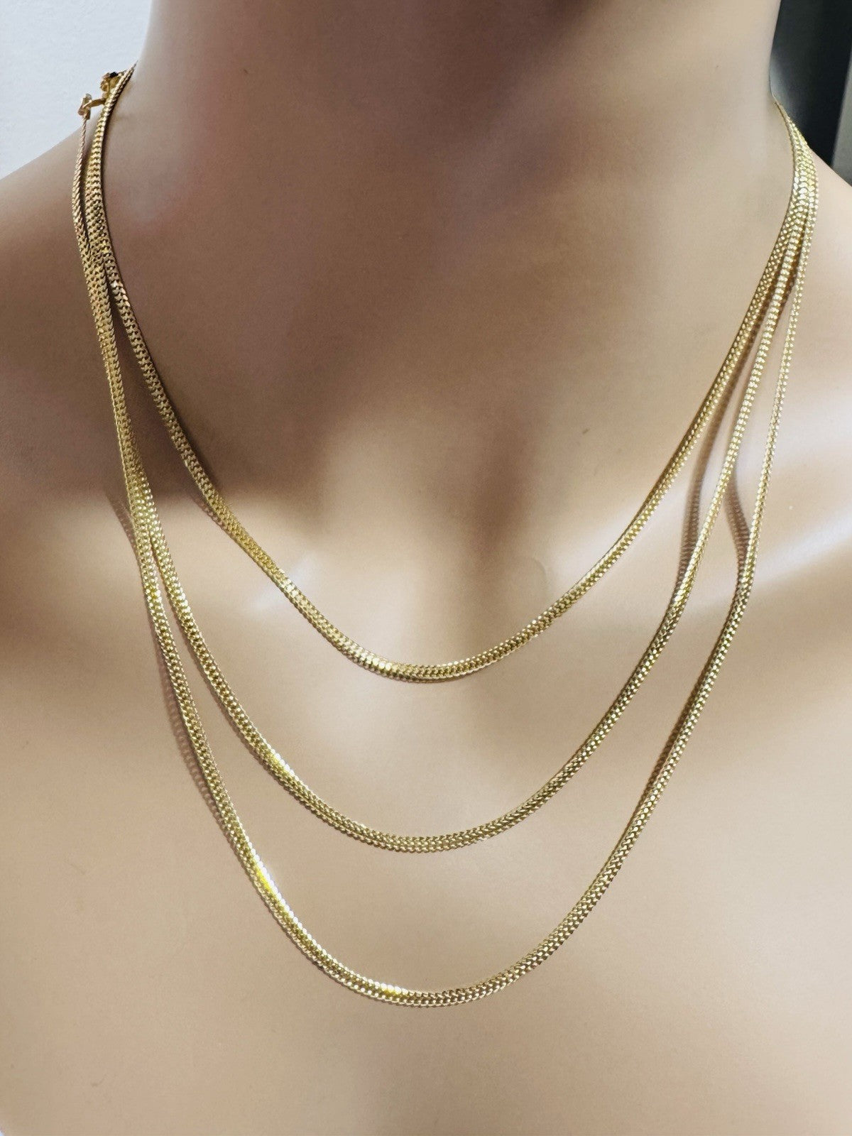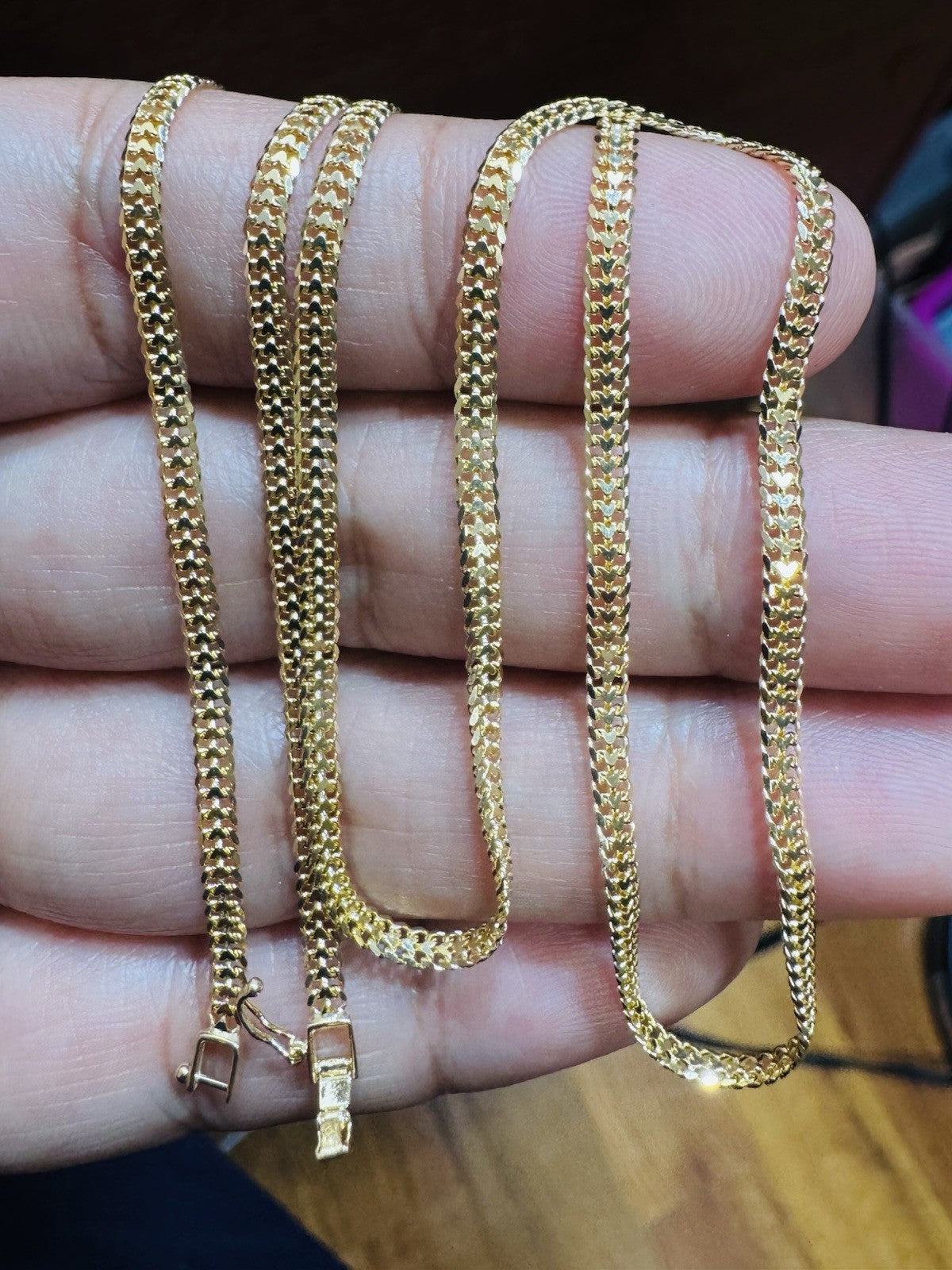 This beautiful Chain necklace is expertly crafted in 18K 750 real yellow gold and features a stunning 21.6 inch chain with a lobster clasp with 2.5mm wide. 6.1 grams