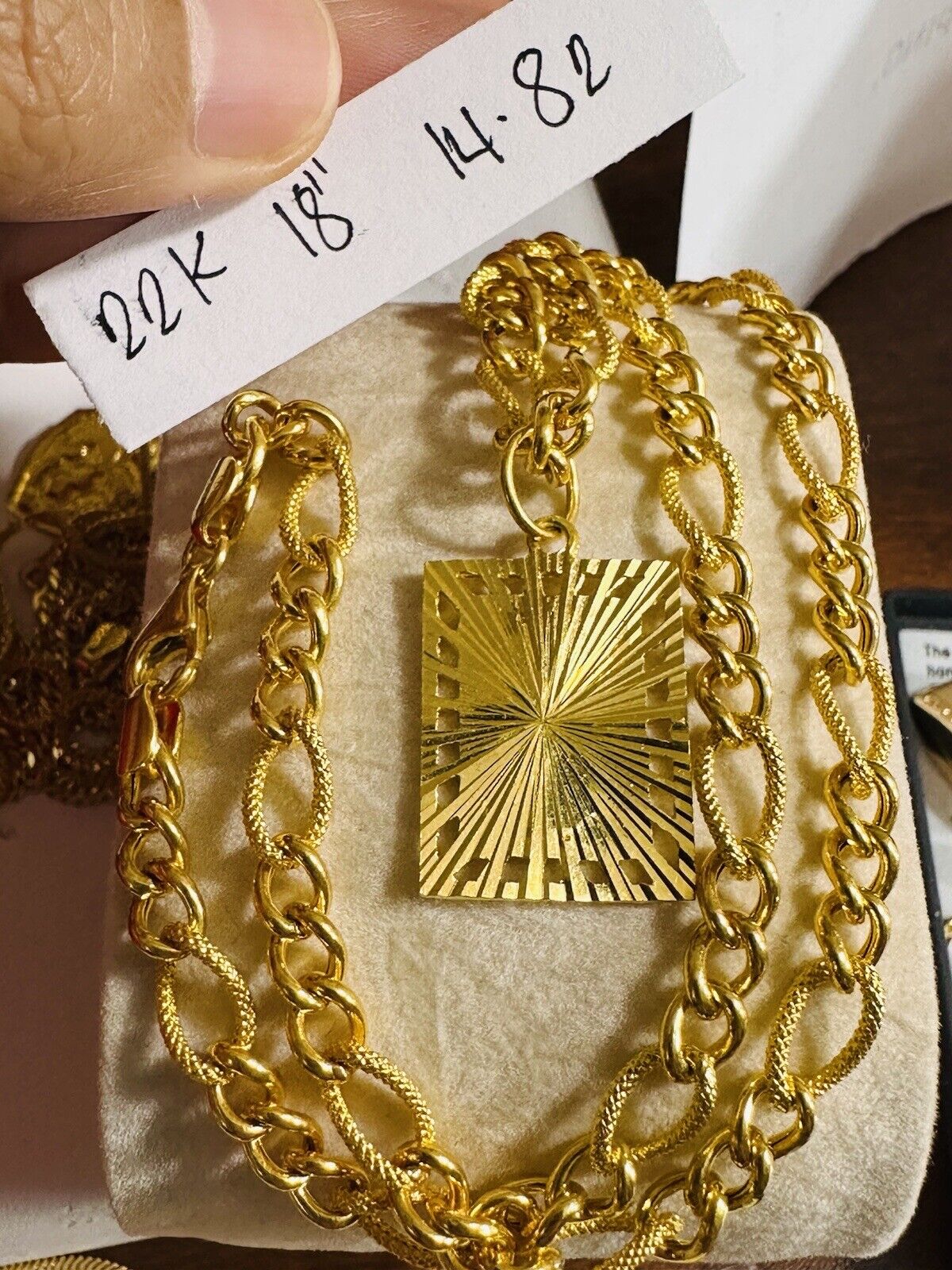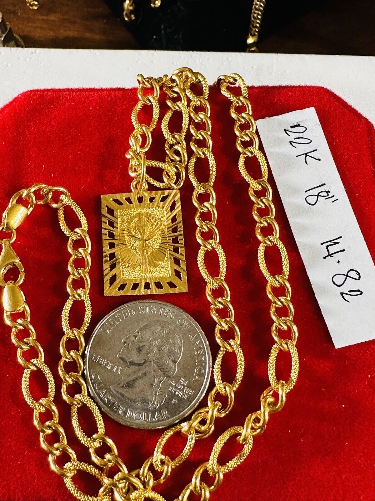 22Carat 22K 916 Saudi Dubai Gold 18” long Gold Devine Allah Necklace 14.8g 5mm