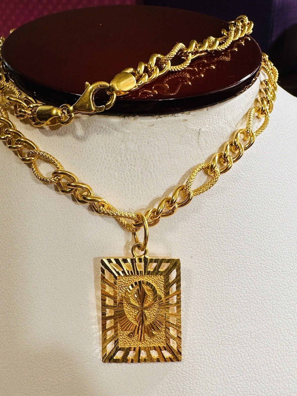 This beautiful necklace is a stunning piece of jewelry that will surely catch everyone's attention. Crafted from solid 22K 916 fine real gold, this necklace features a charming charm pendant with "Devine Allah" inscribed on it.