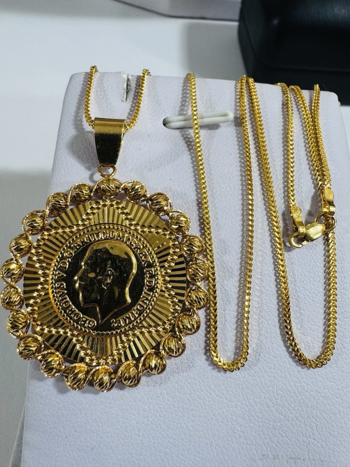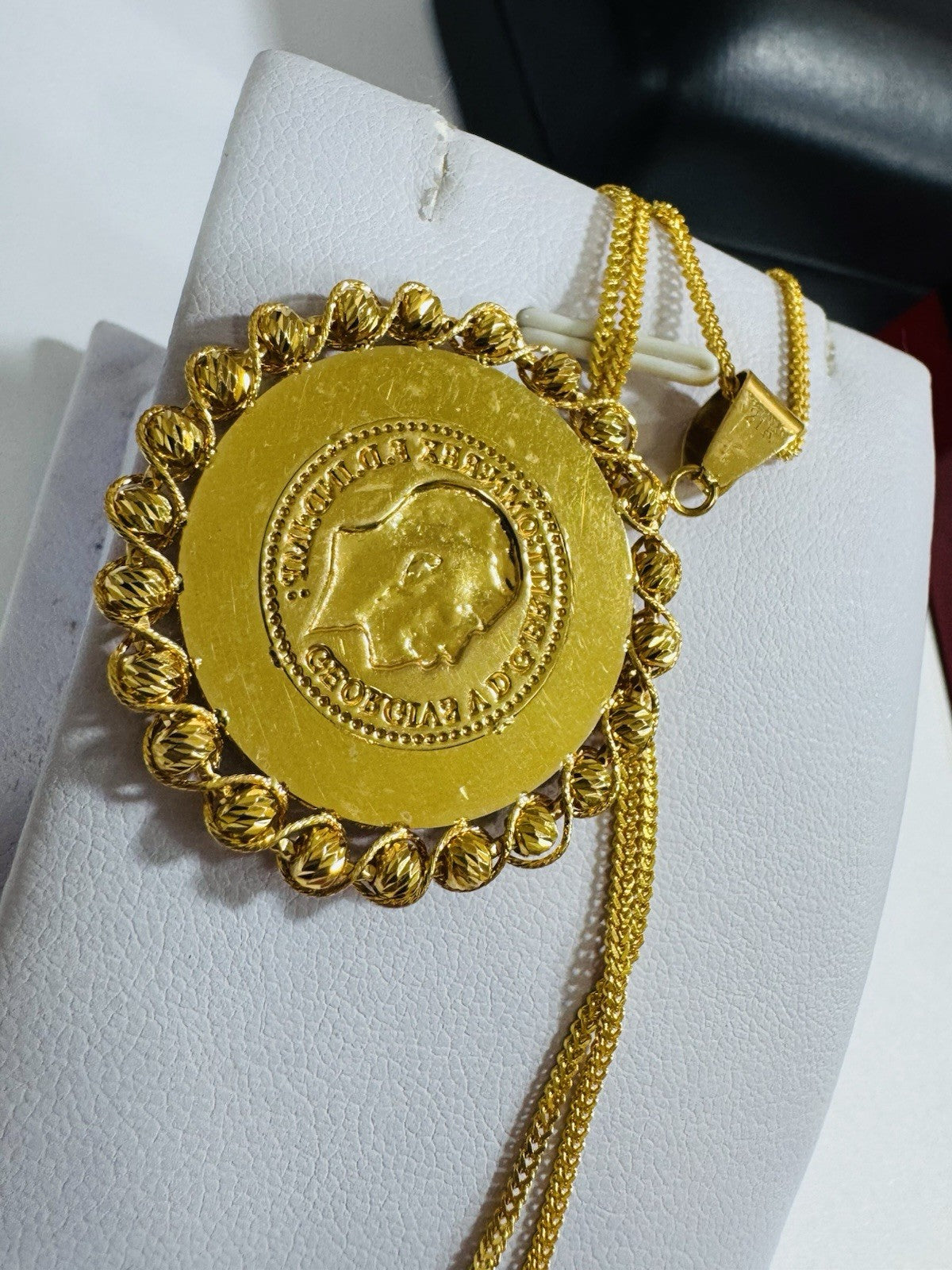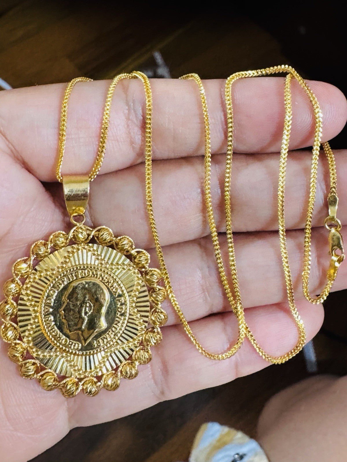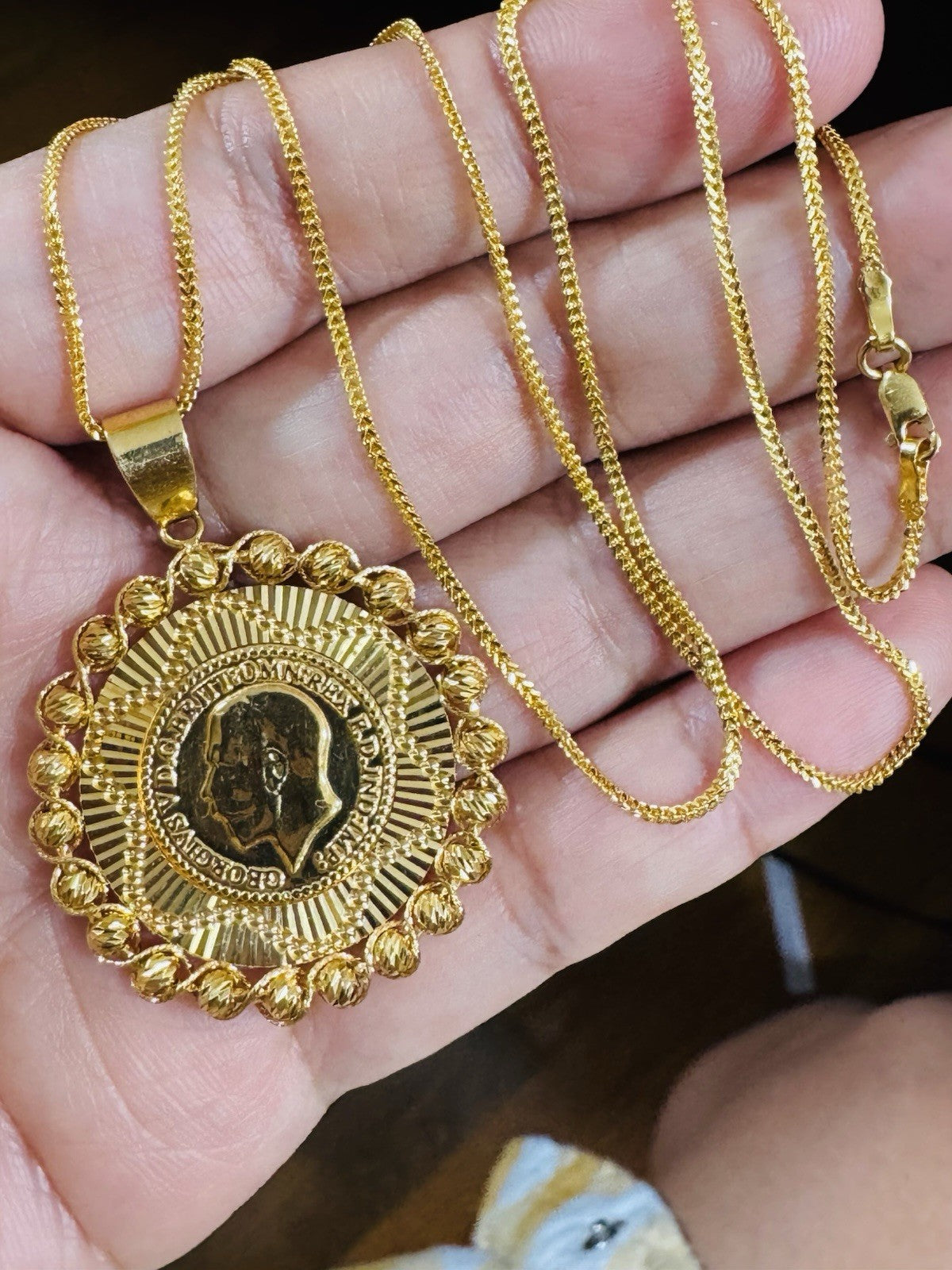 22K 916 22C Fine Real Genuine Gold 20” long Coin Necklace 10.7g 1.5mm Reversible