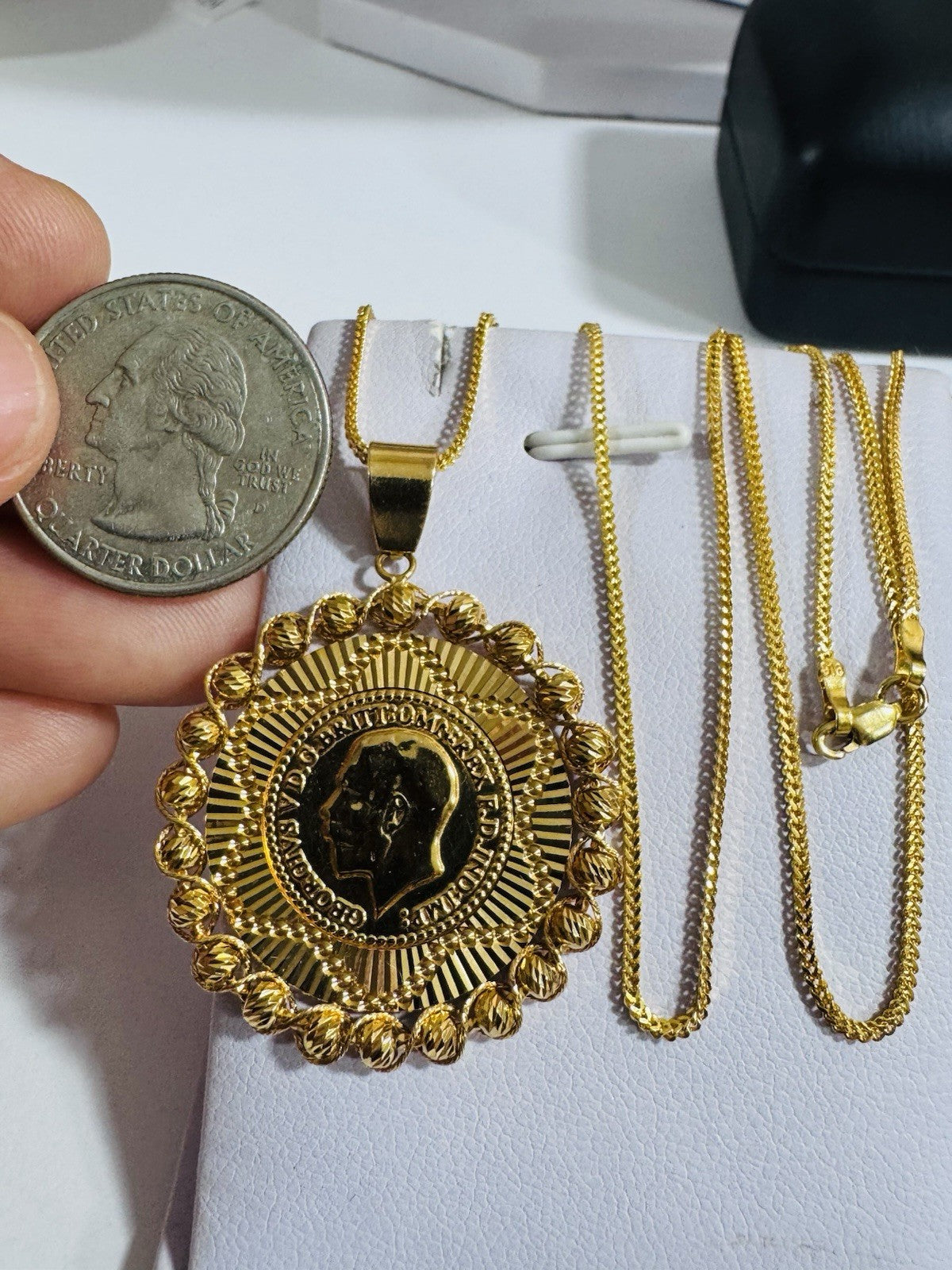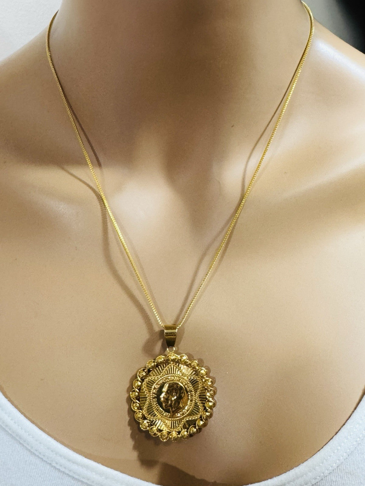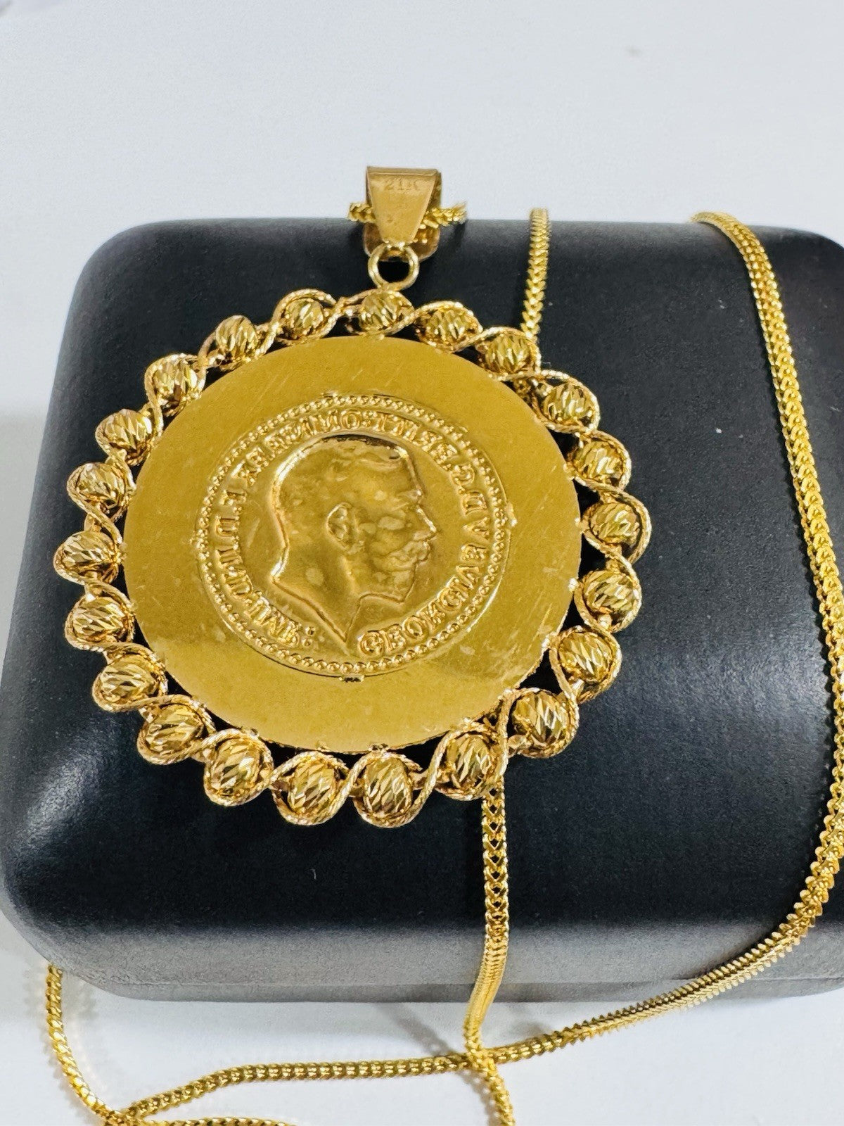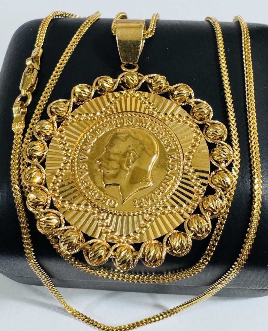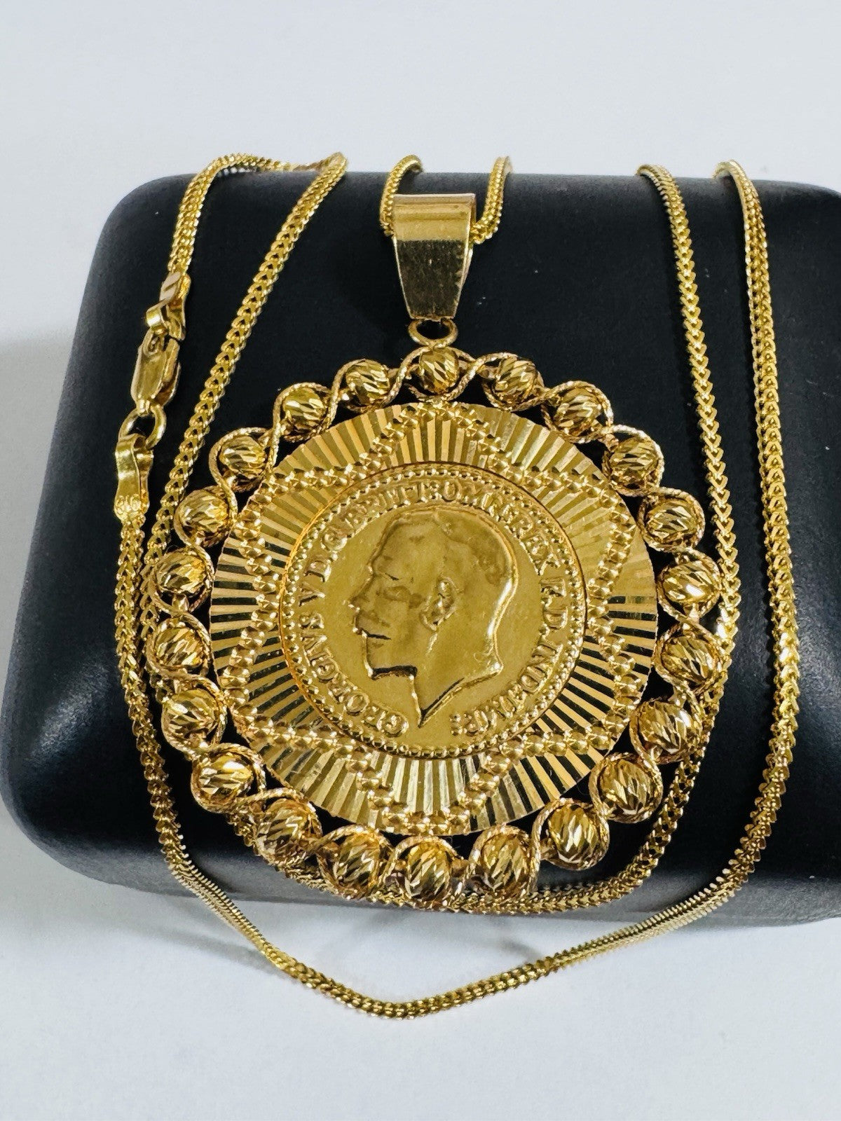 22K 916 22C Fine Real Genuine Gold 20” long Coin Necklace 10.7g 1.5mm Reversible