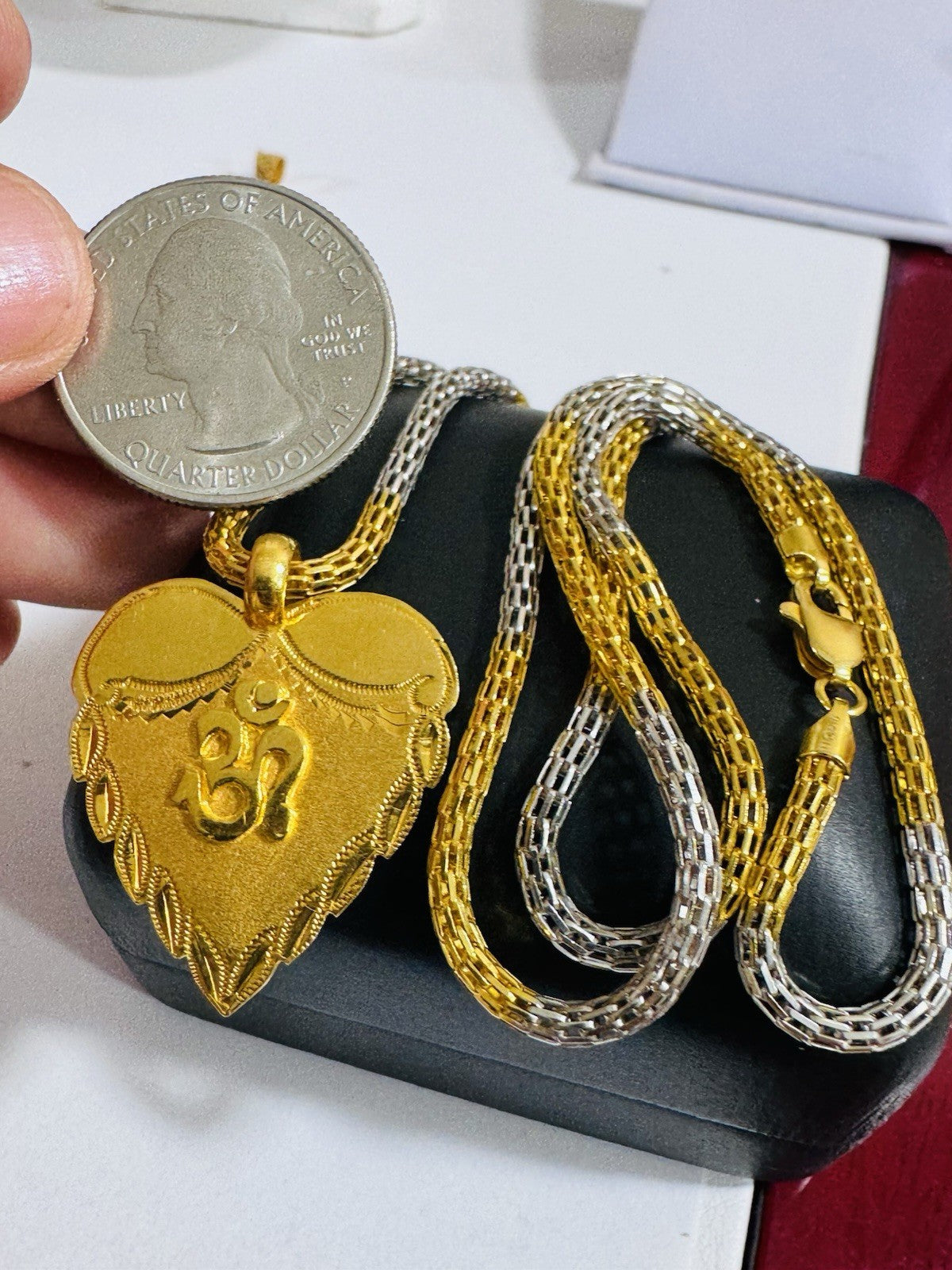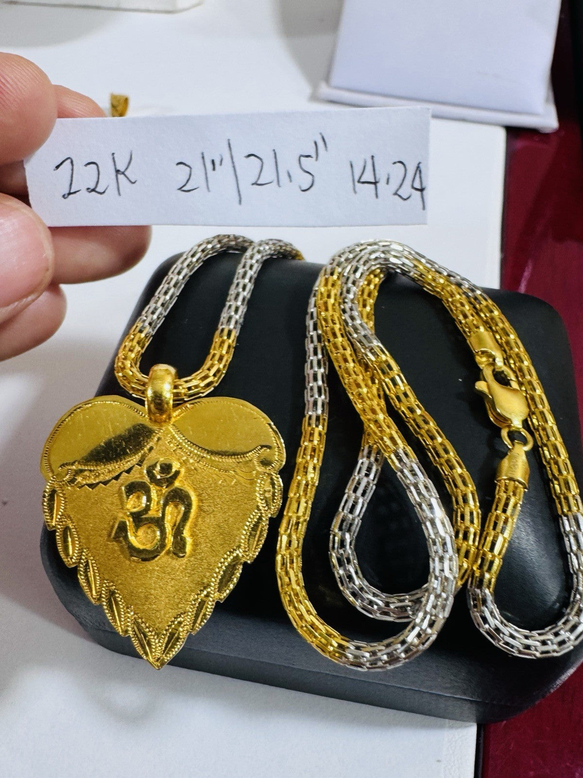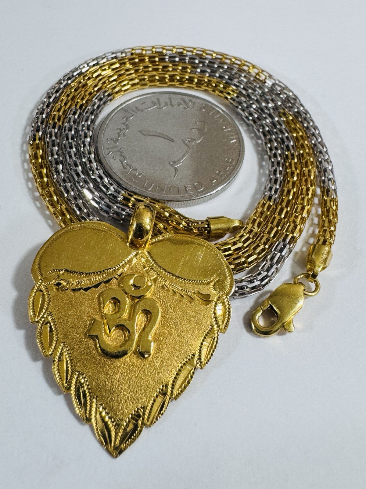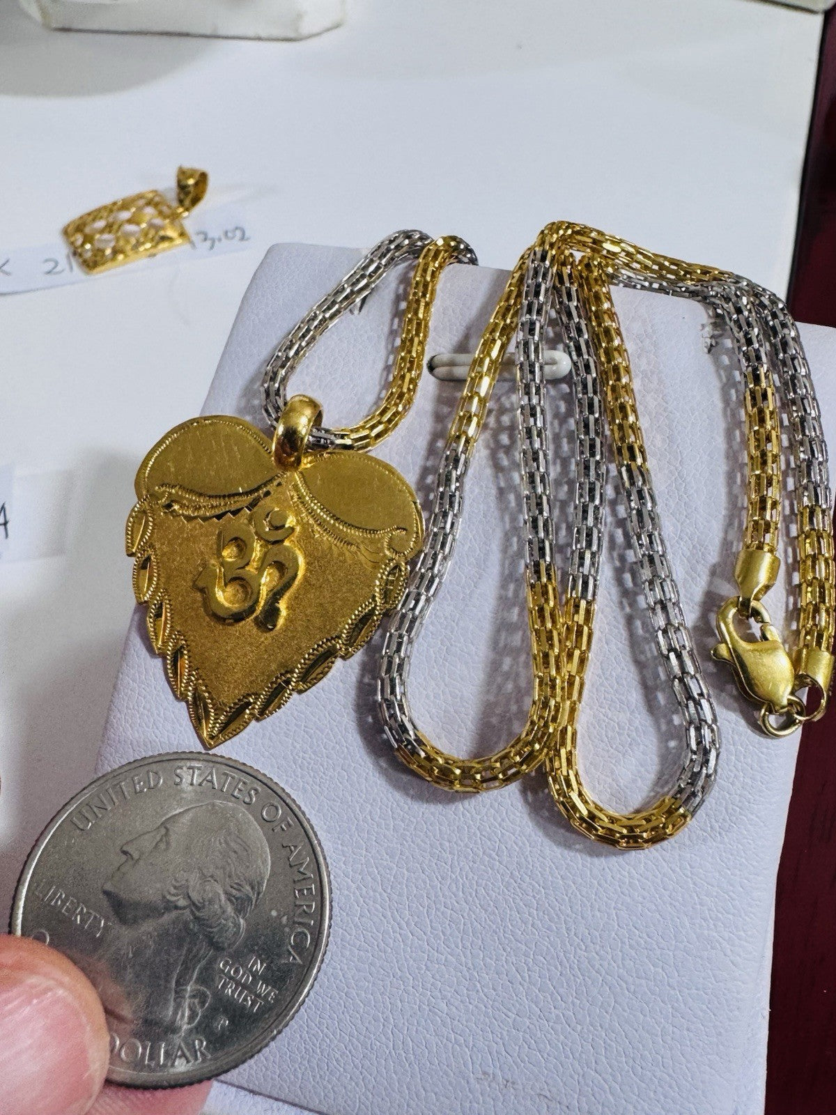 22K 916 Fine Real Gold 21.5”/22” long Heart Sikh Set Necklace 14.24g 3.mm