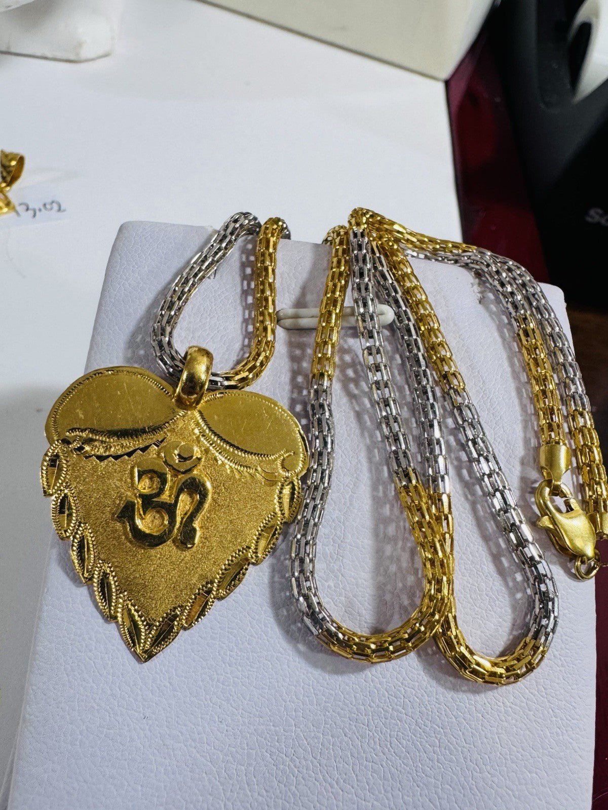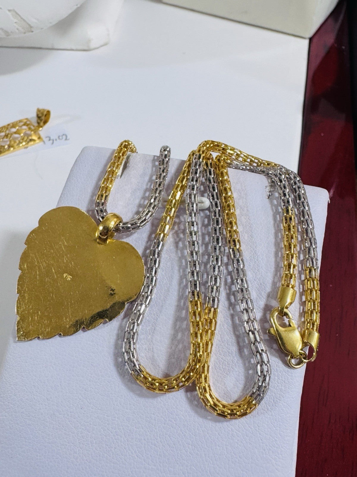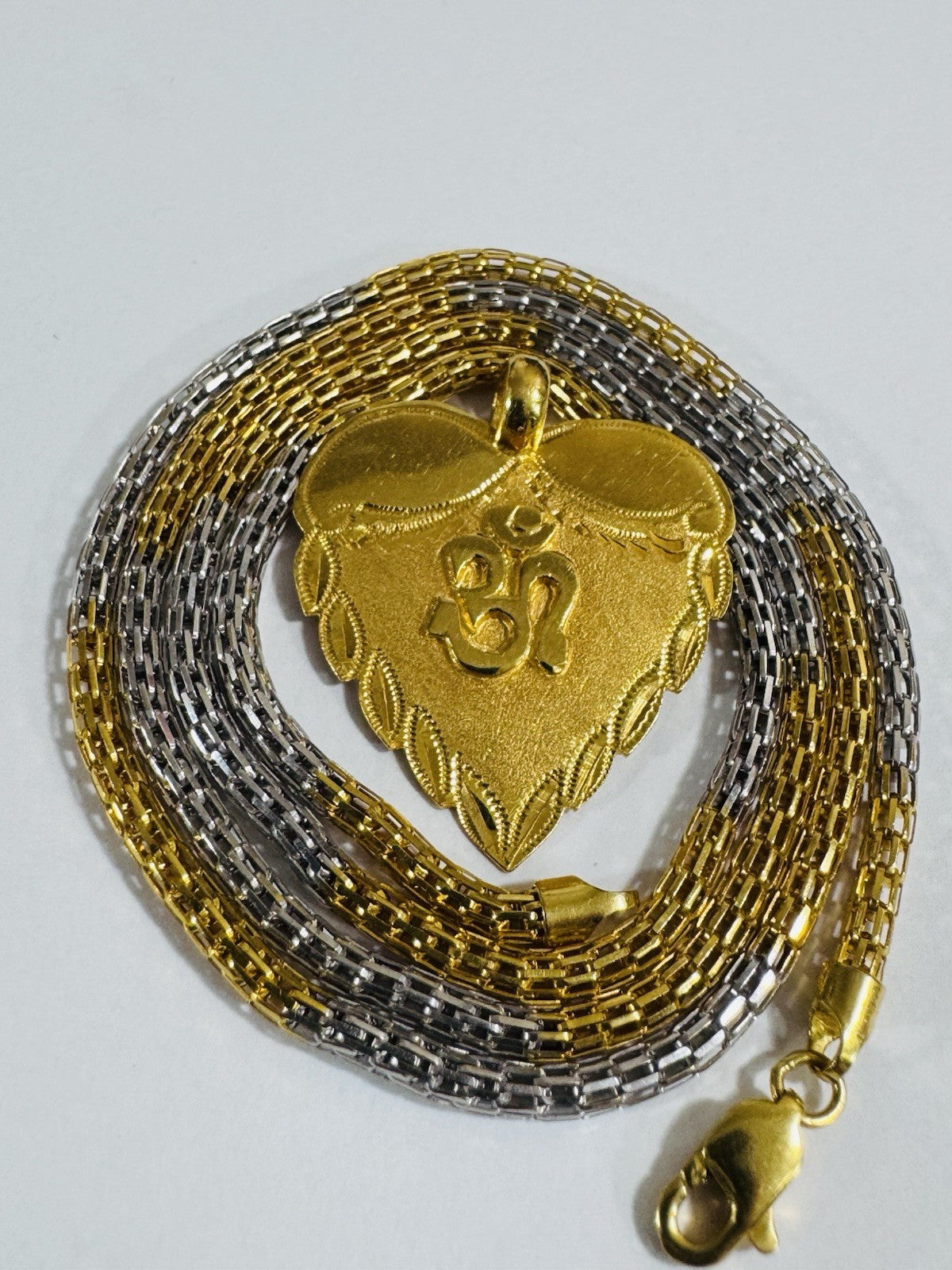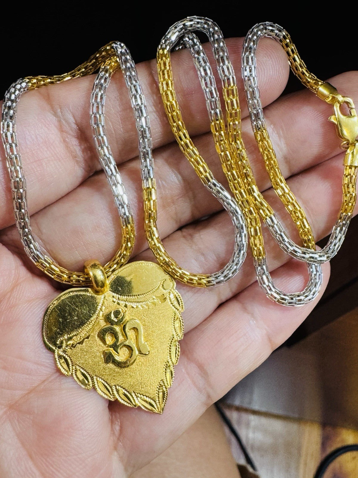 22K 916 Fine Real Gold 21.5”/22” long Heart Sikh Set Necklace 14.24g 3.mm