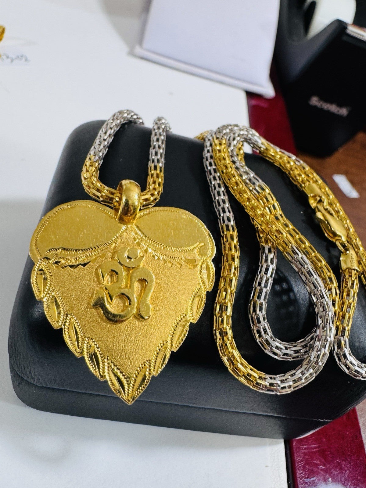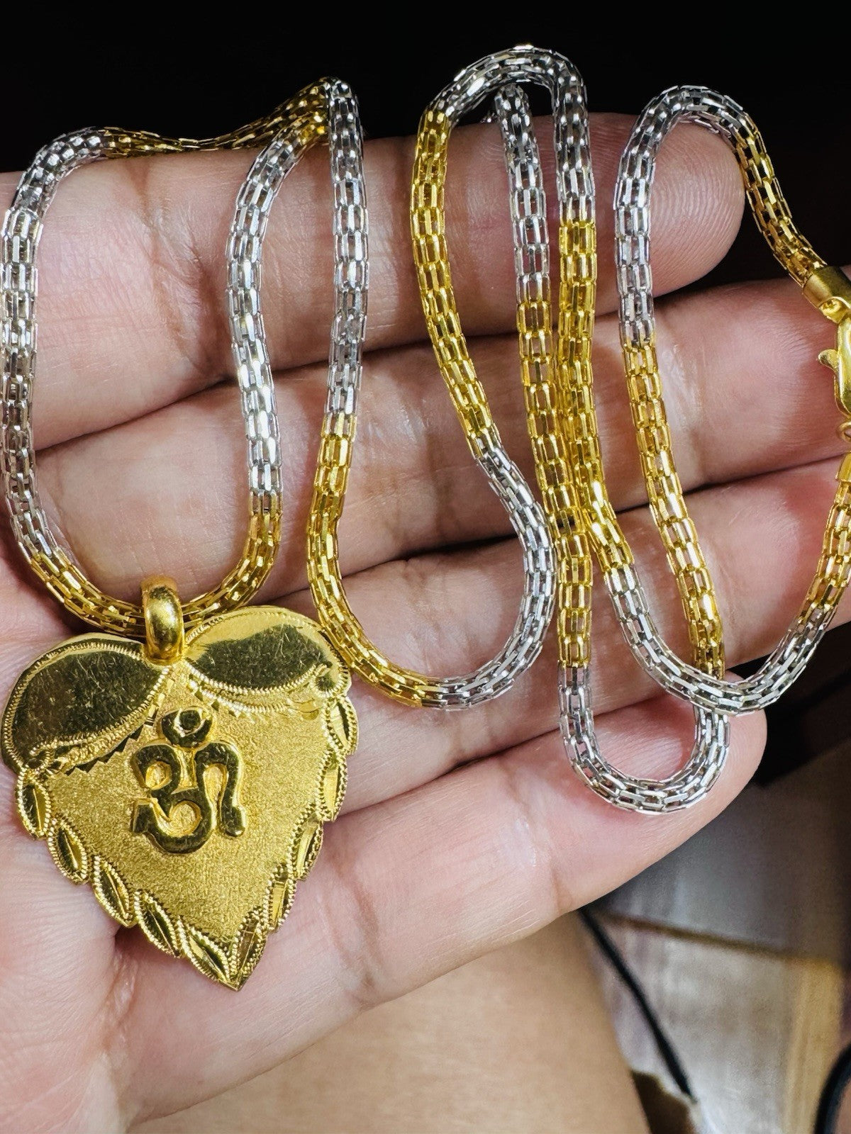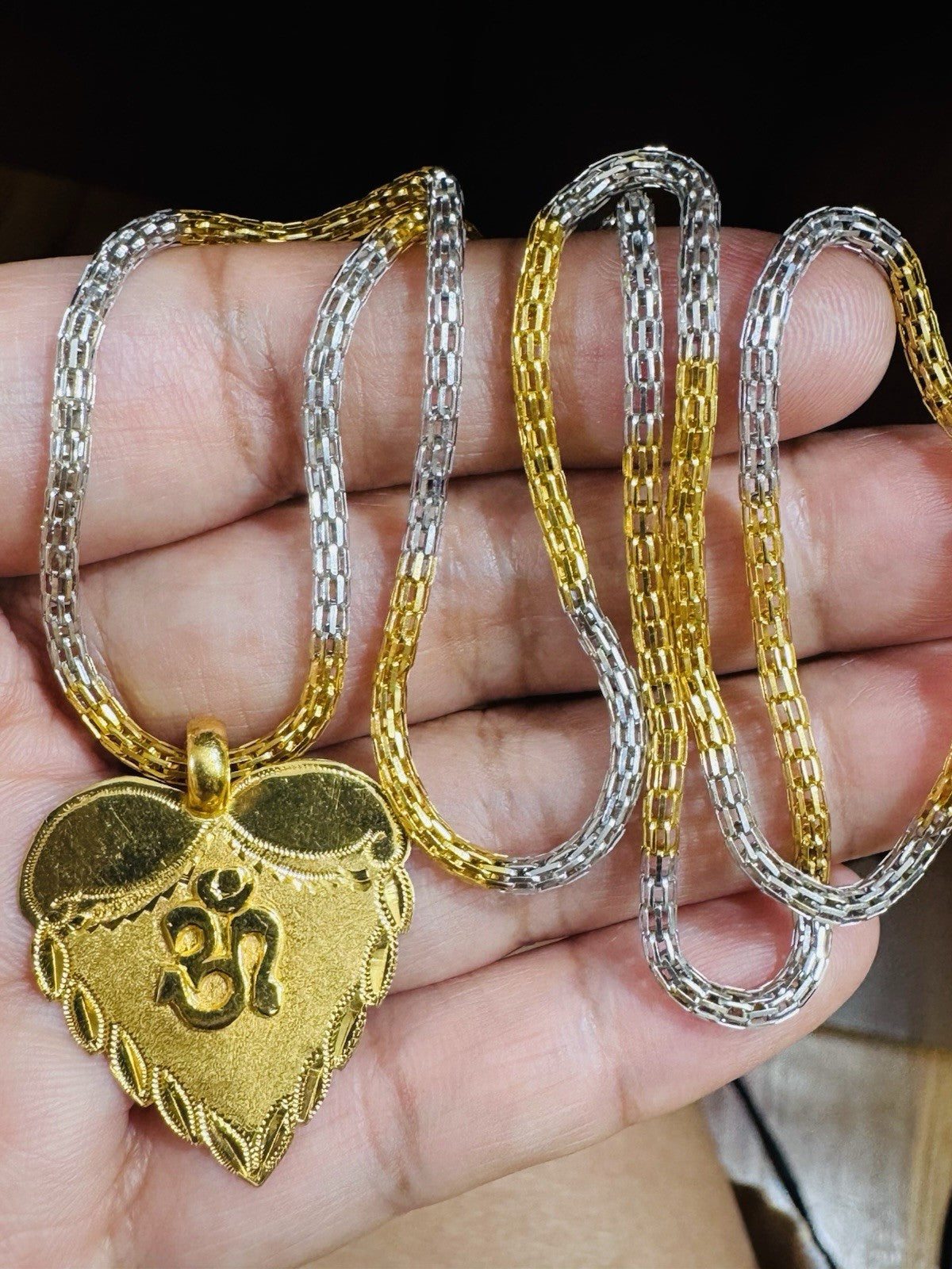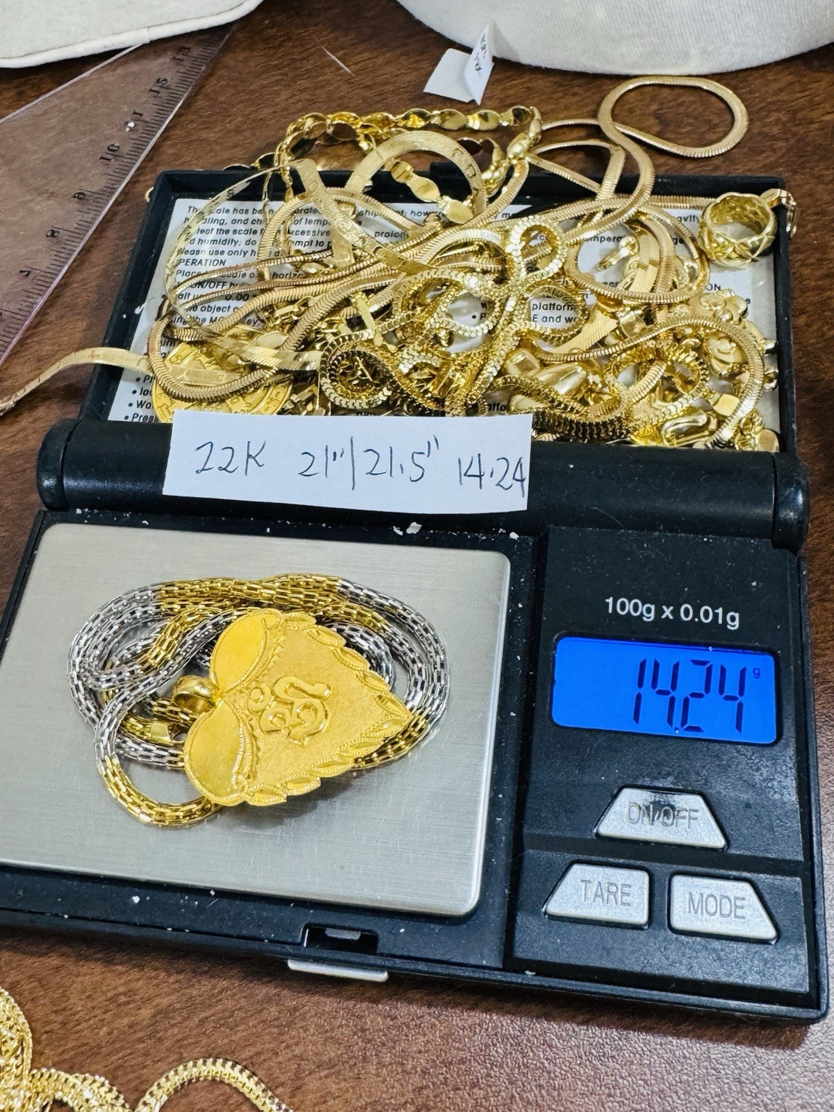 22K 916 Fine Real Gold 21.5”/22” long Heart Sikh Set Necklace 14.24g 3.mm