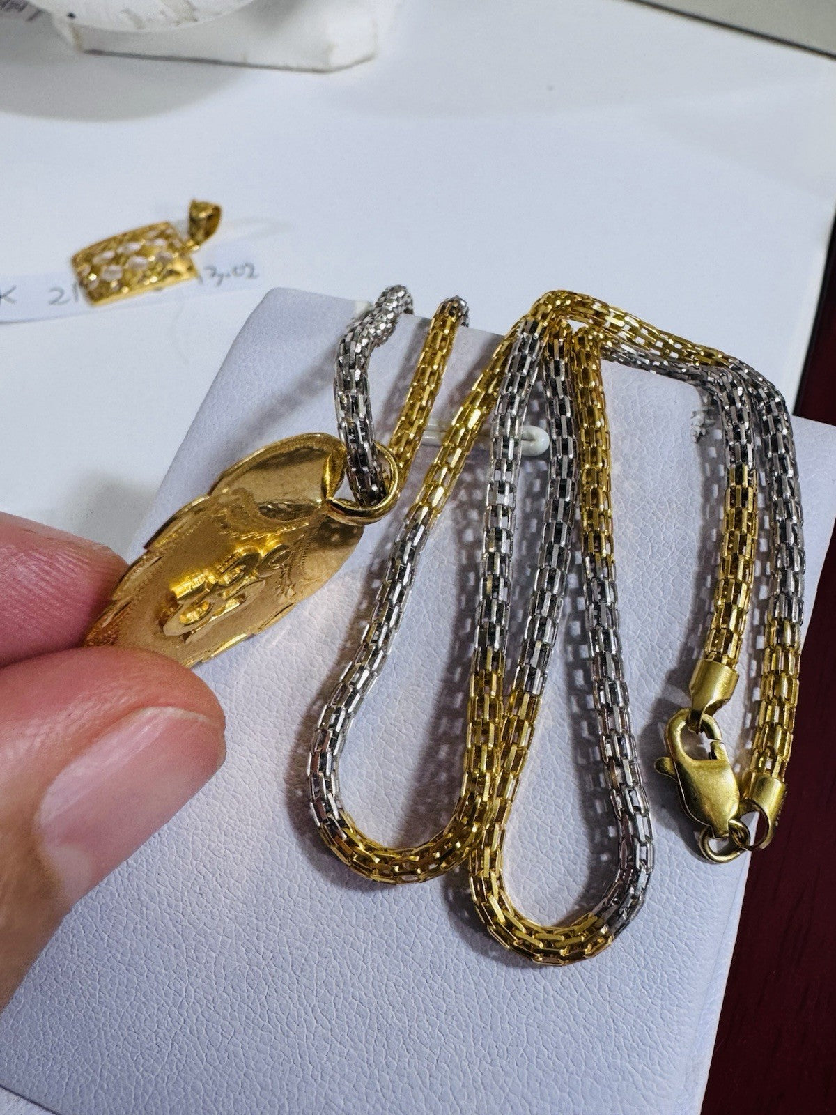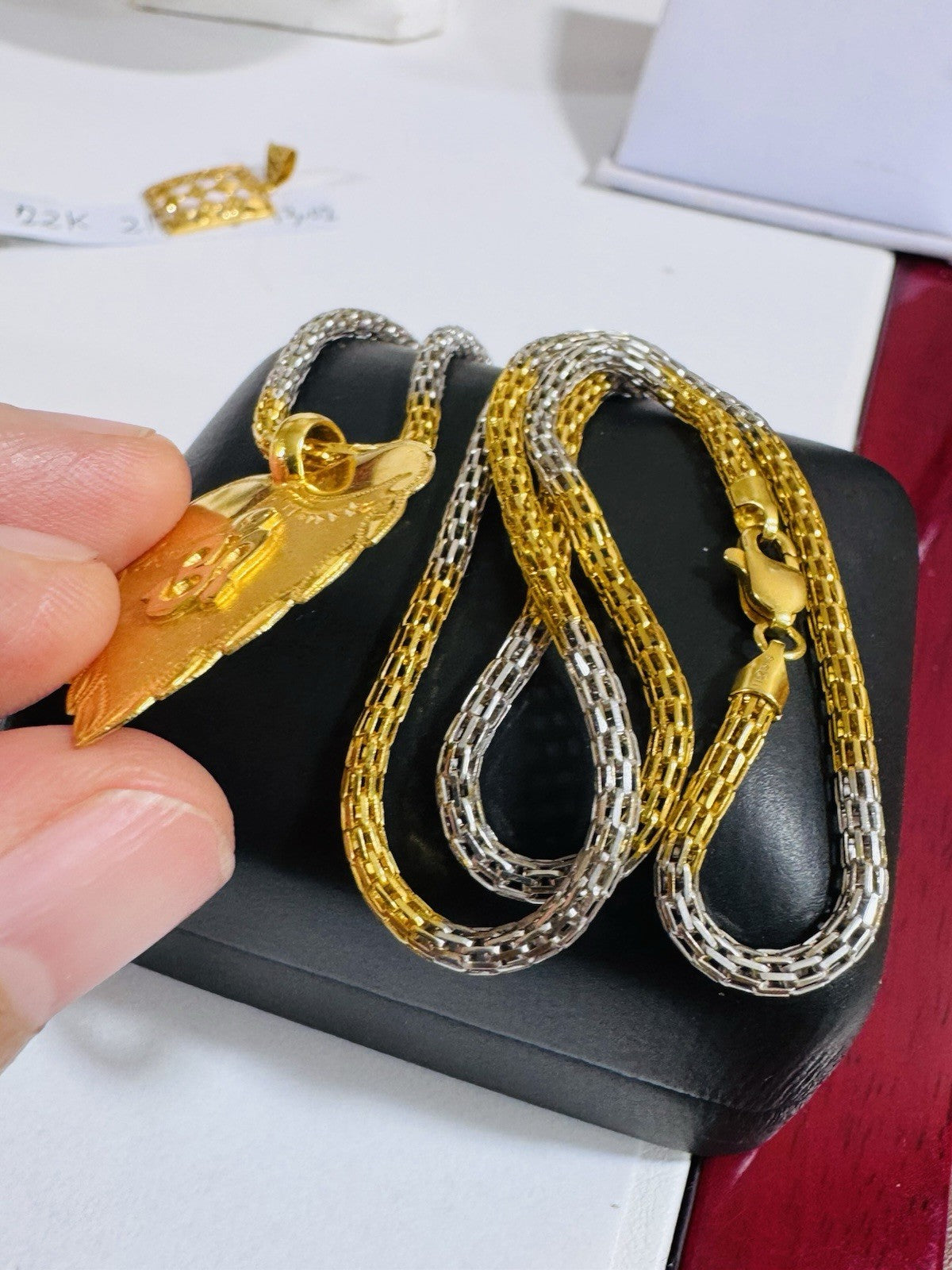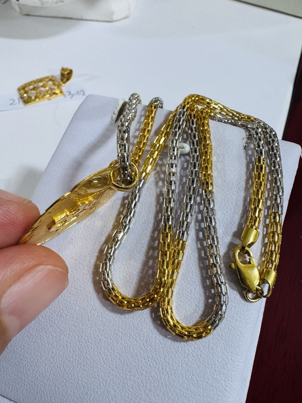 *Hello You are buying Real Beautiful Solid 22K 916 Fine Real Two tone Gold 21.5/22” Long Mens Women’s size Set Necklace 14.24g 3mm wide chain