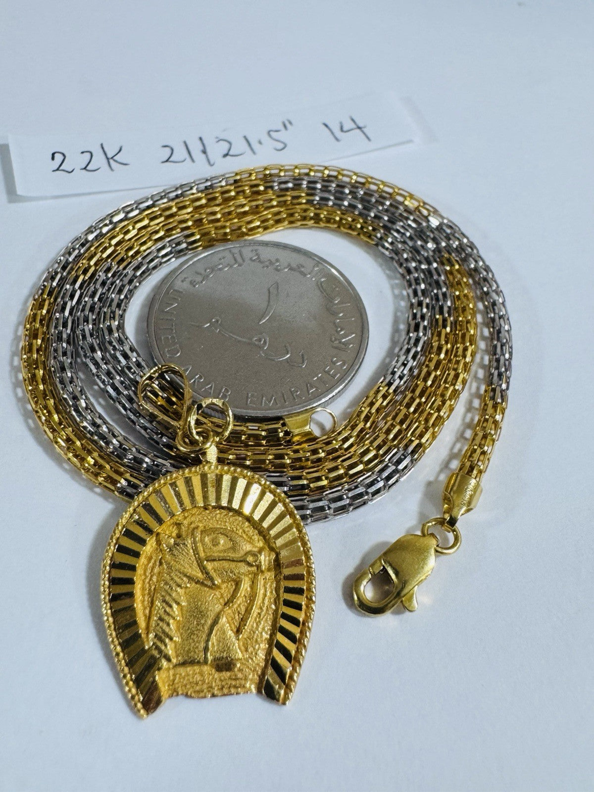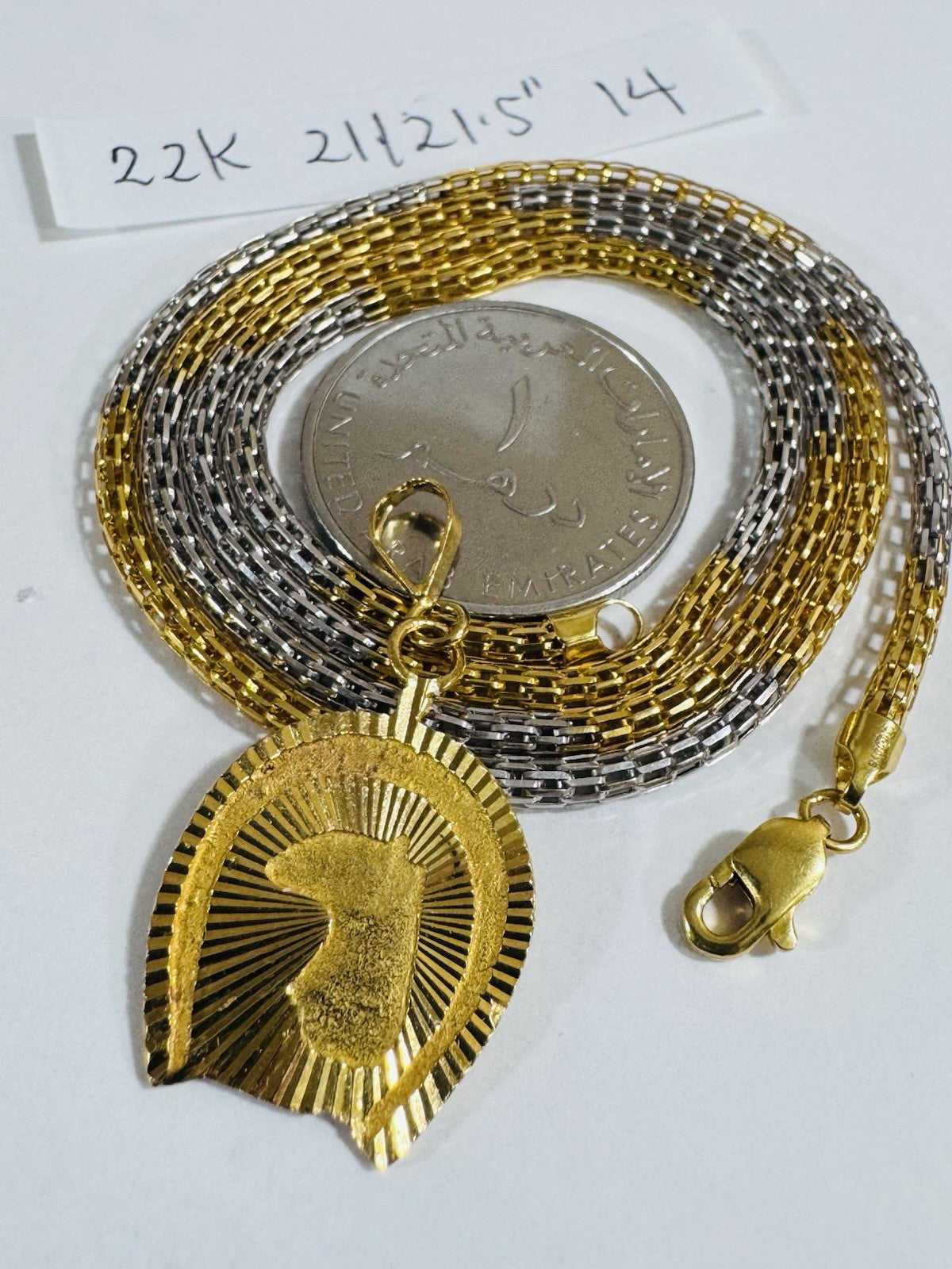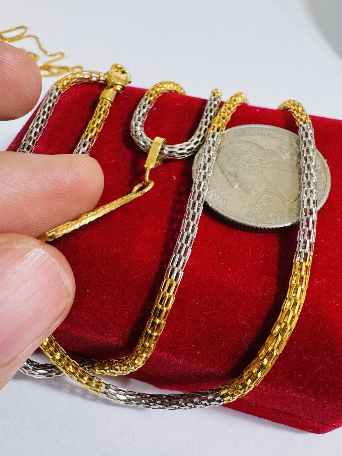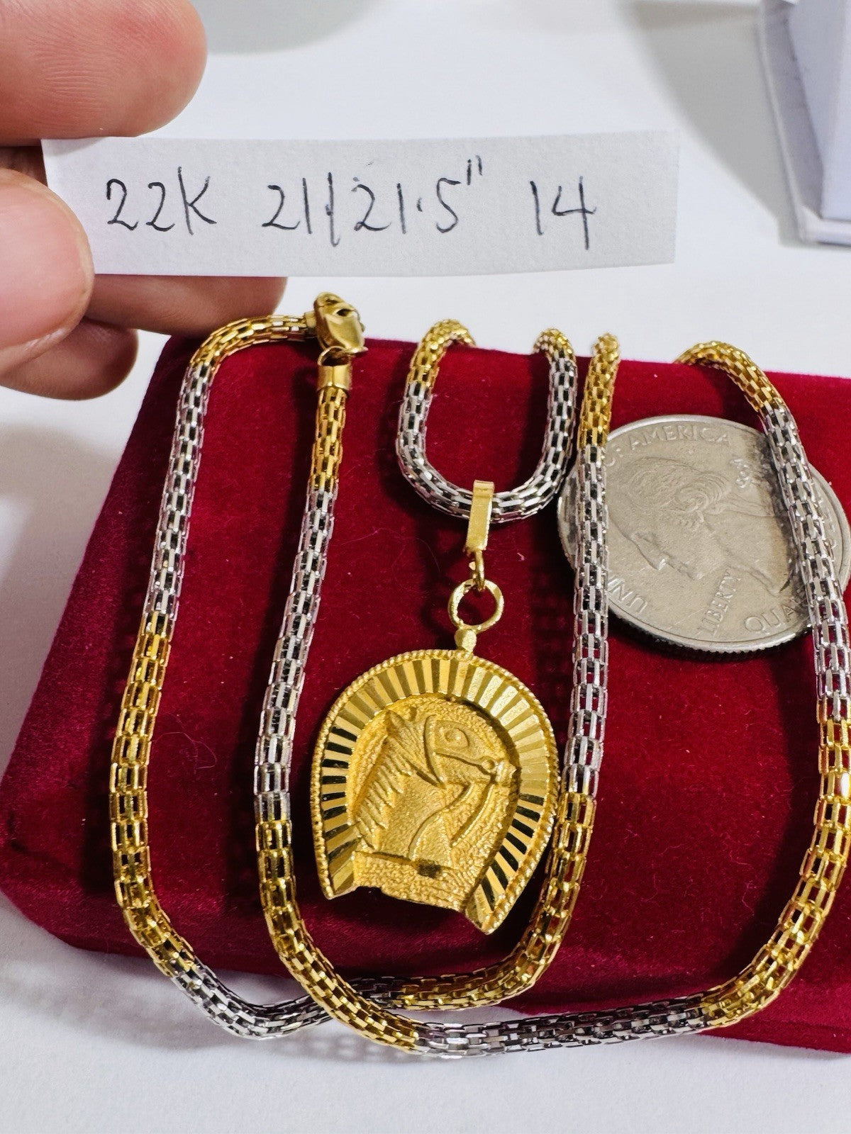 *Hello You are buying Real Beautiful Solid 22K 916 Fine Real Two tone Gold 21.5/22” Long Mens Women’s size Set Necklace 14g 3mm wide chain