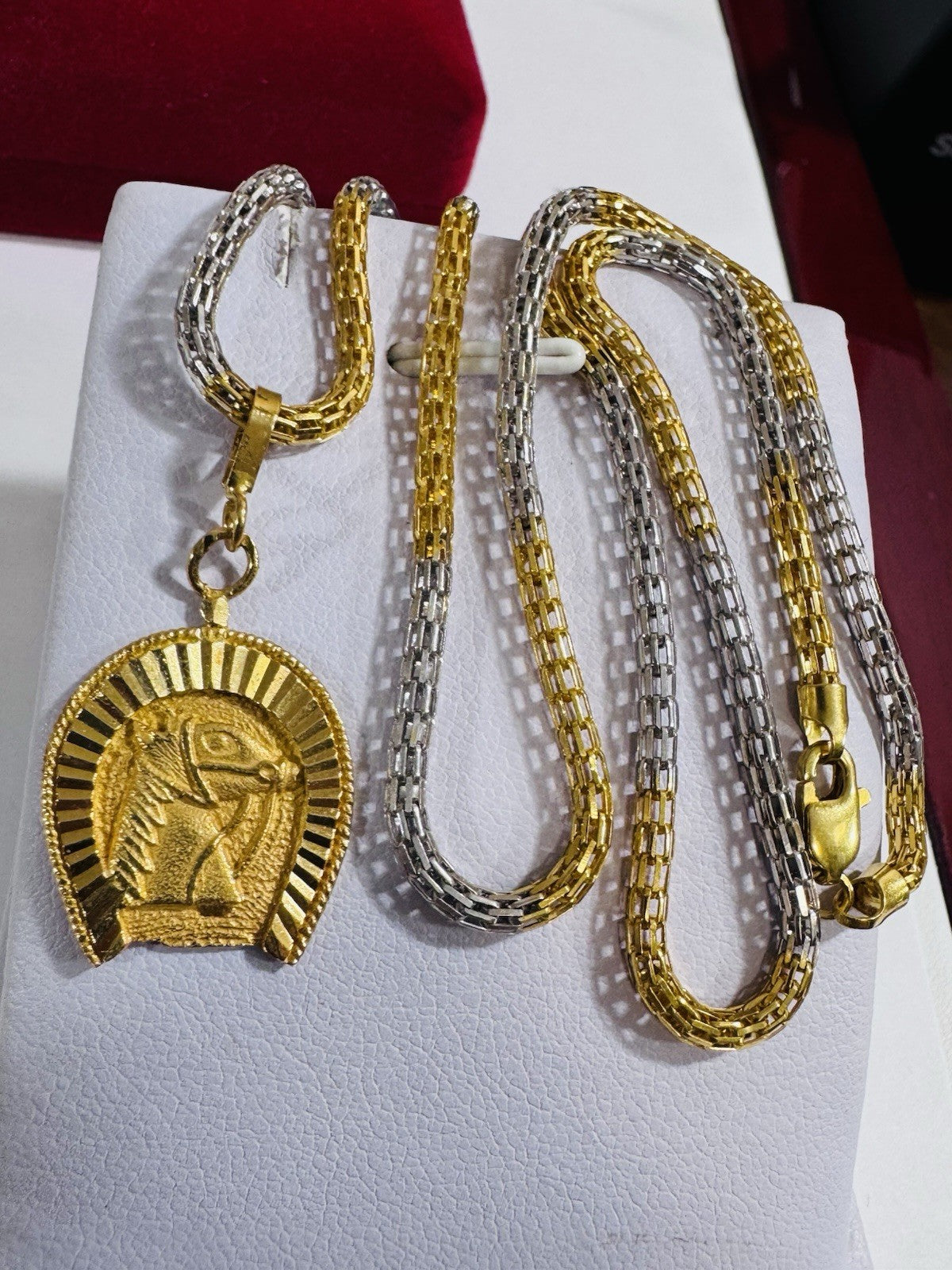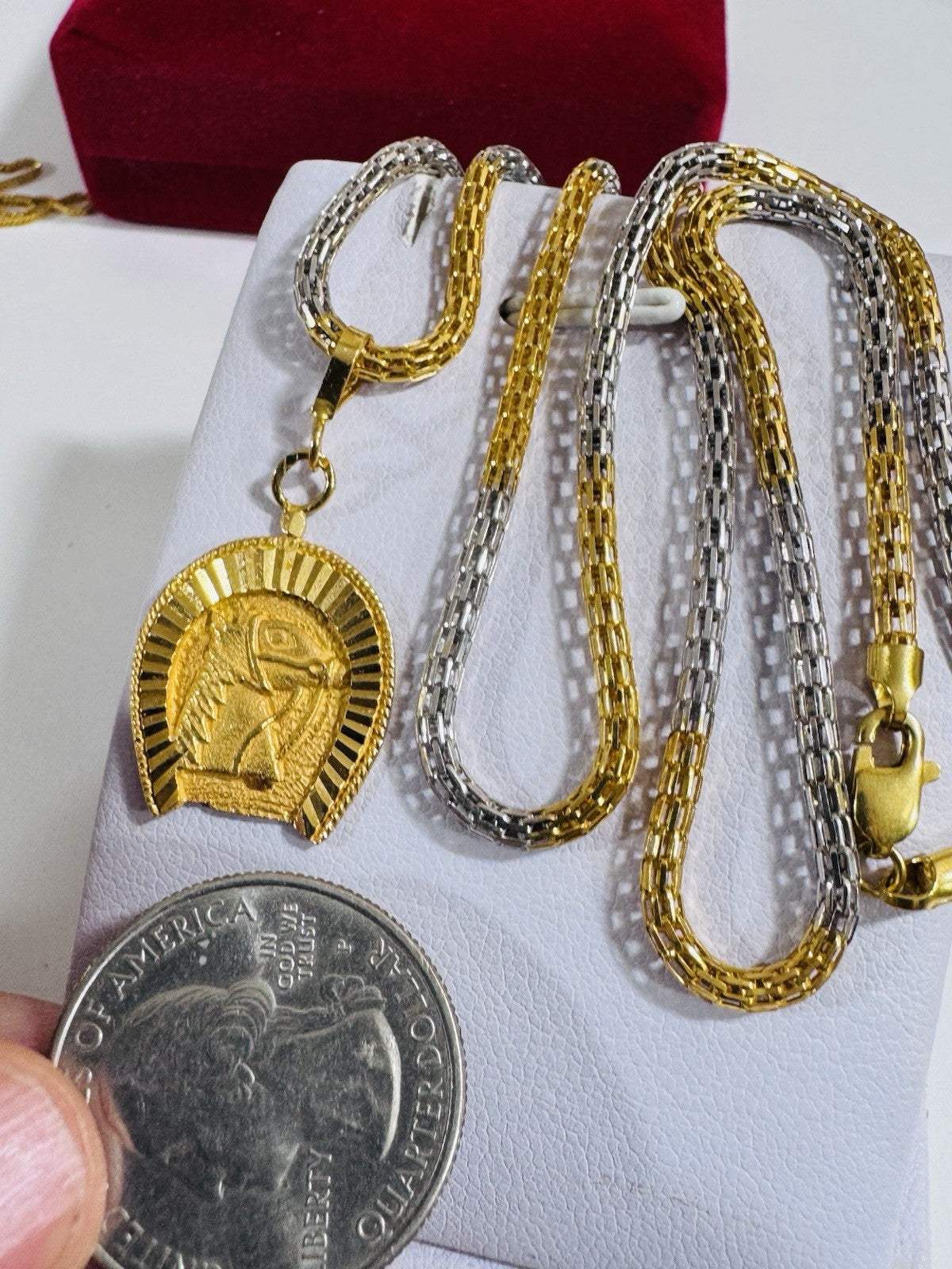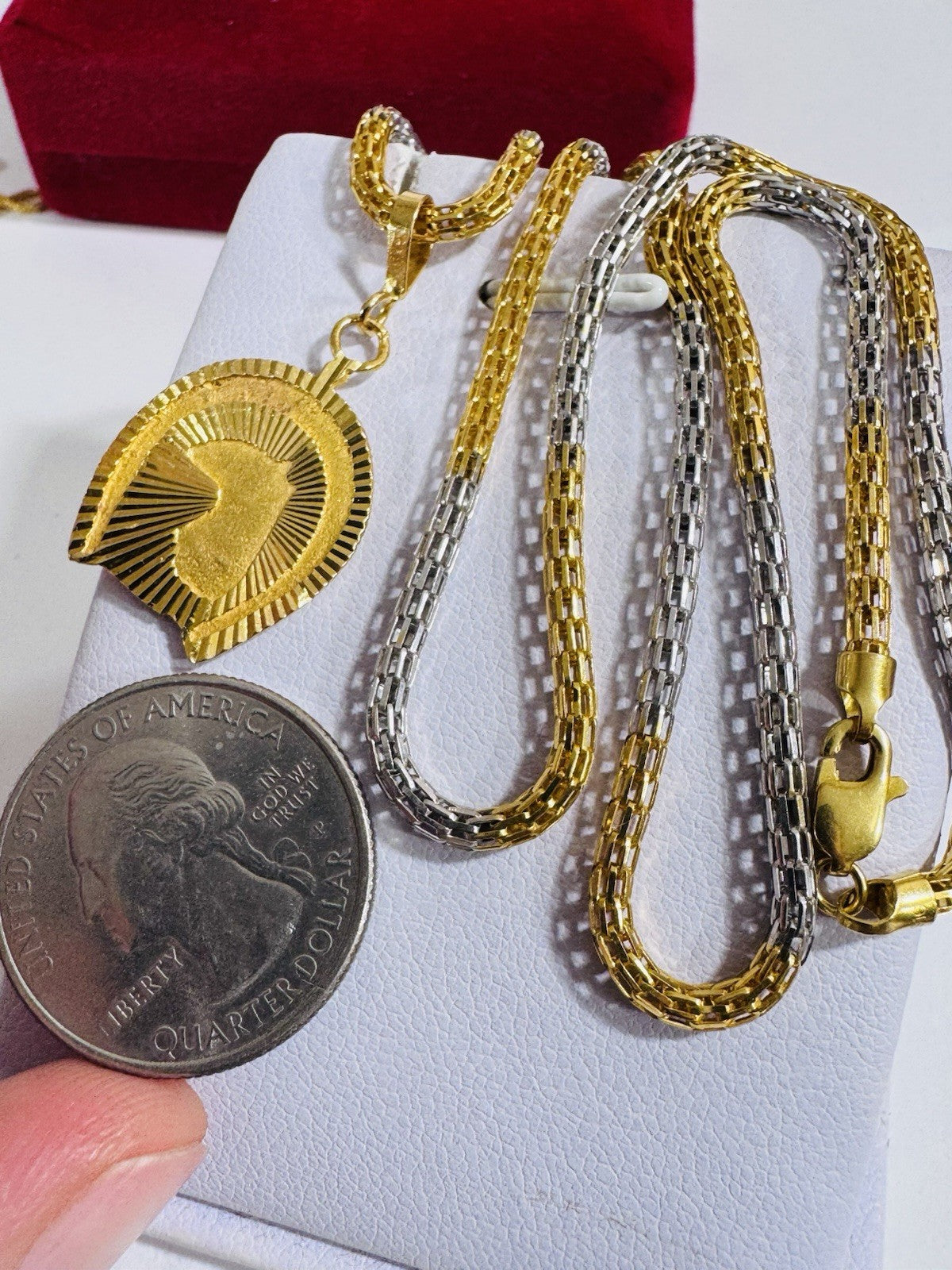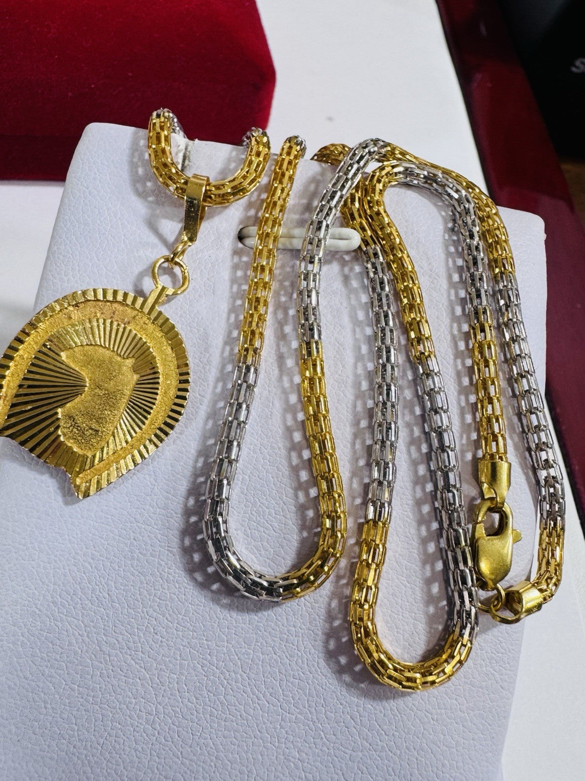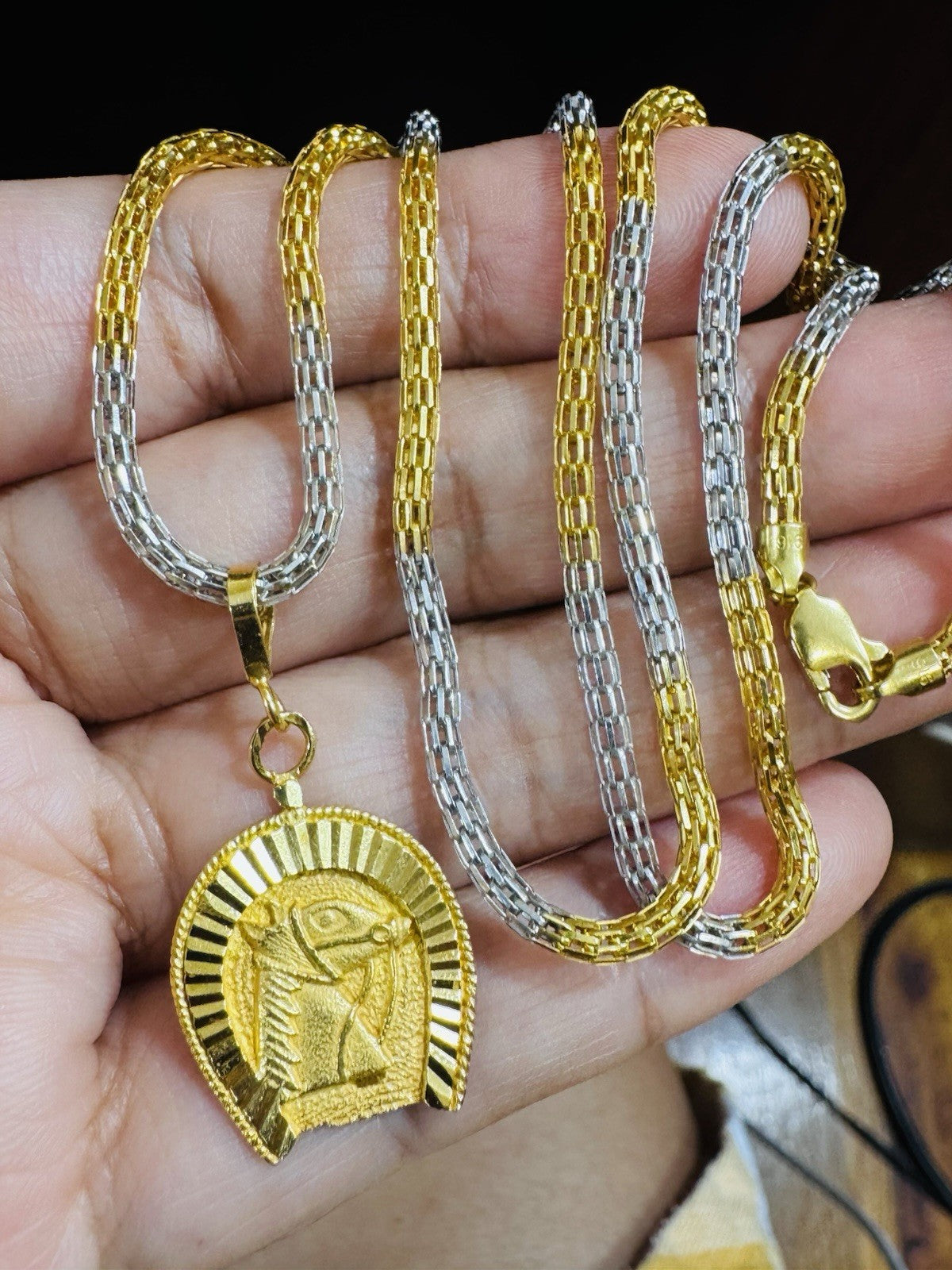 *Hello You are buying Real Beautiful Solid 22K 916 Fine Real Two tone Gold 21.5/22” Long Mens Women’s size Set Necklace 14g 3mm wide chain
