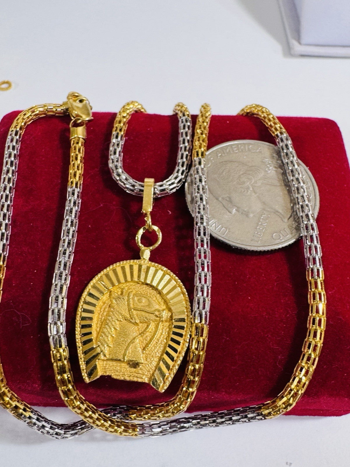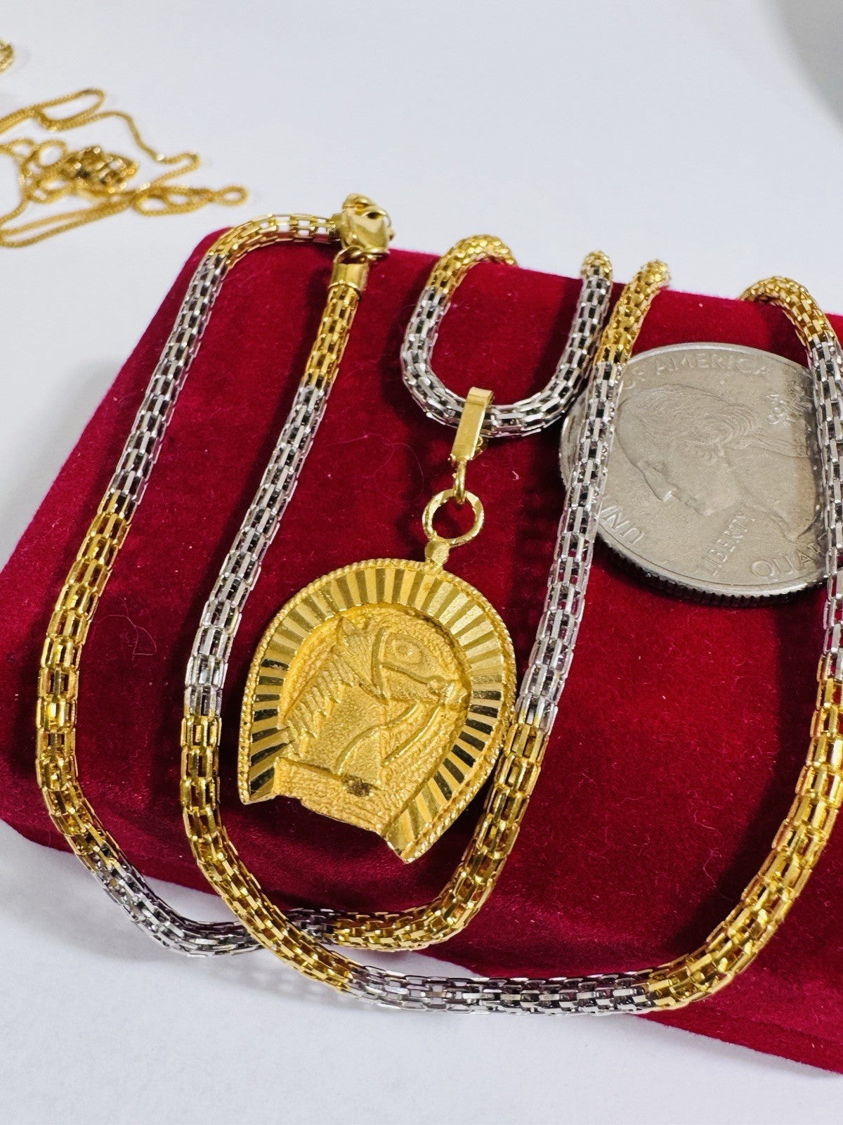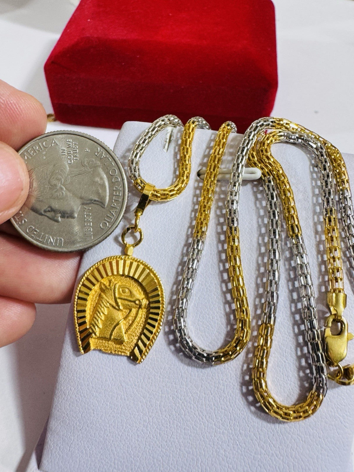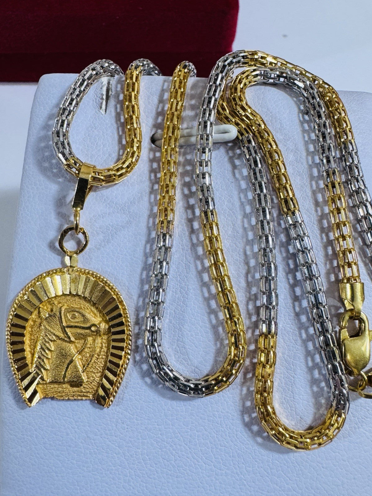 *Hello You are buying Real Beautiful Solid 22K 916 Fine Real Two tone Gold 21.5/22” Long Mens Women’s size Set Necklace 14g 3mm wide chain