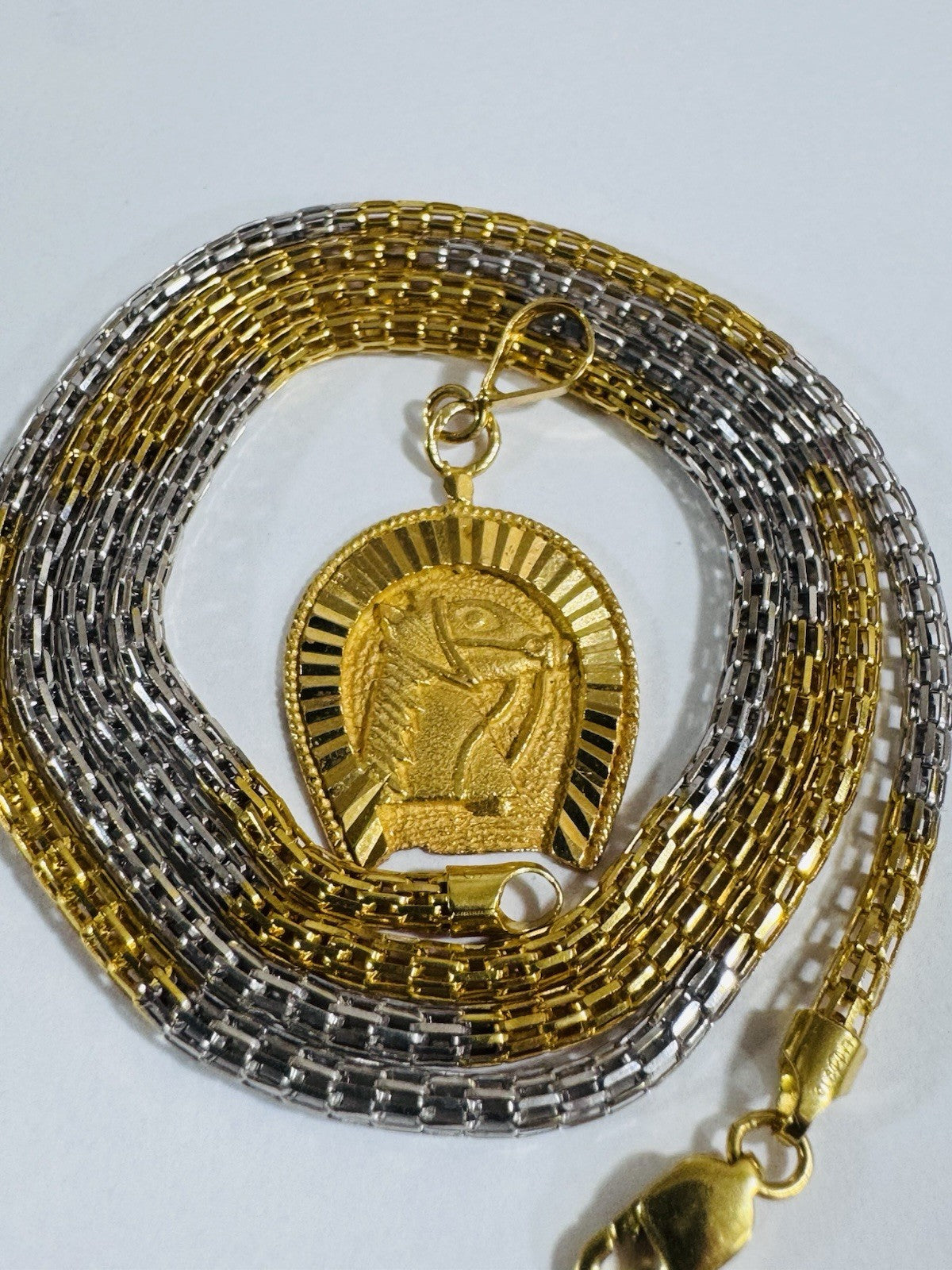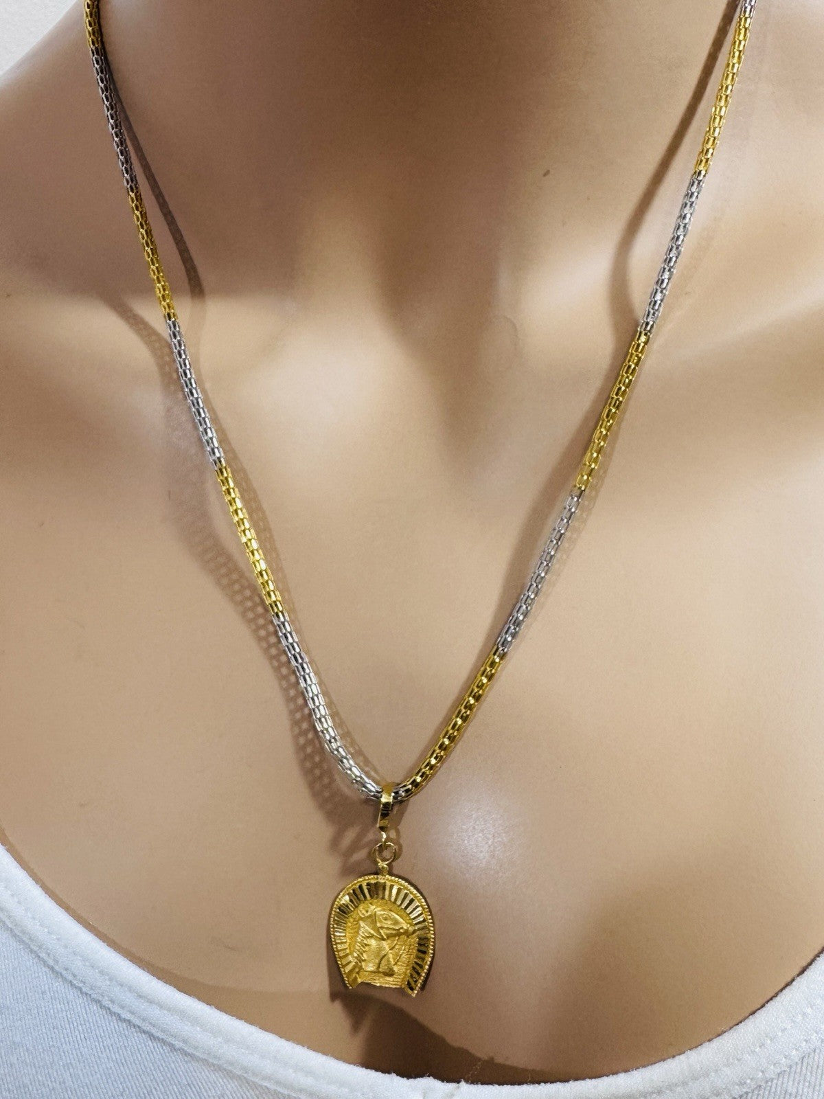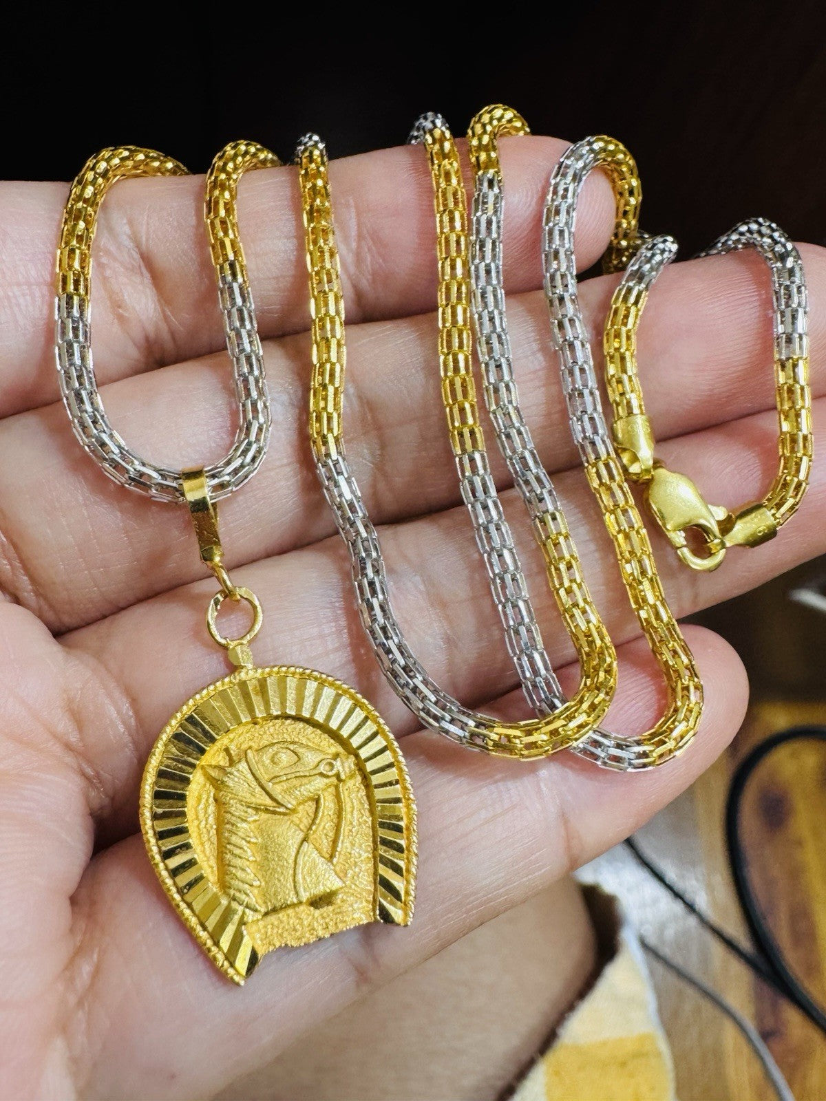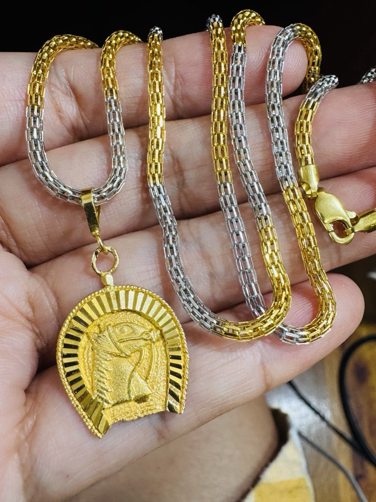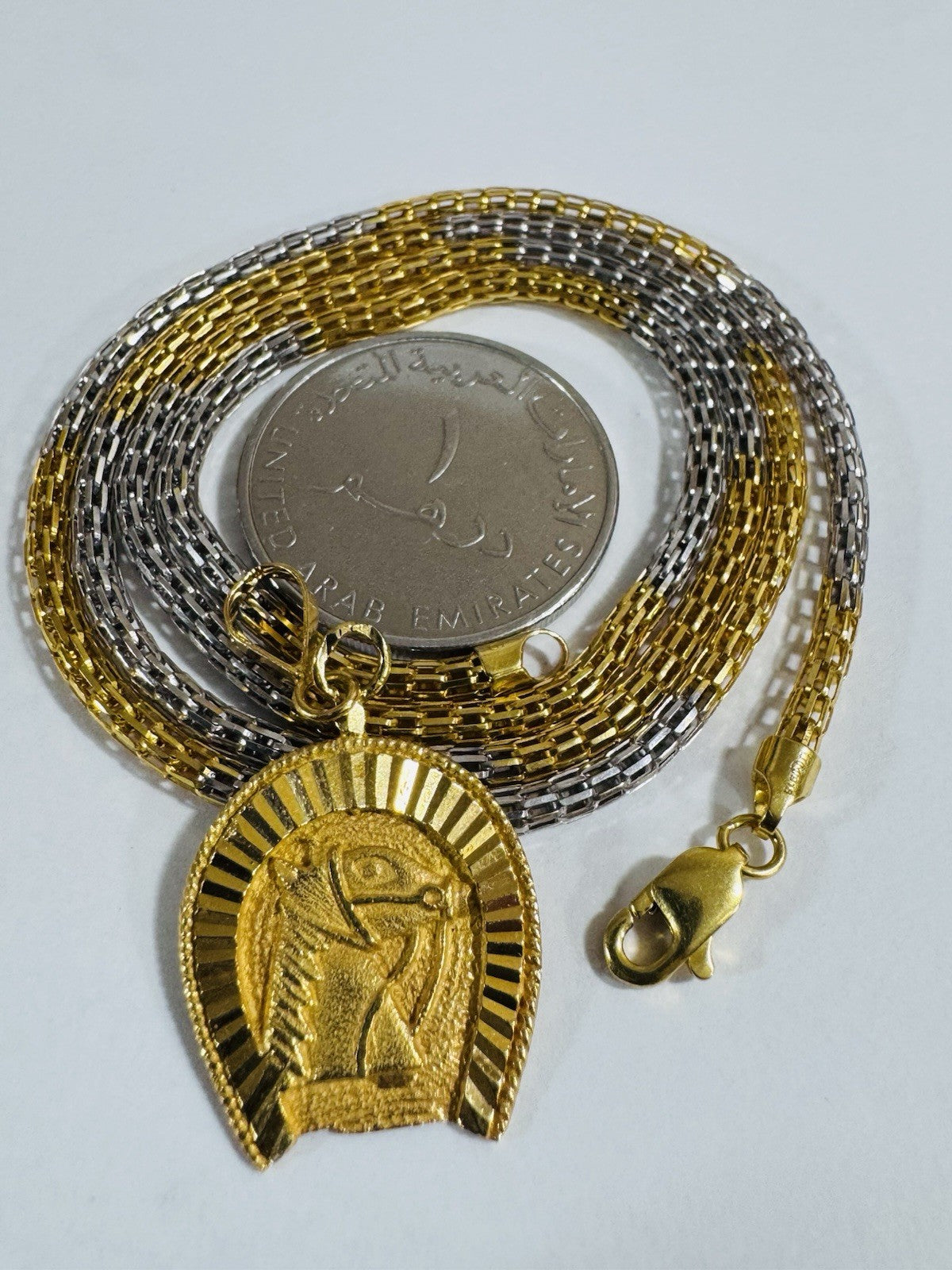 *Hello You are buying Real Beautiful Solid 22K 916 Fine Real Two tone Gold 21.5/22” Long Mens Women’s size Set Necklace 14g 3mm wide chain