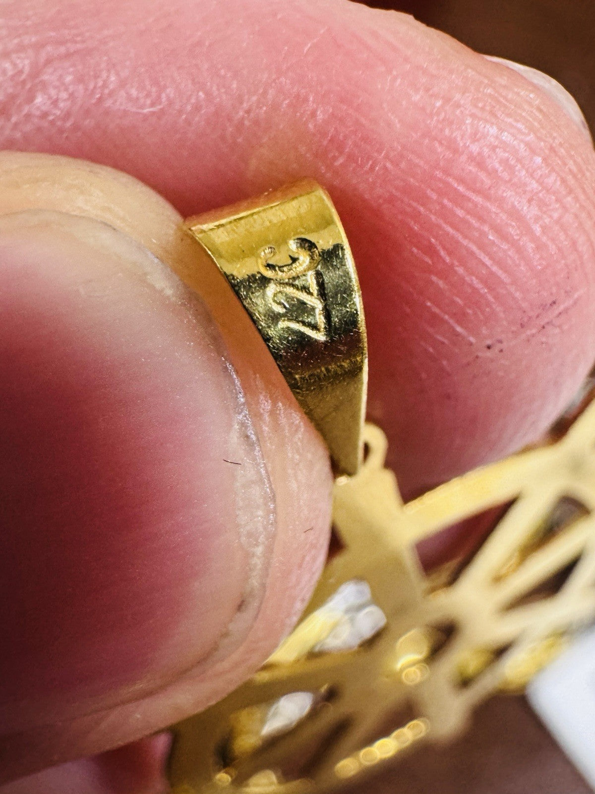 *100% 22C gold "916” equivalent, Mark stamp and tested Saudi gold, Good weight thin size due to Solid type gold inside strong enough to hold.