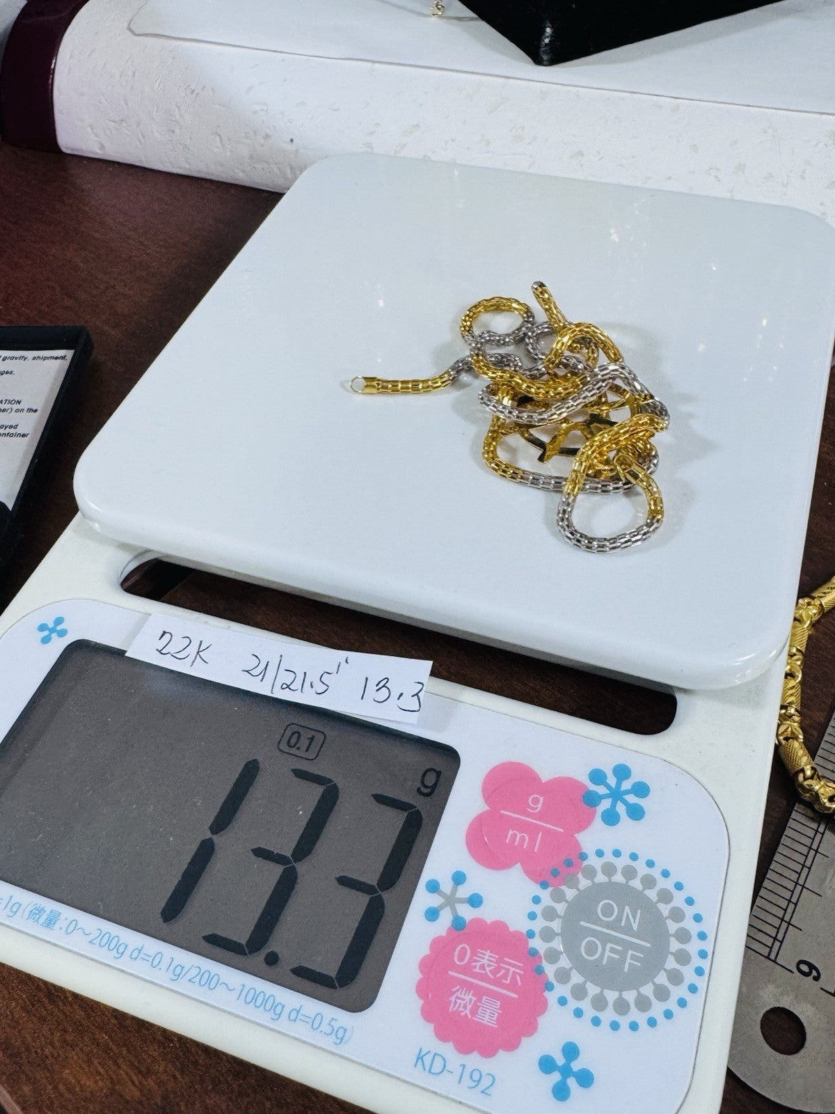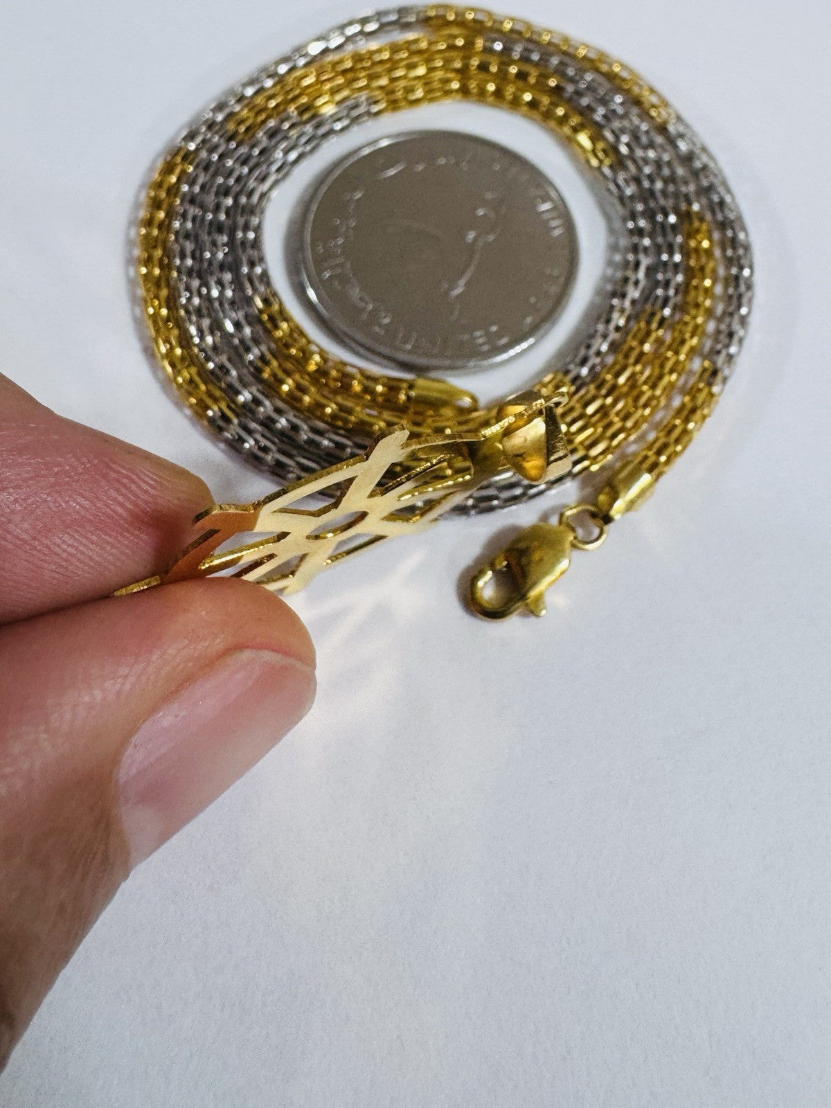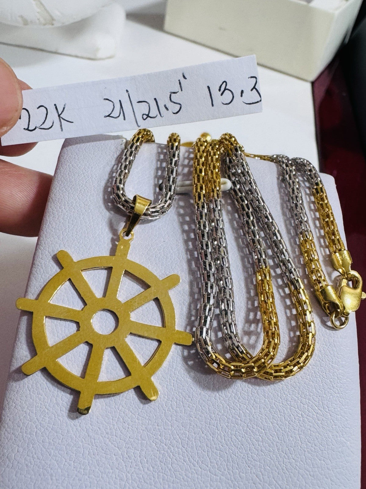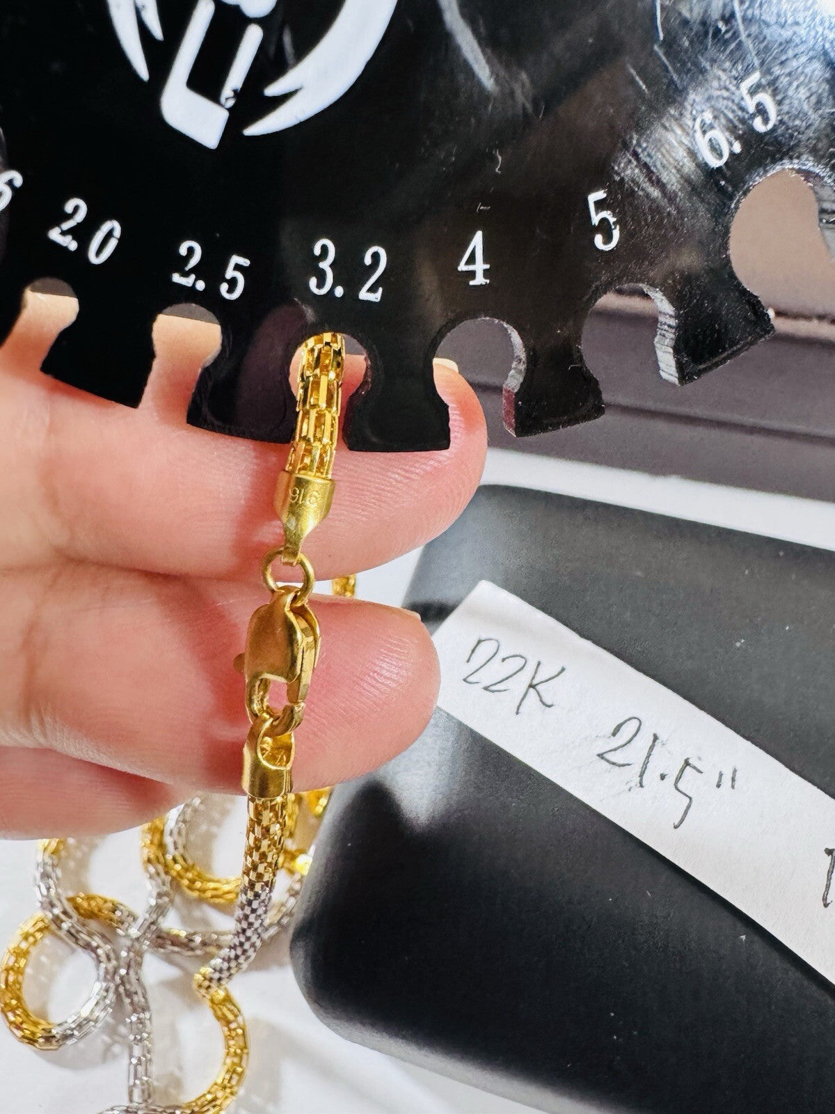 *Hello You are buying Real Beautiful Solid 22K 916 Fine Real Two tone Gold 21.5/22” Long Mens Women’s size Set Necklace 13.3g 3mm wide chain