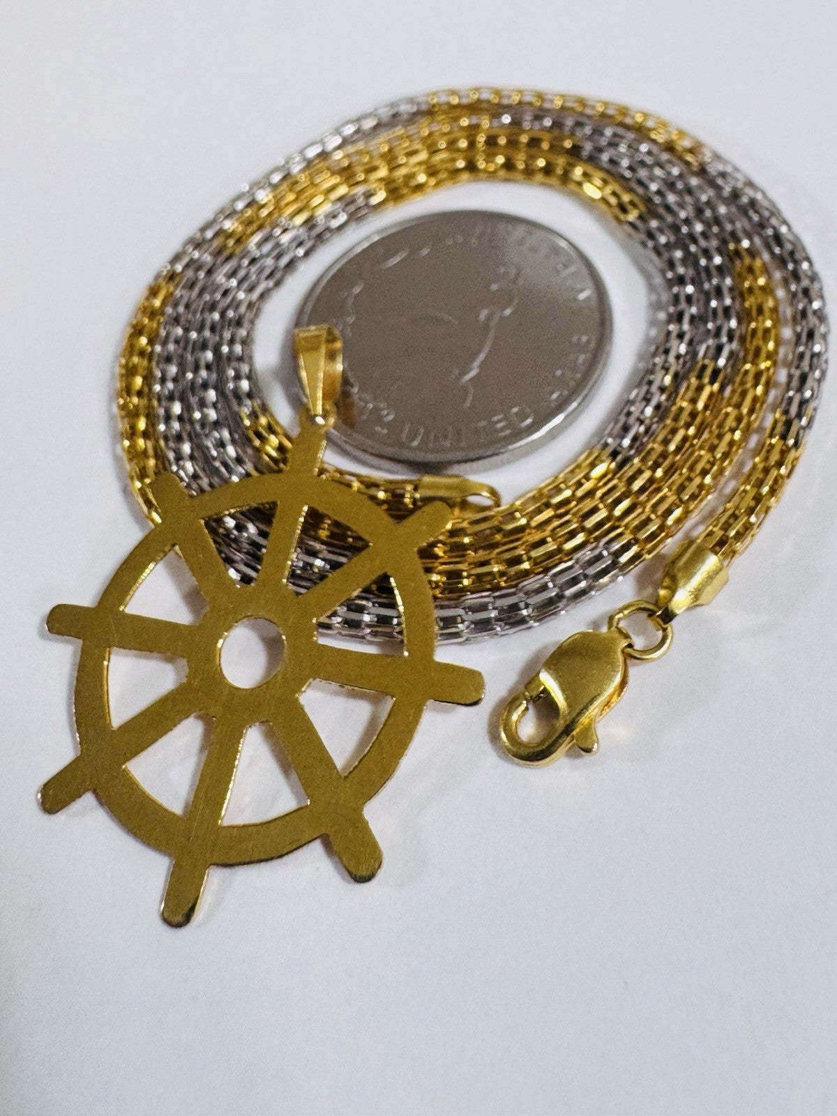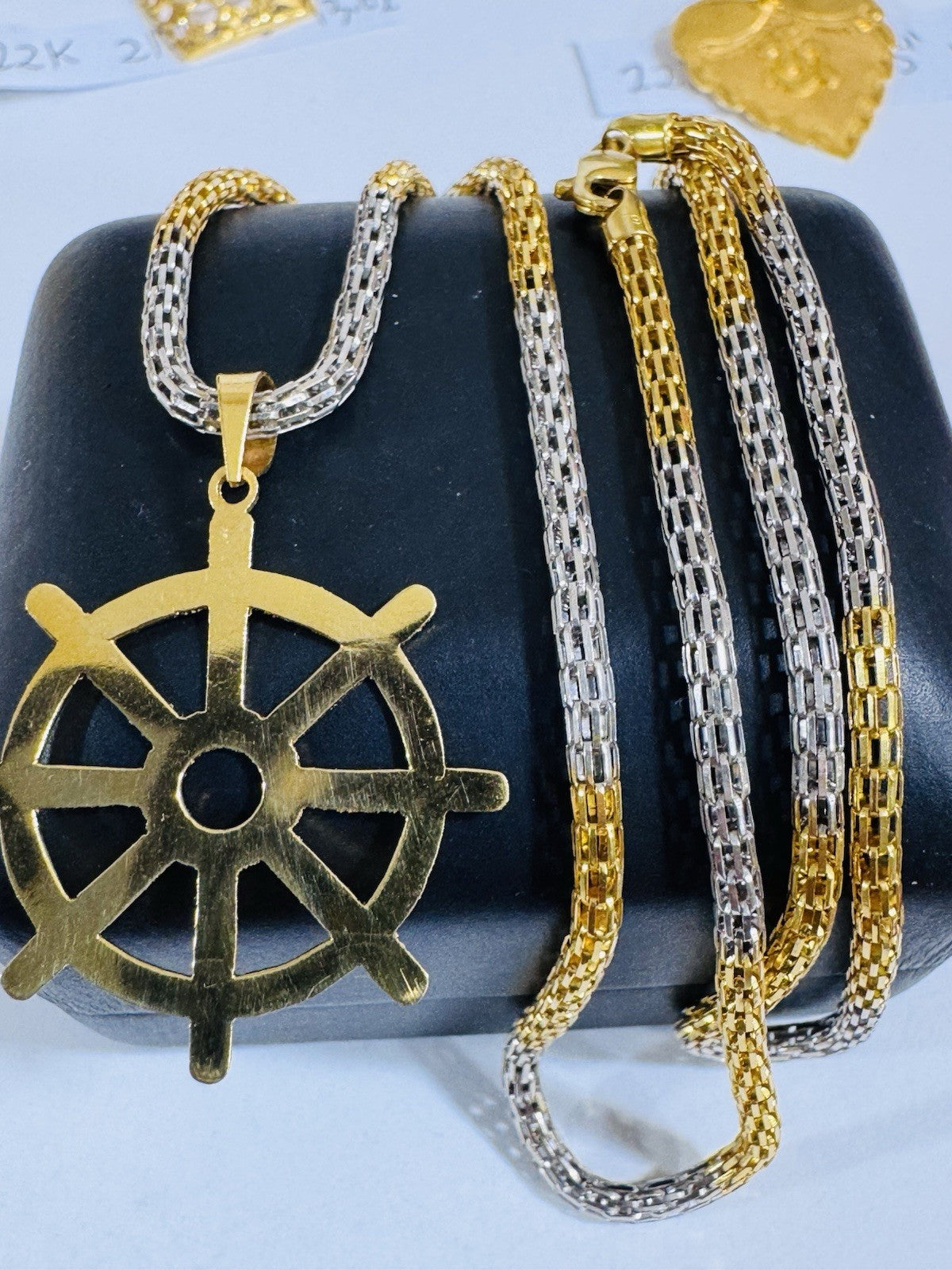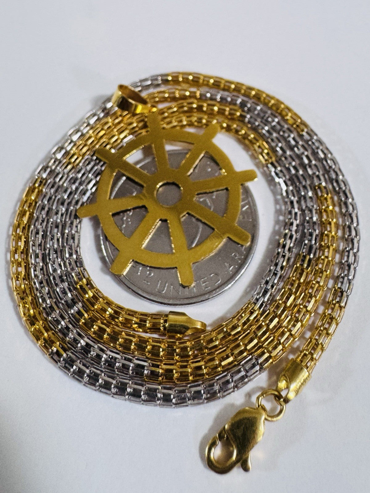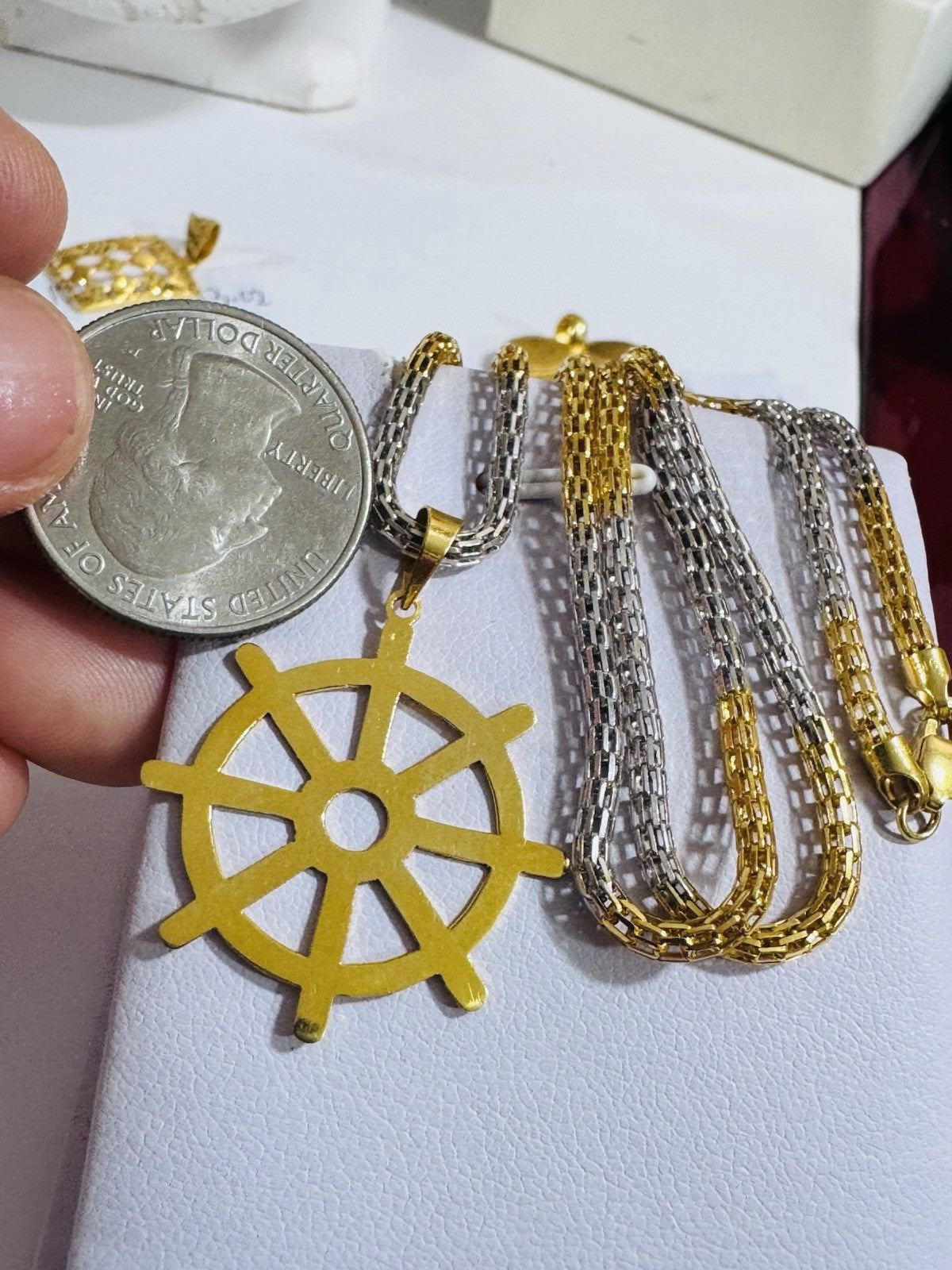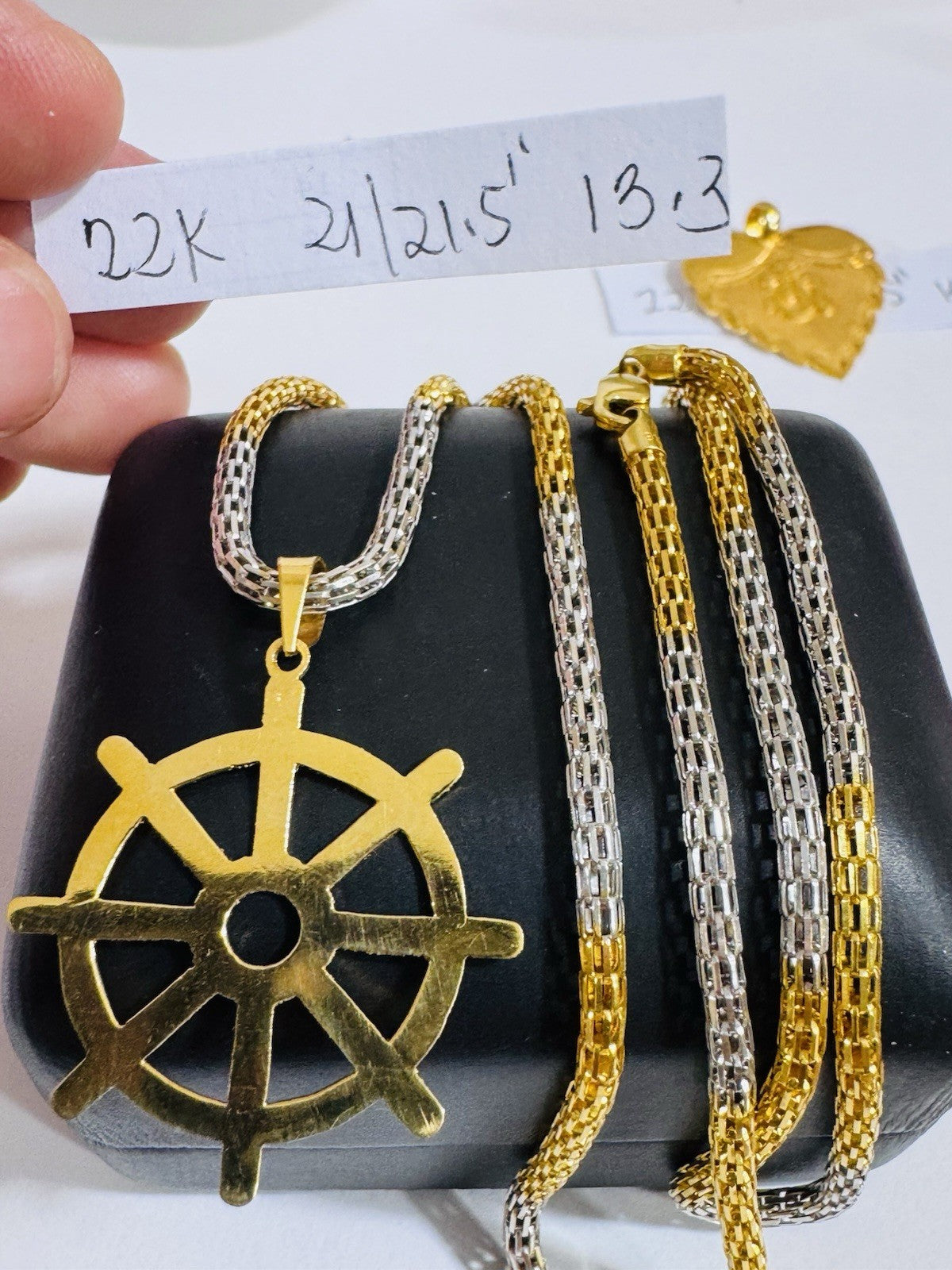 *Hello You are buying Real Beautiful Solid 22K 916 Fine Real Two tone Gold 21.5/22” Long Mens Women’s size Set Necklace 13.3g 3mm wide chain
