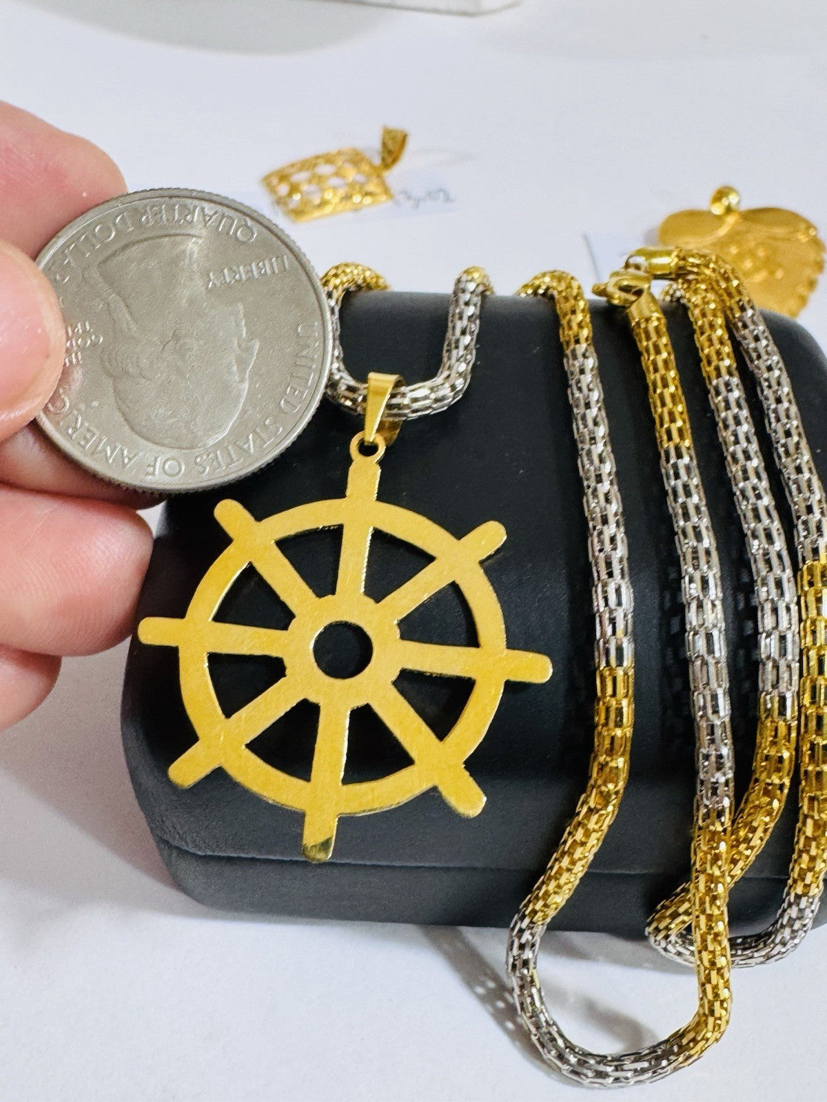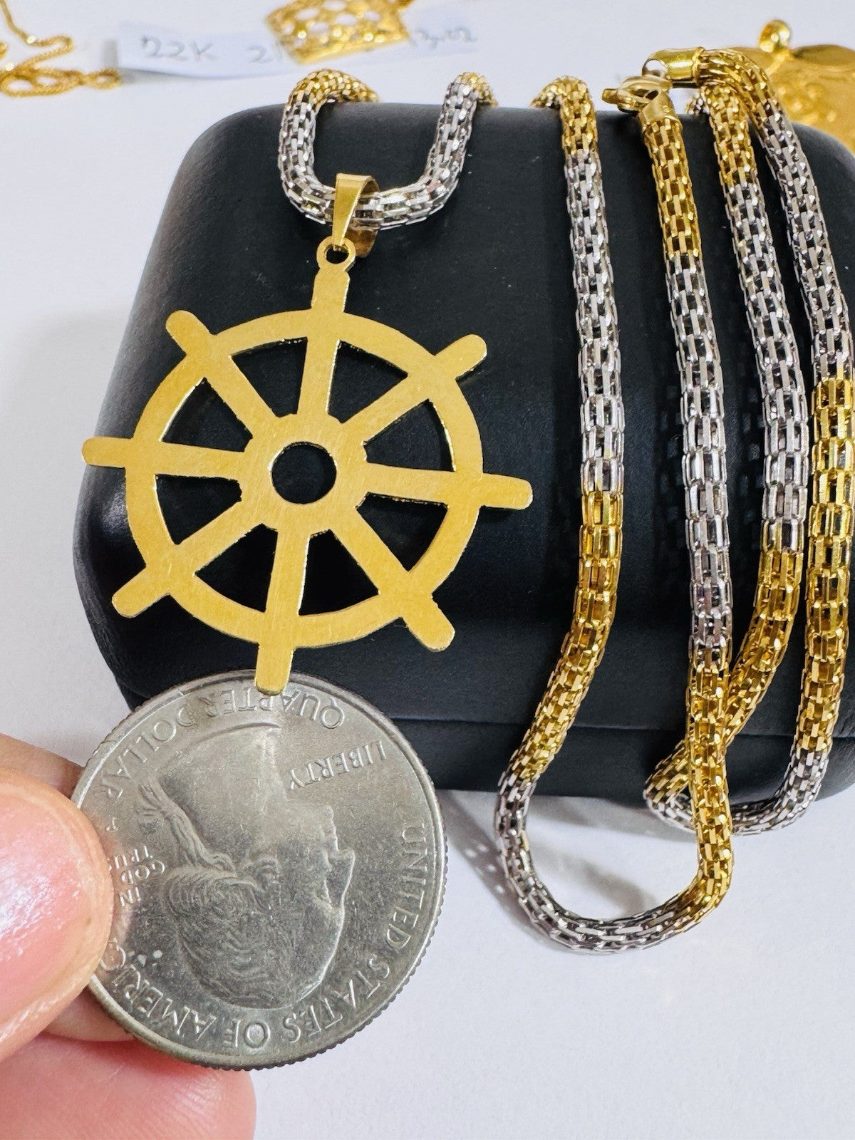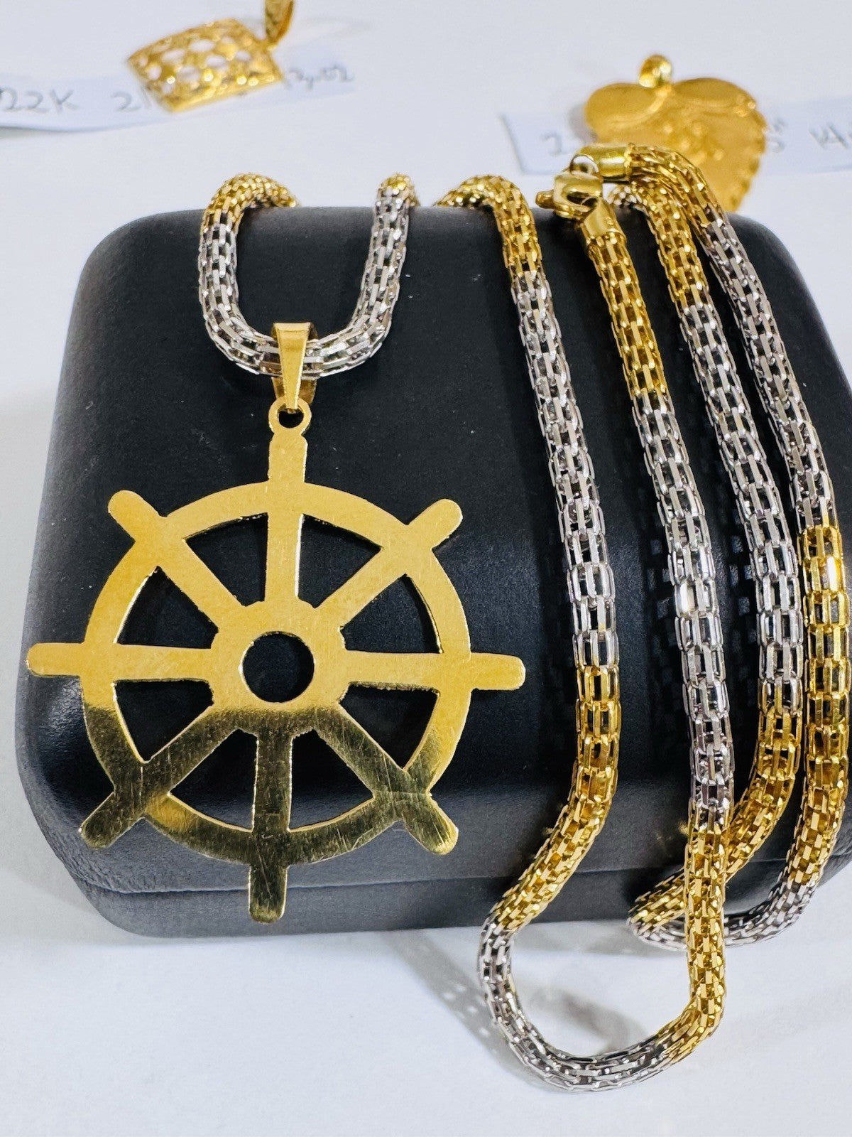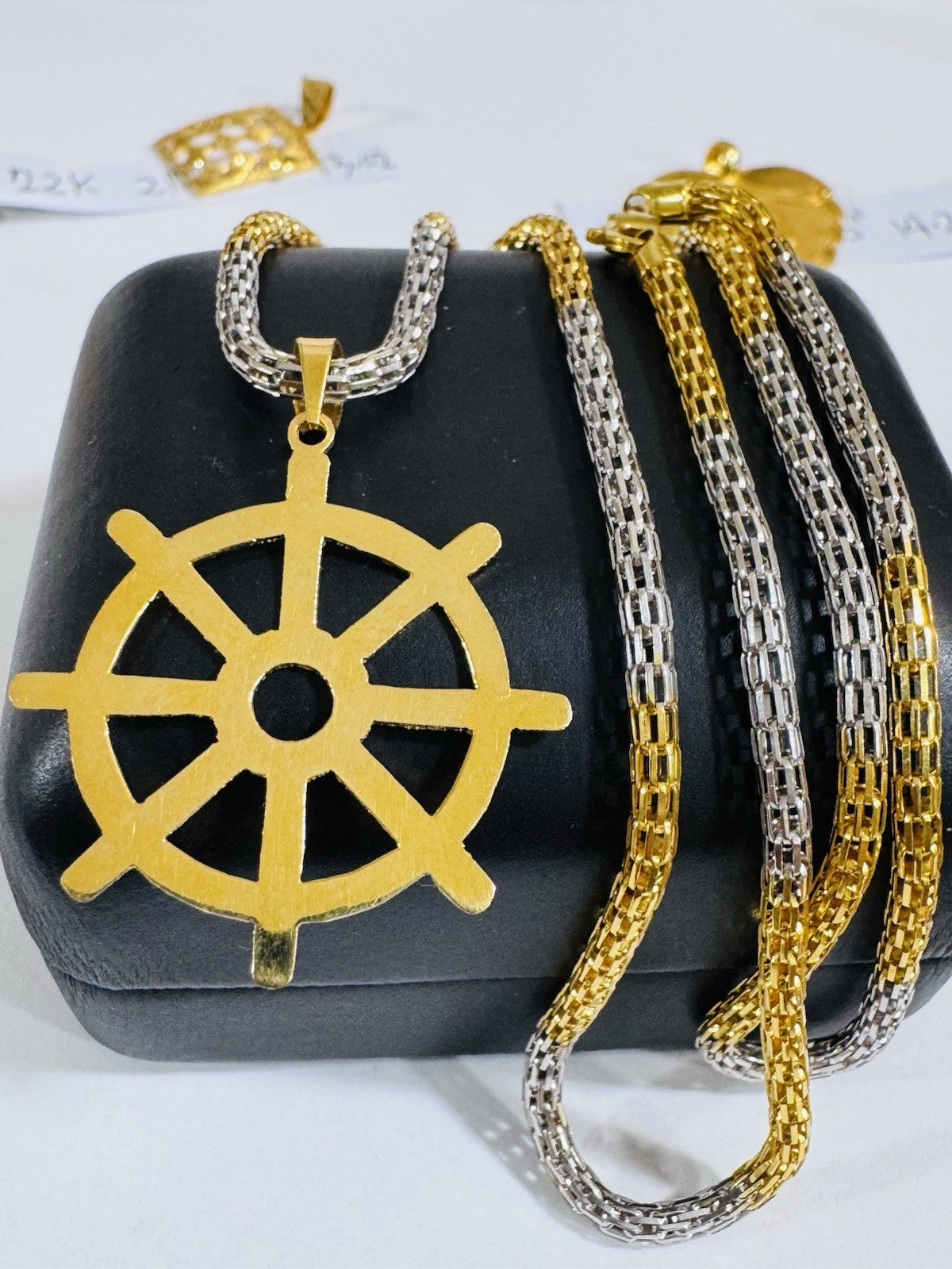 *Hello You are buying Real Beautiful Solid 22K 916 Fine Real Two tone Gold 21.5/22” Long Mens Women’s size Set Necklace 13.3g 3mm wide chain