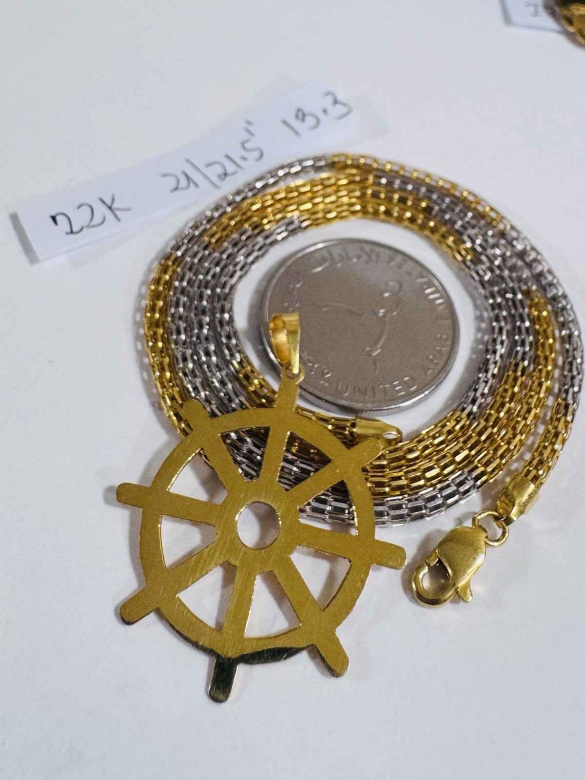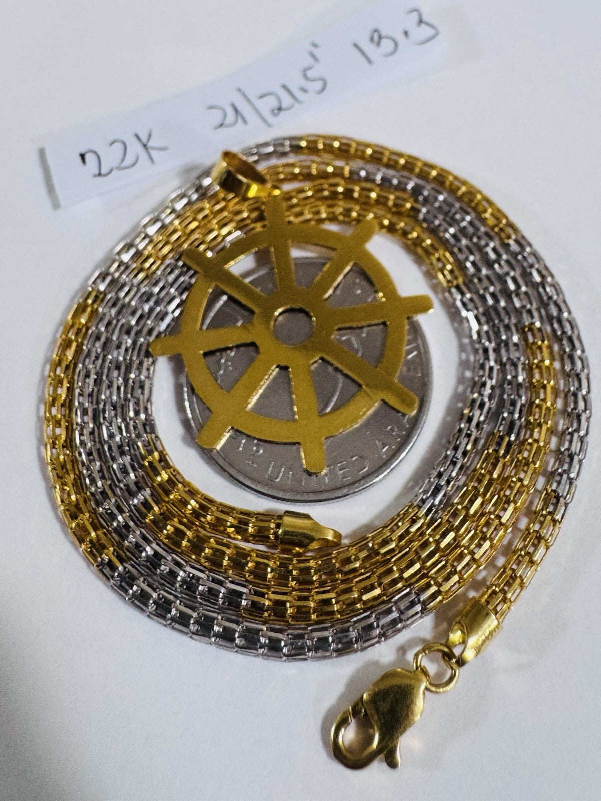 22K 916 Fine Real Gold 21.5”/22” long Mariner Set Necklace 13.3g 3.mm