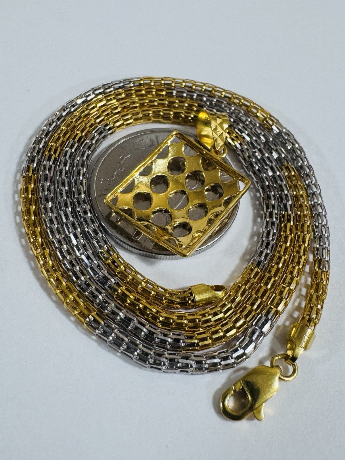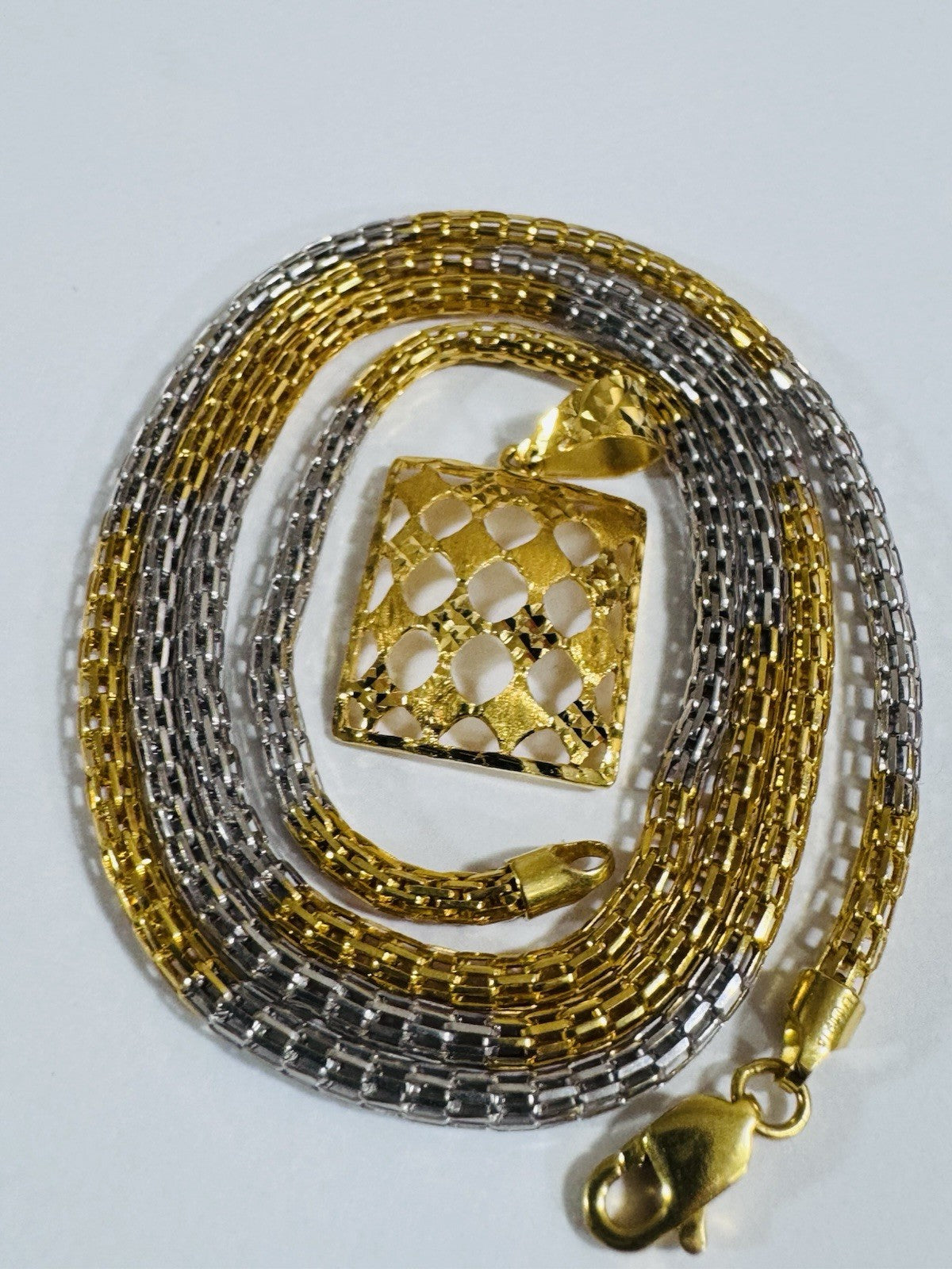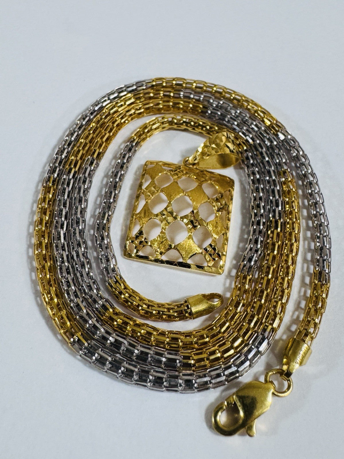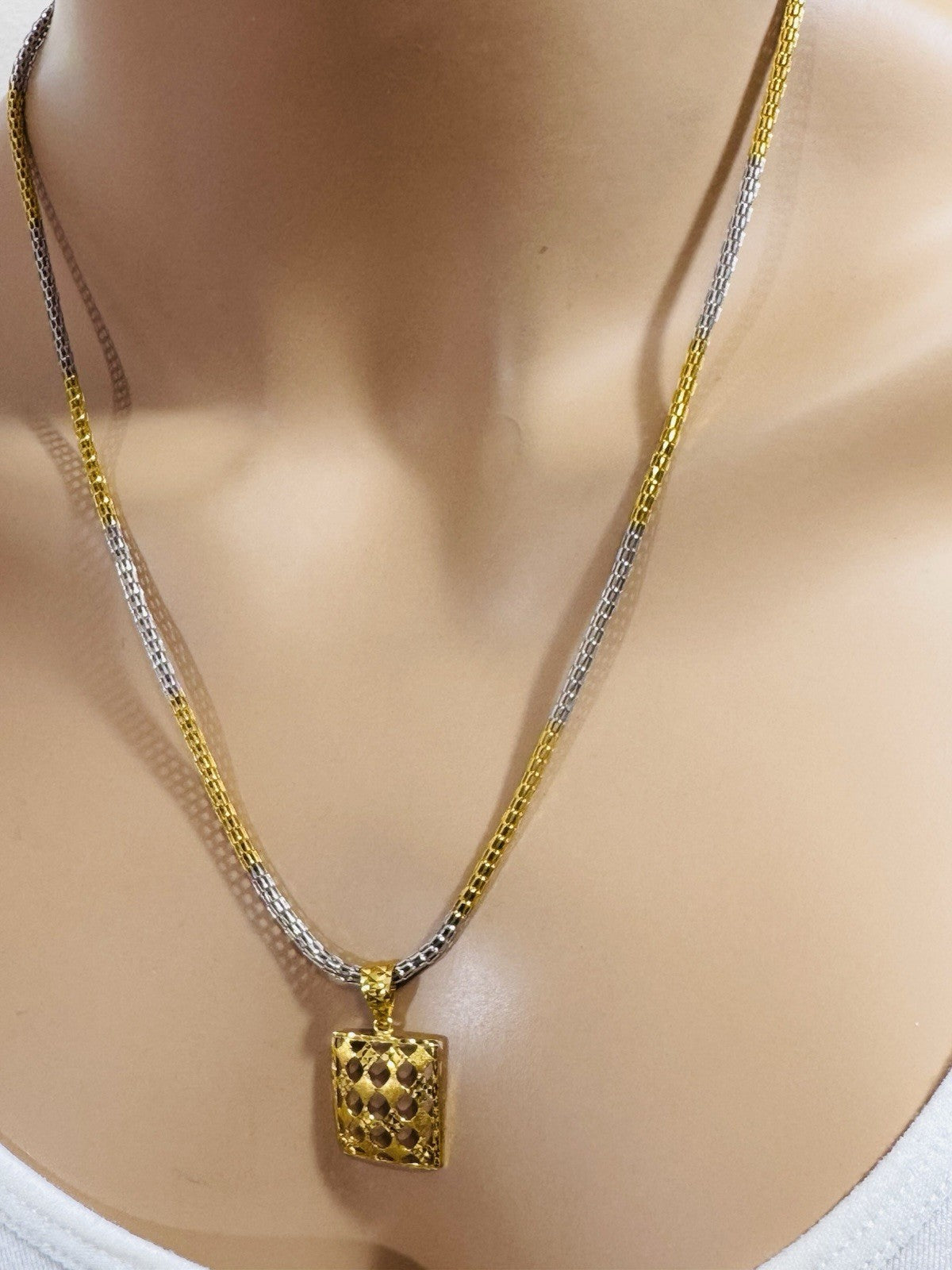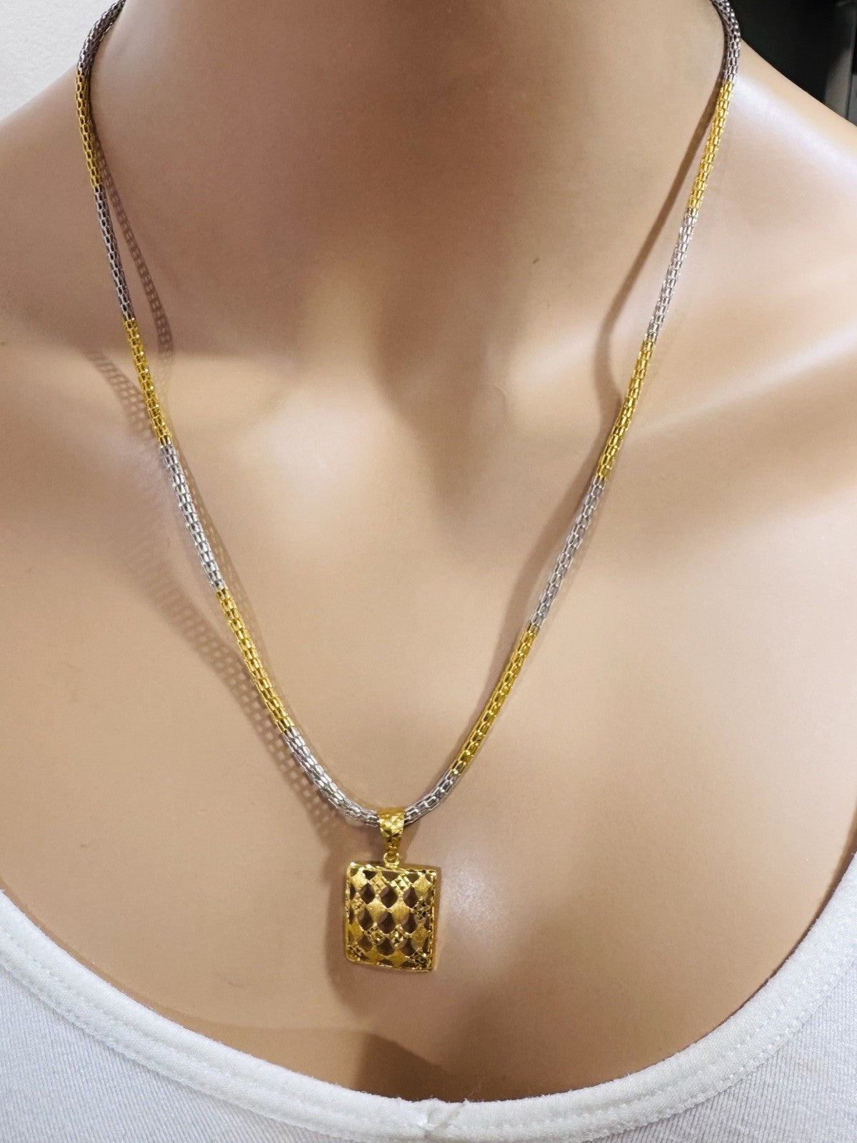 *Hello You are buying Real Beautiful Solid 22K 916 Fine Real Two tone Gold 21.5/22” Long Mens Women’s size Set Necklace 13g 3mm wide chain