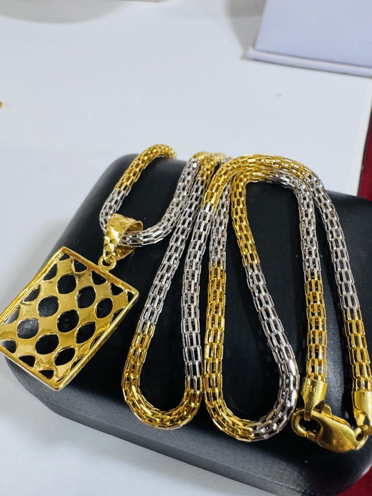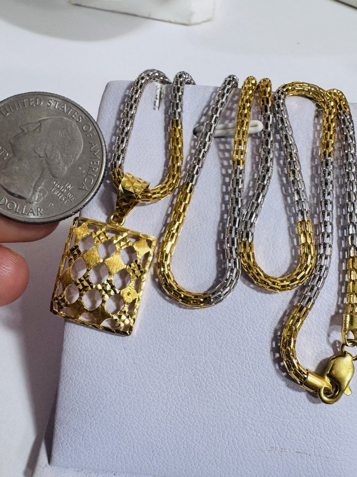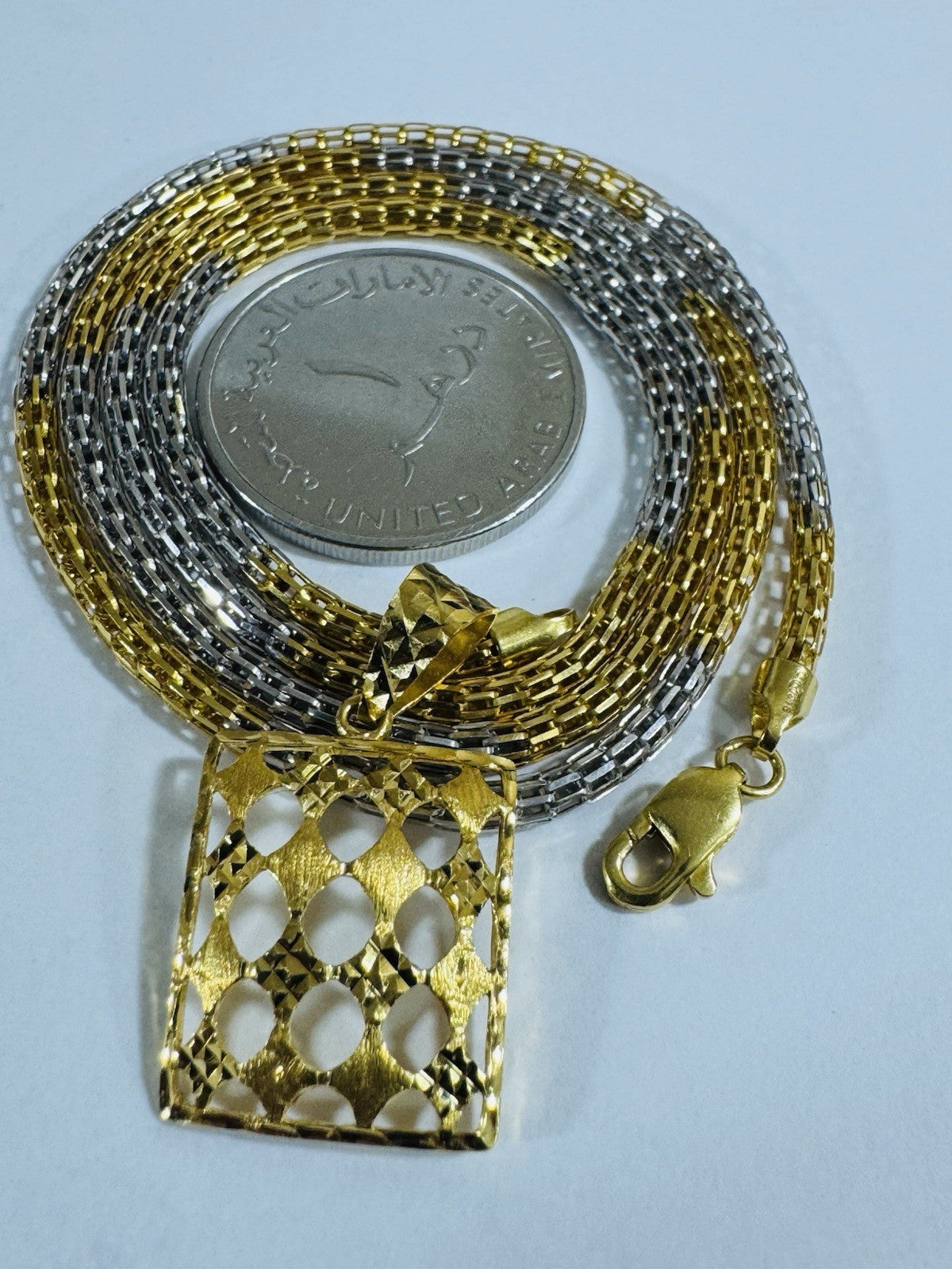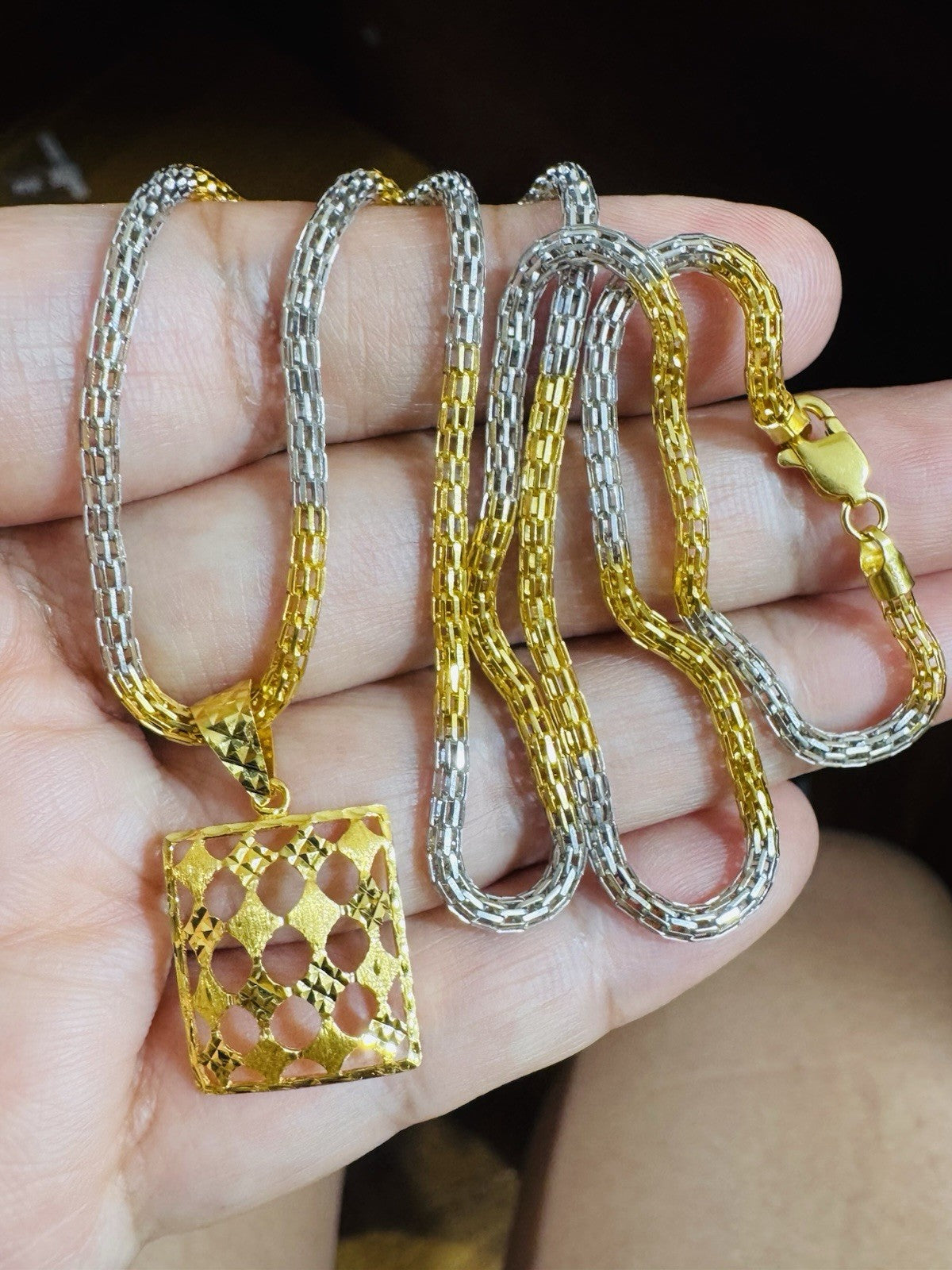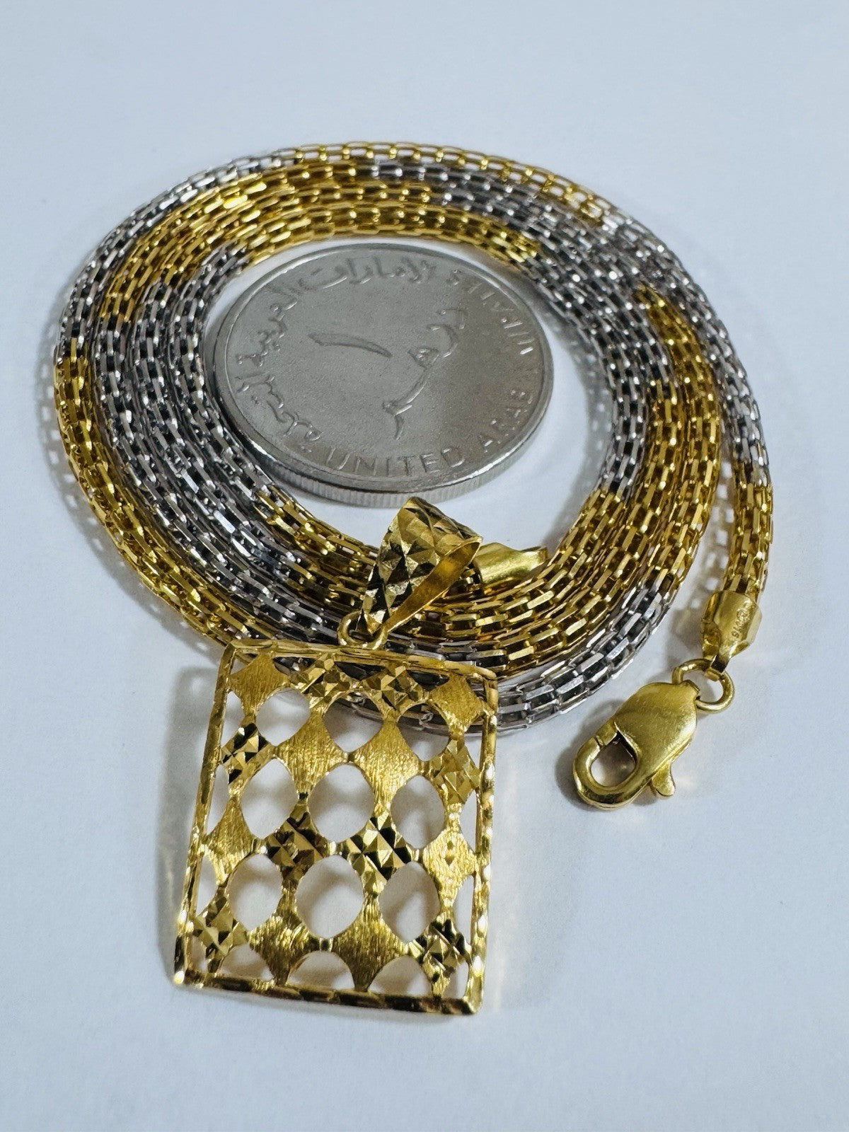 *Hello You are buying Real Beautiful Solid 22K 916 Fine Real Two tone Gold 21.5/22” Long Mens Women’s size Set Necklace 13g 3mm wide chain