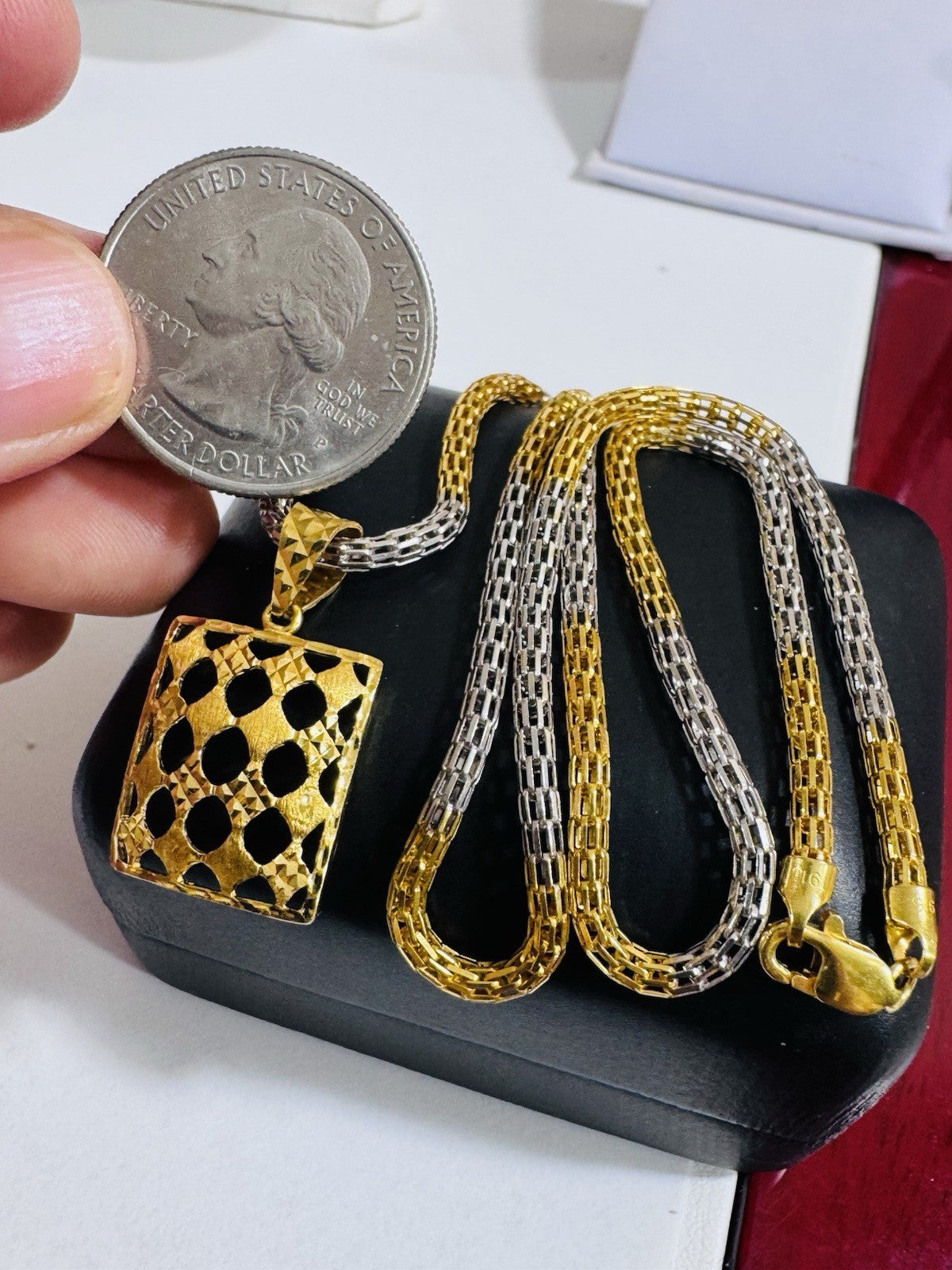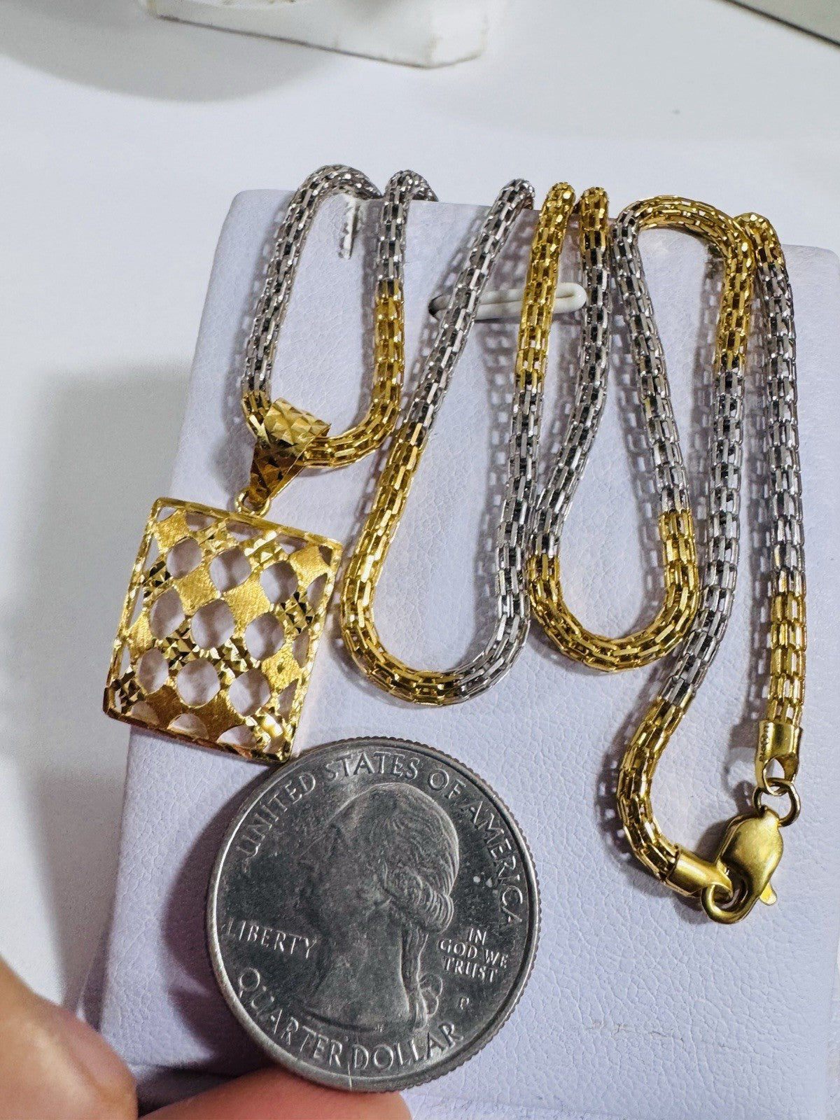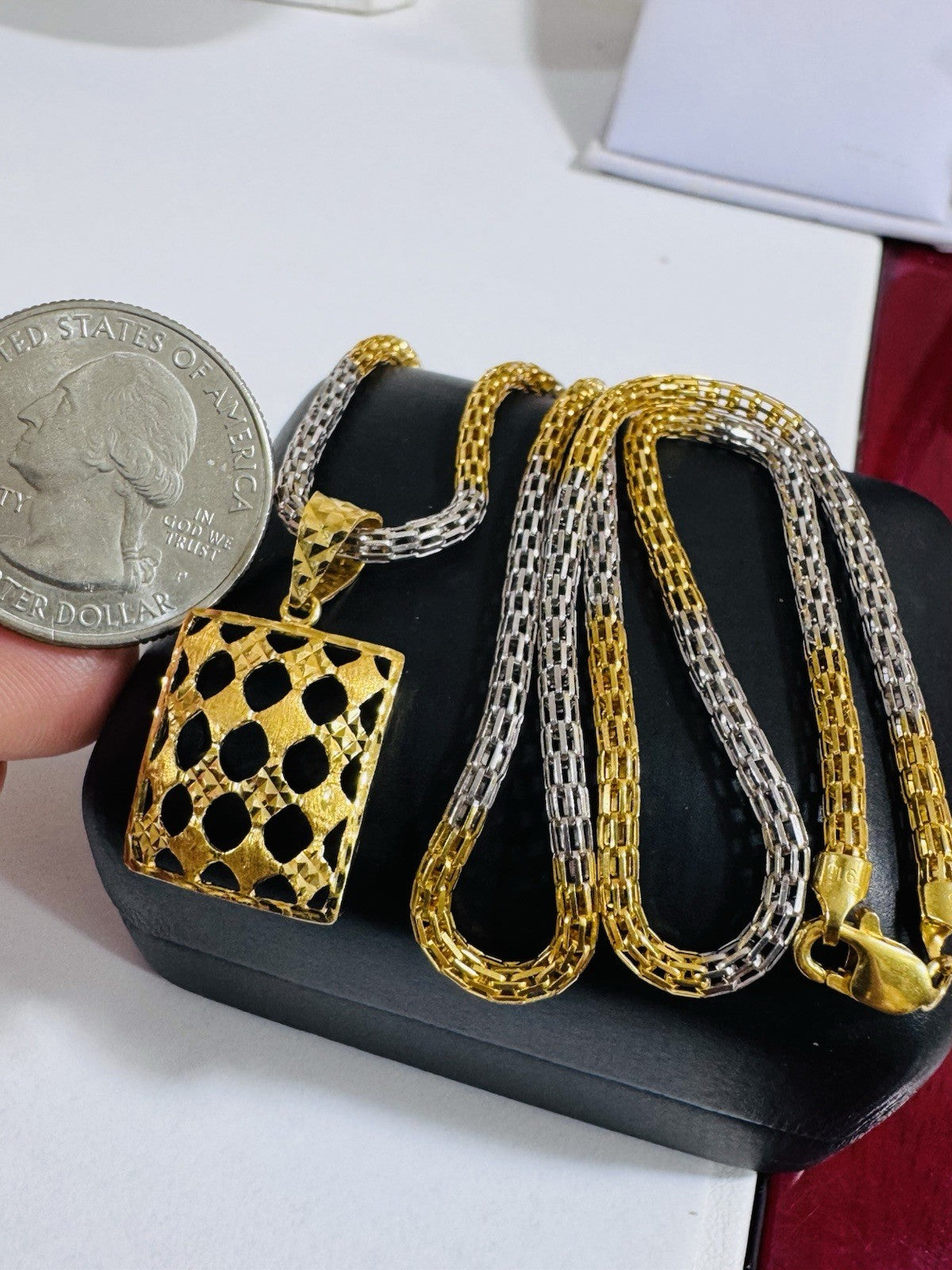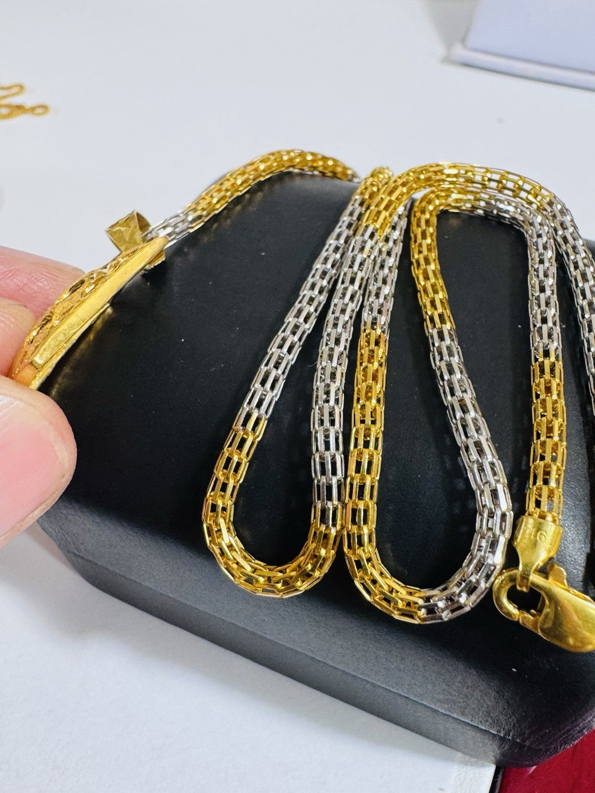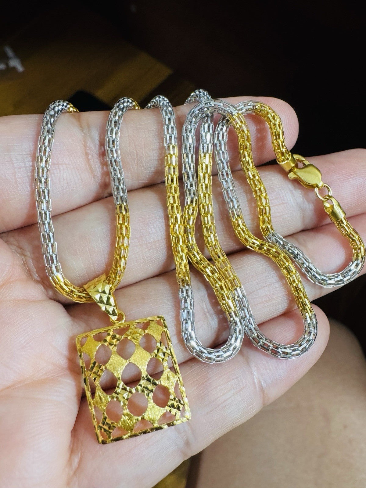 *Hello You are buying Real Beautiful Solid 22K 916 Fine Real Two tone Gold 21.5/22” Long Mens Women’s size Set Necklace 13g 3mm wide chain
