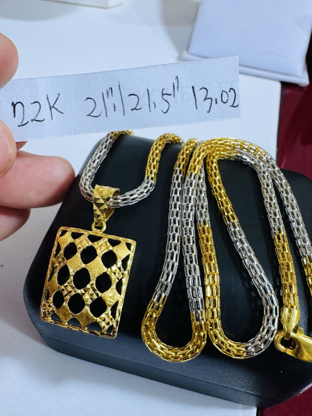 22K 916 Fine Real Gold 21.5”/22” long Rectangle Set Necklace 13g 3.mm