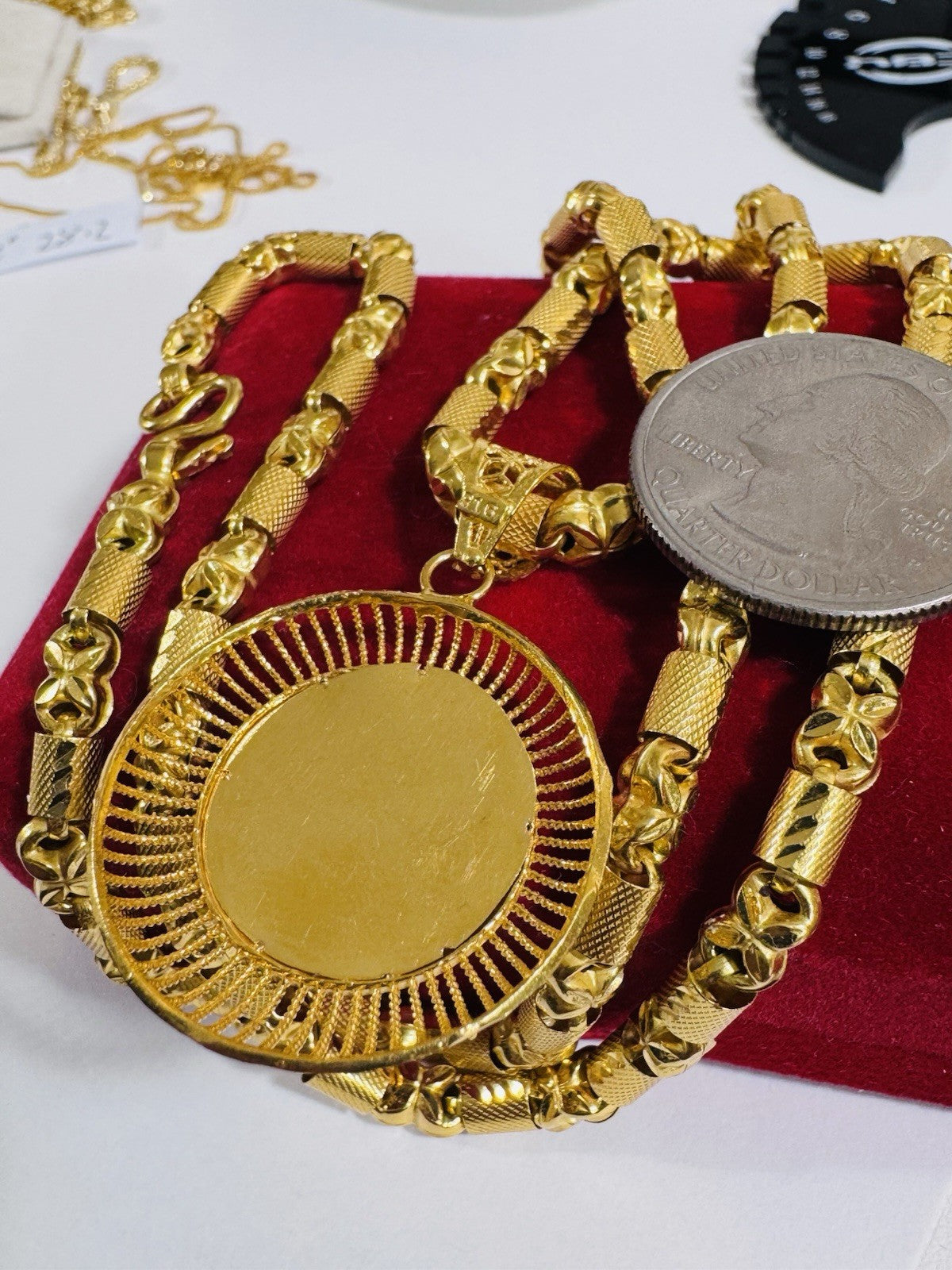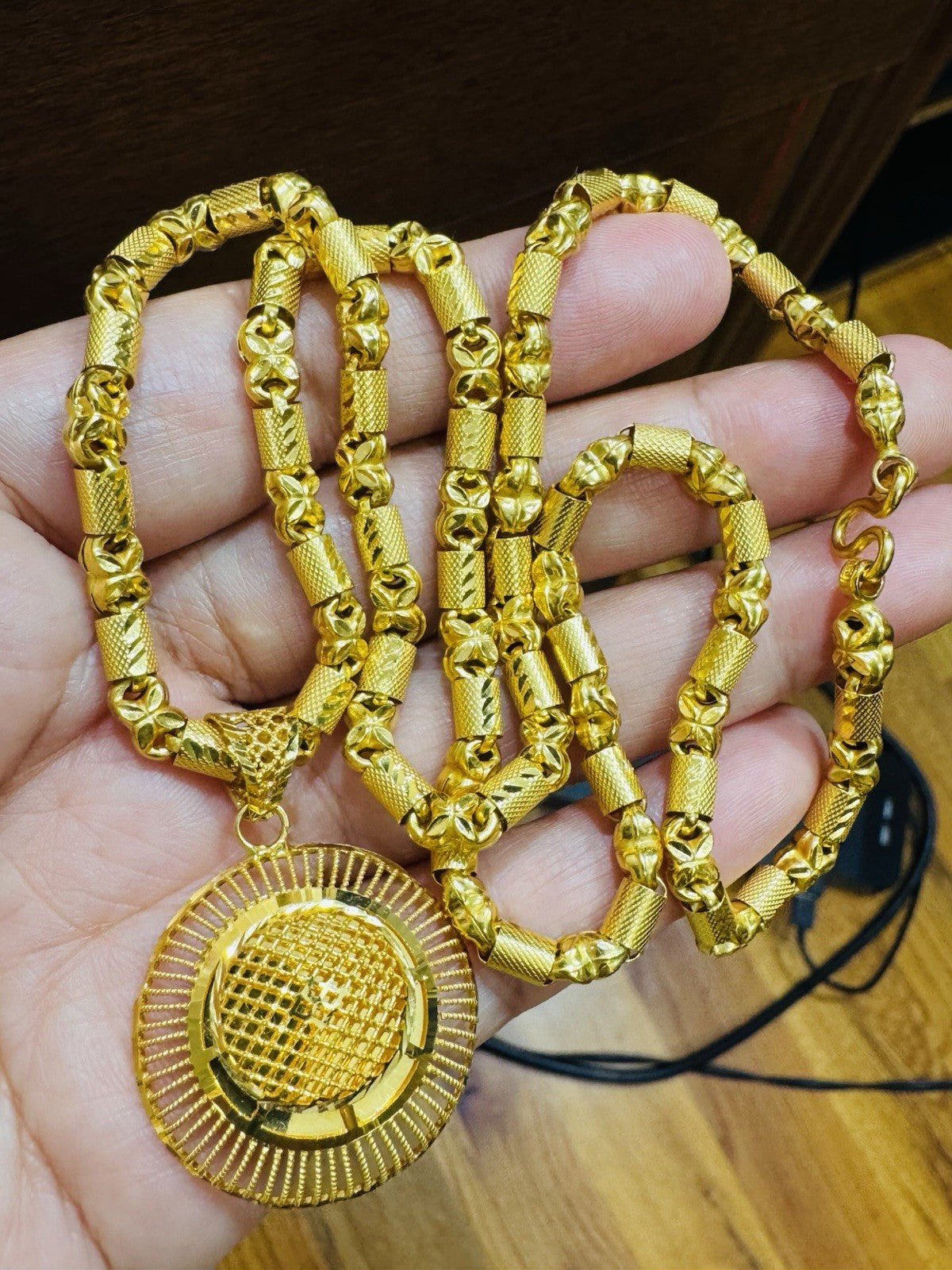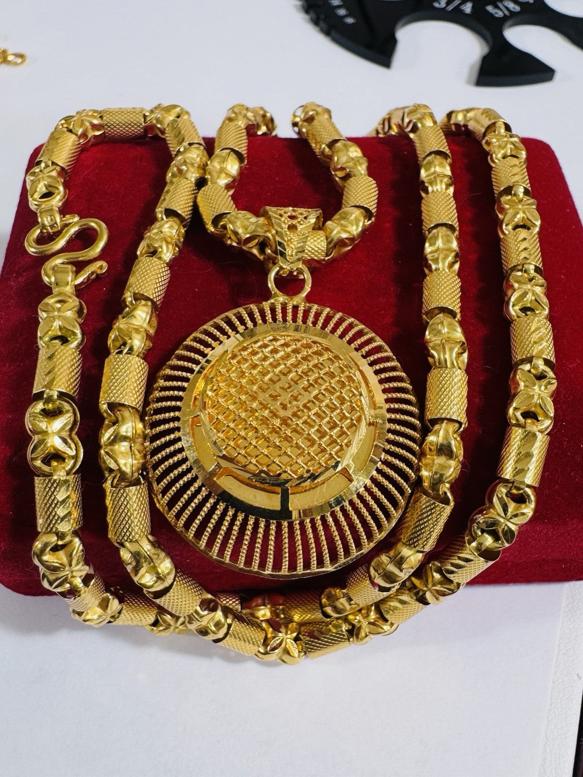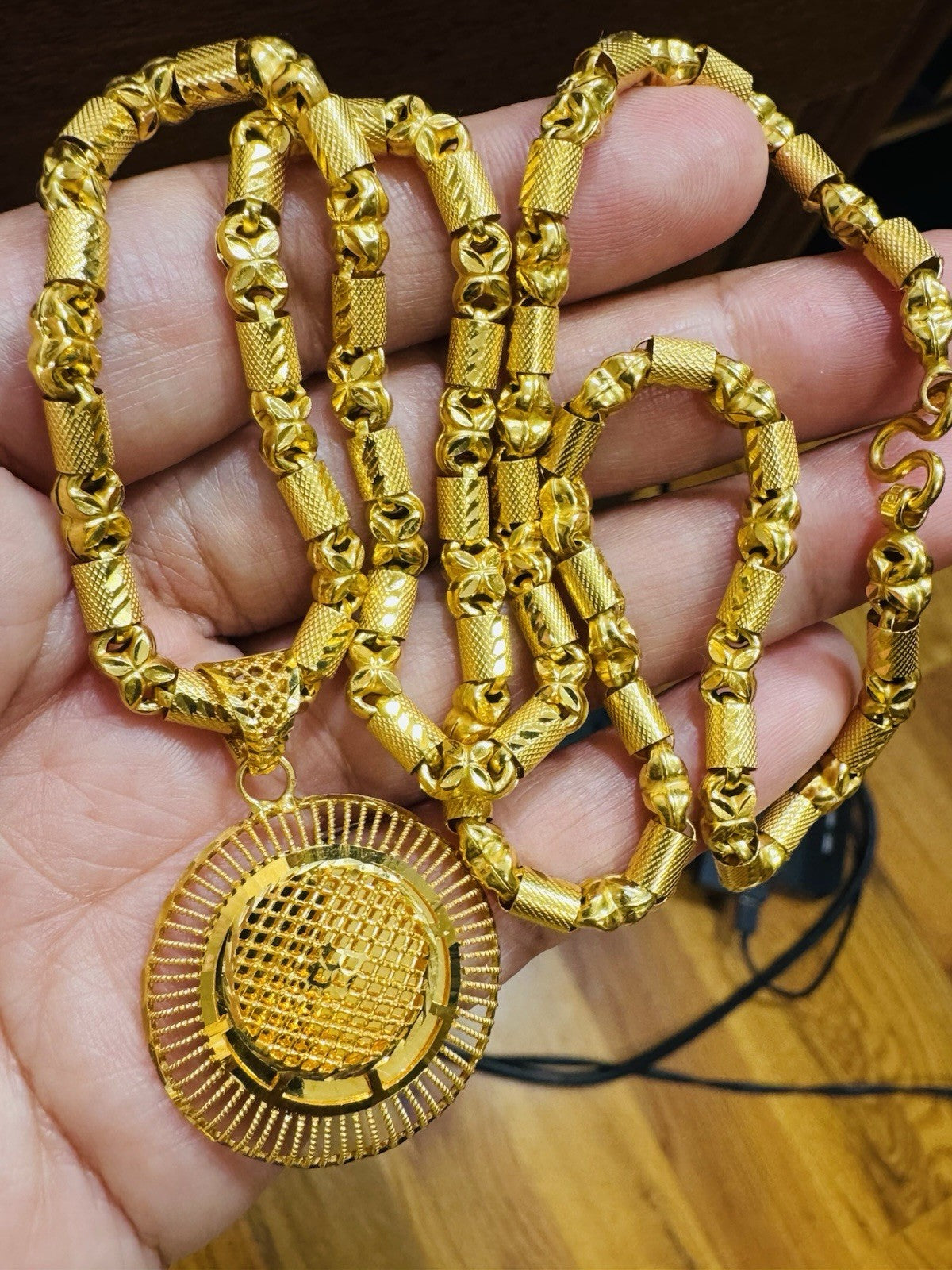 *100% 22C gold "916” equivalent, Mark stamp and tested Saudi gold, Good weight thin size due to Solid type gold inside strong enough to hold.