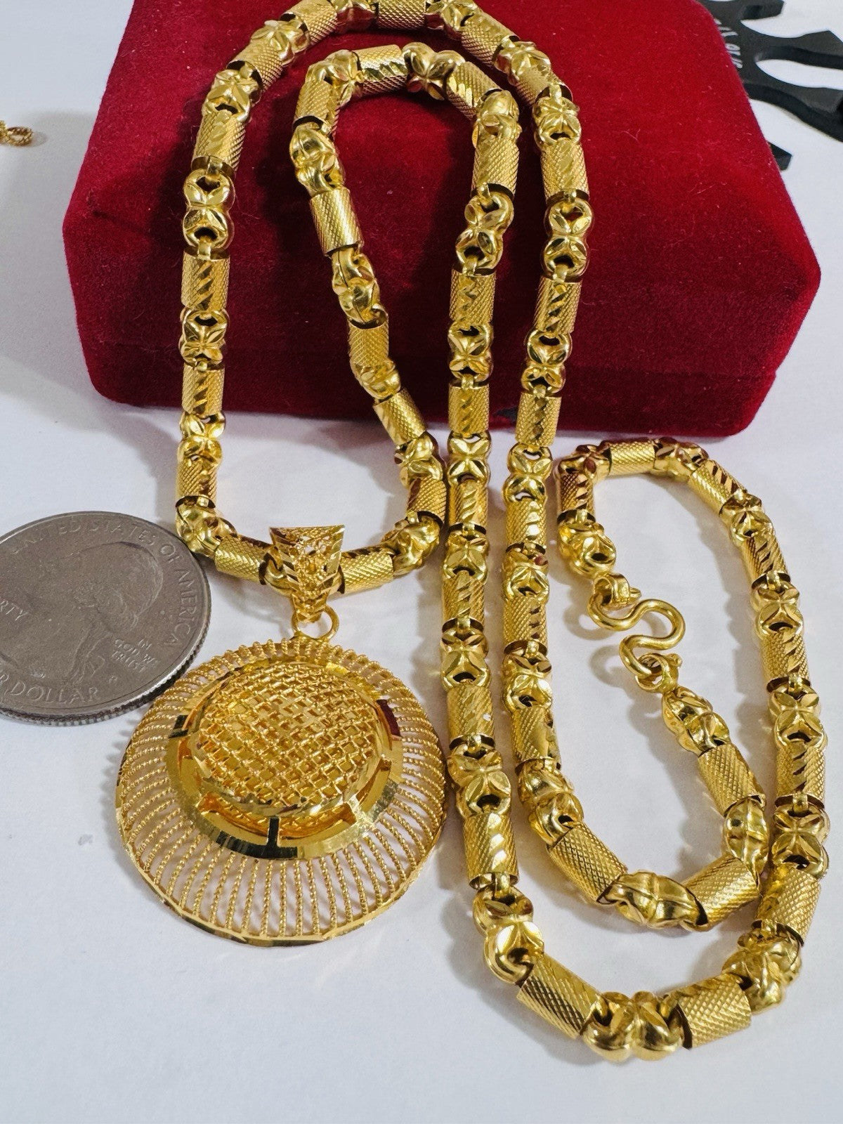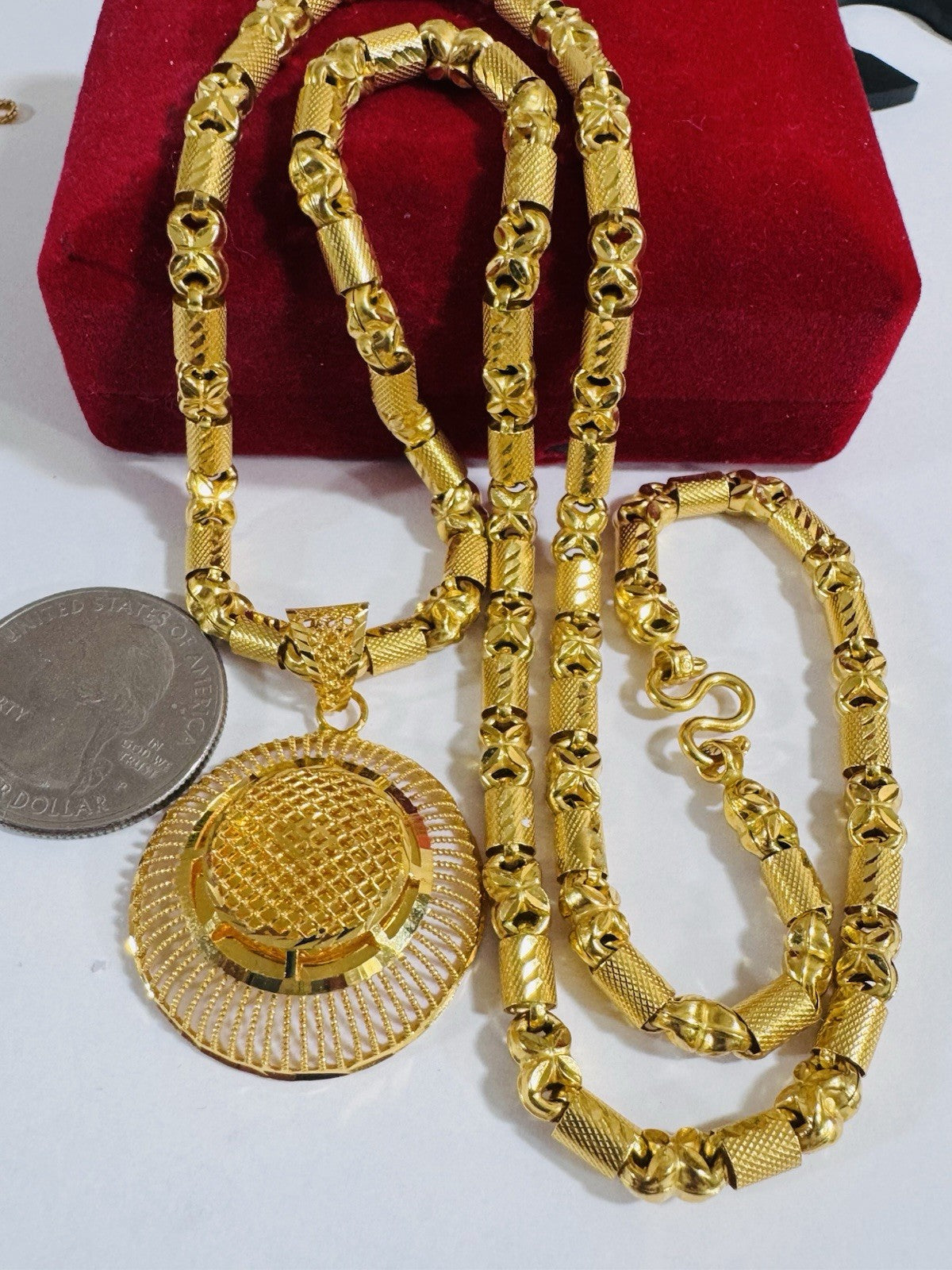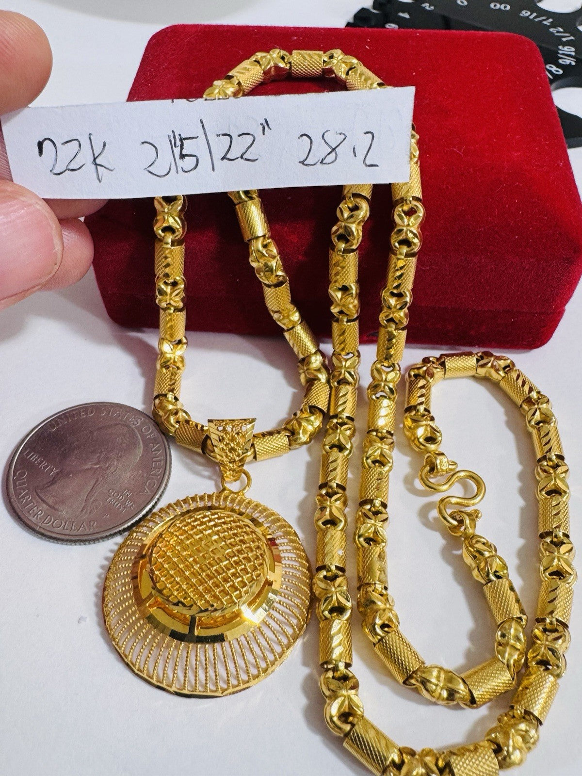 *Hello You are buying Real Beautiful Solid 22K 916 Fine Real Two tone Gold 21.5/22” Long Women’s size Set Necklace 28.2g 5mm wide chain