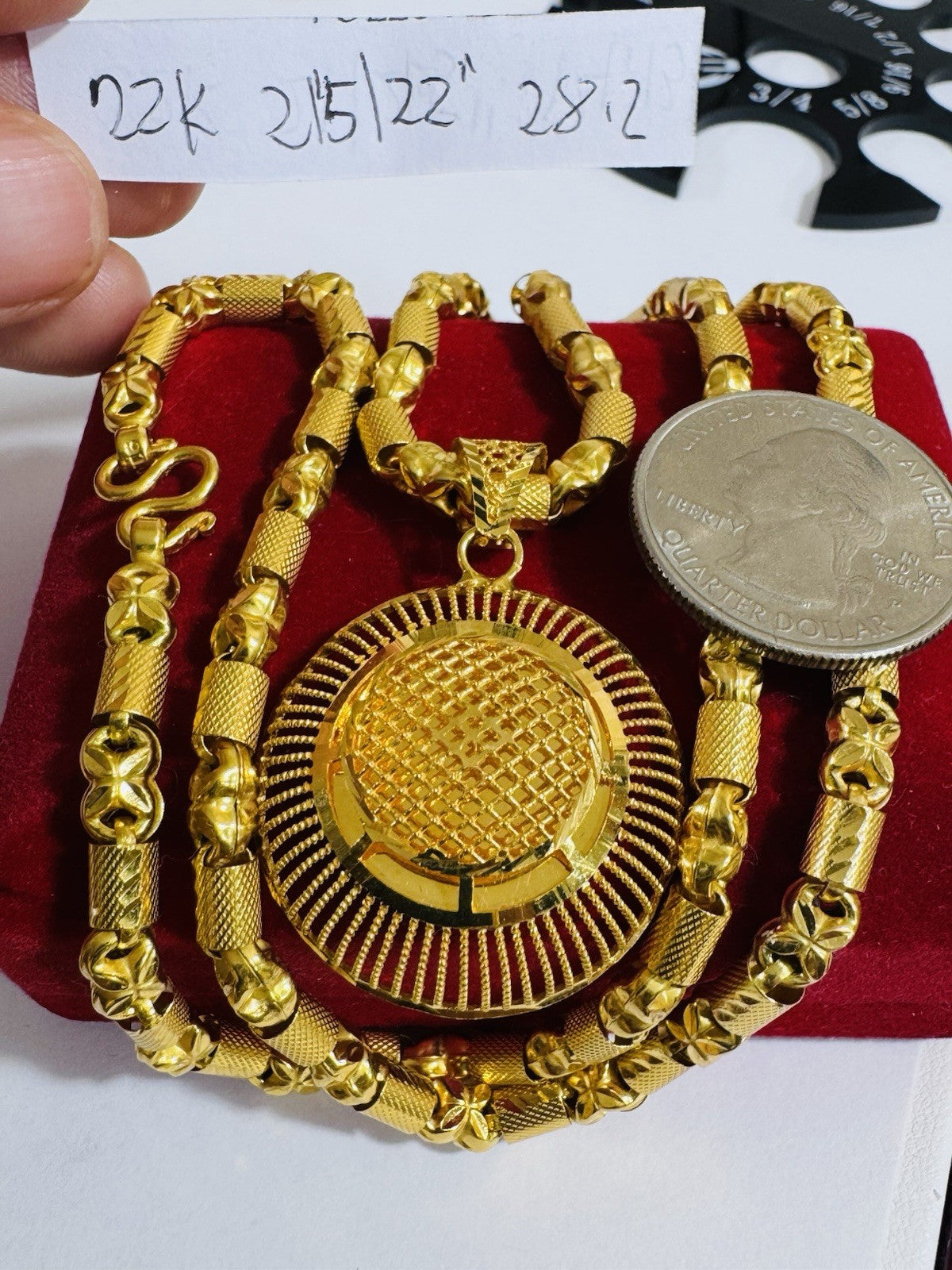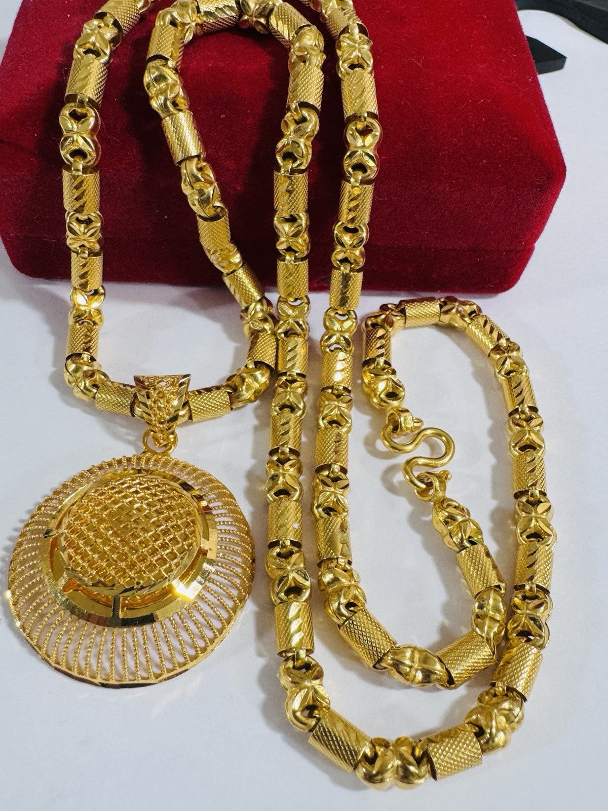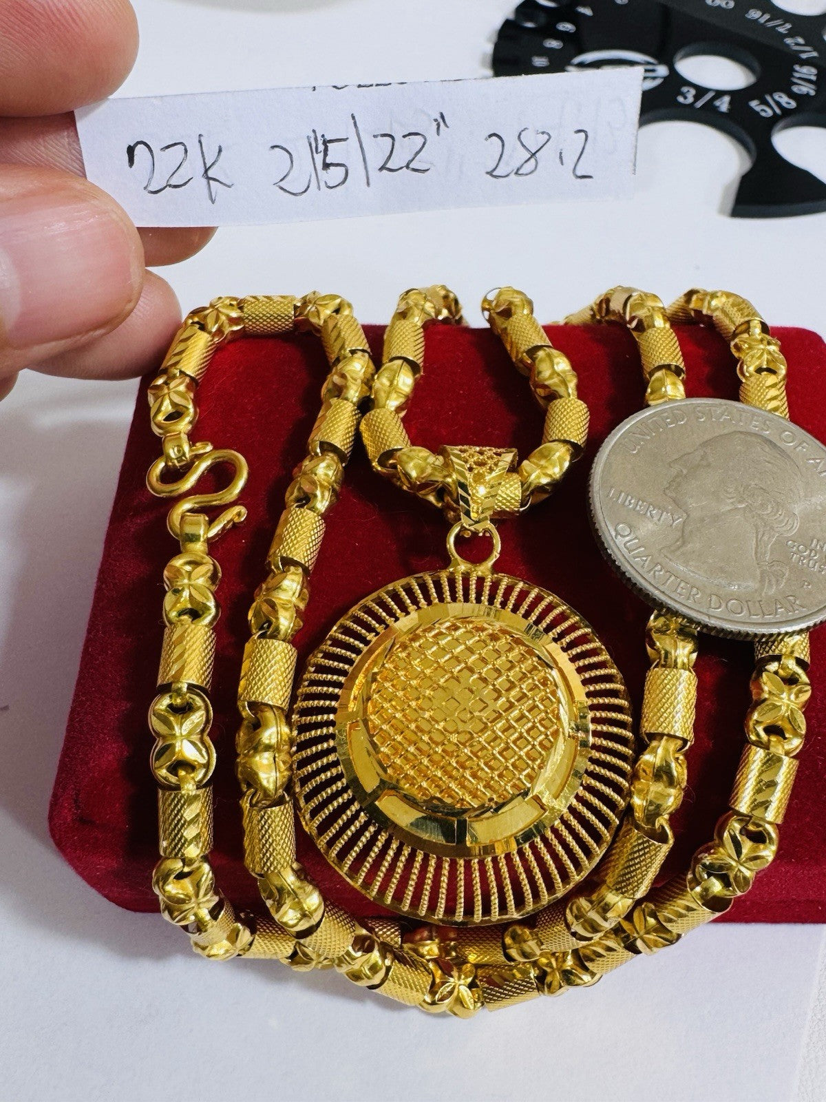 *Hello You are buying Real Beautiful Solid 22K 916 Fine Real Two tone Gold 21.5/22” Long Women’s size Set Necklace 28.2g 5mm wide chain