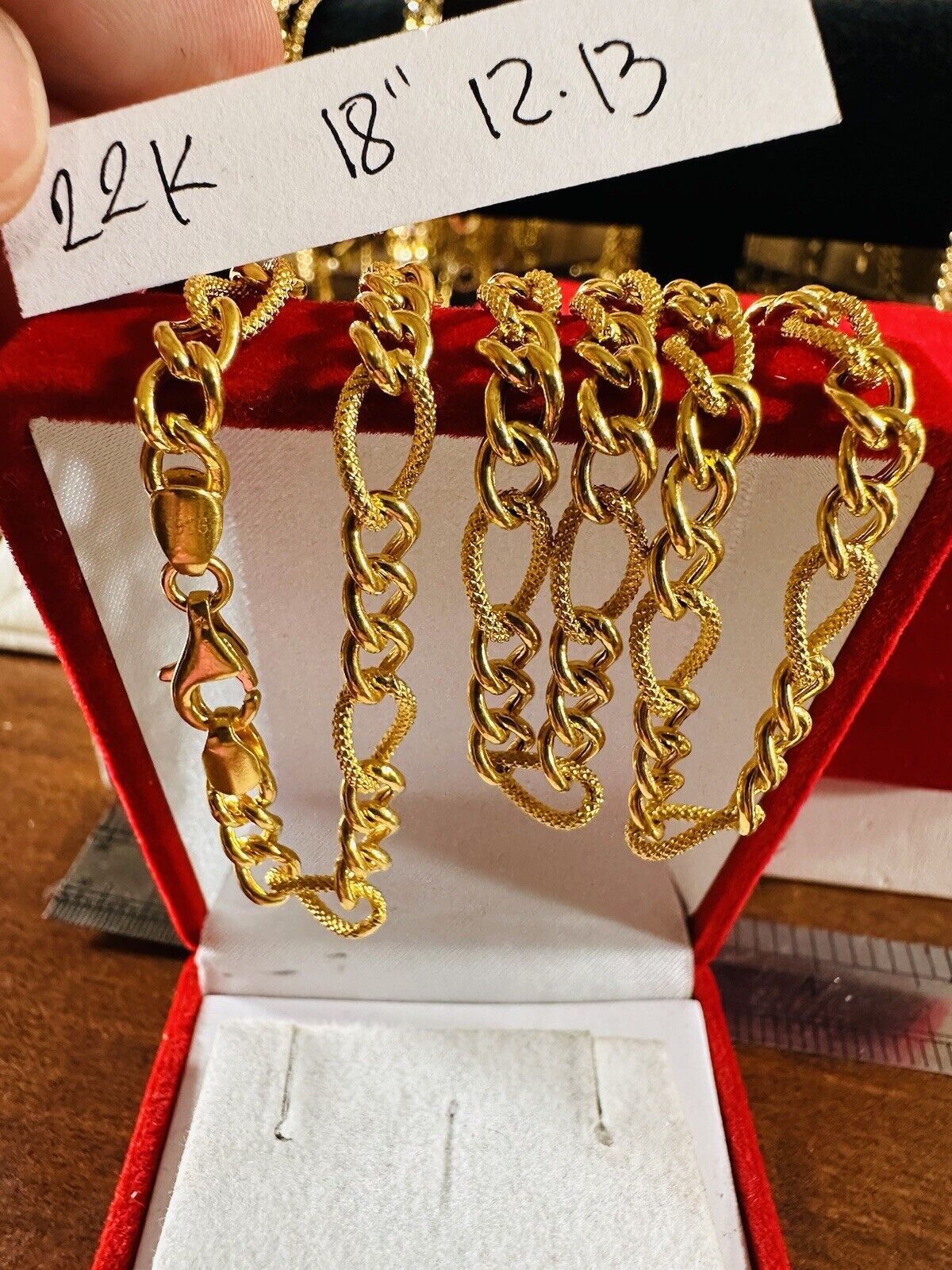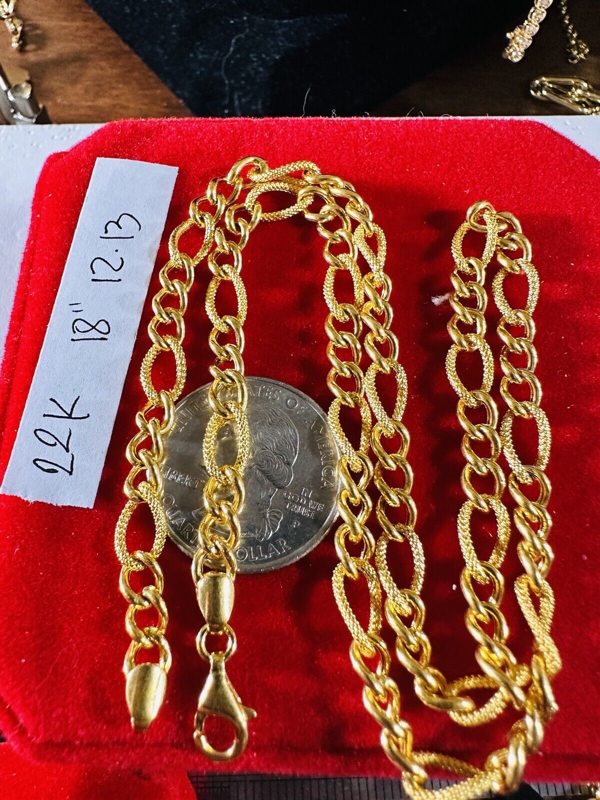 Solid 22K 916 Fine Yellow Real Gold 18” Long Women’s size chain Necklace 12.1g 5mm wide chain