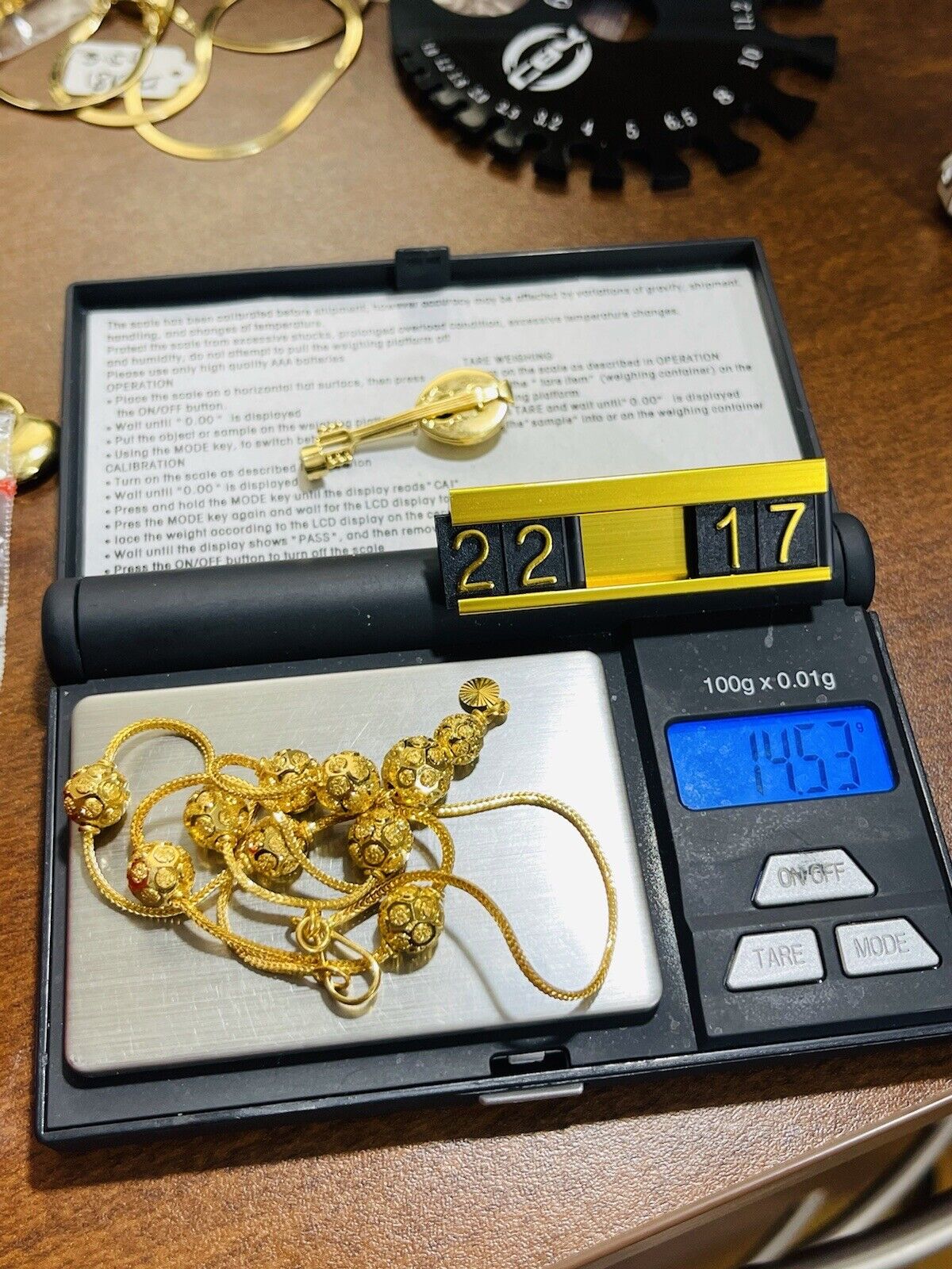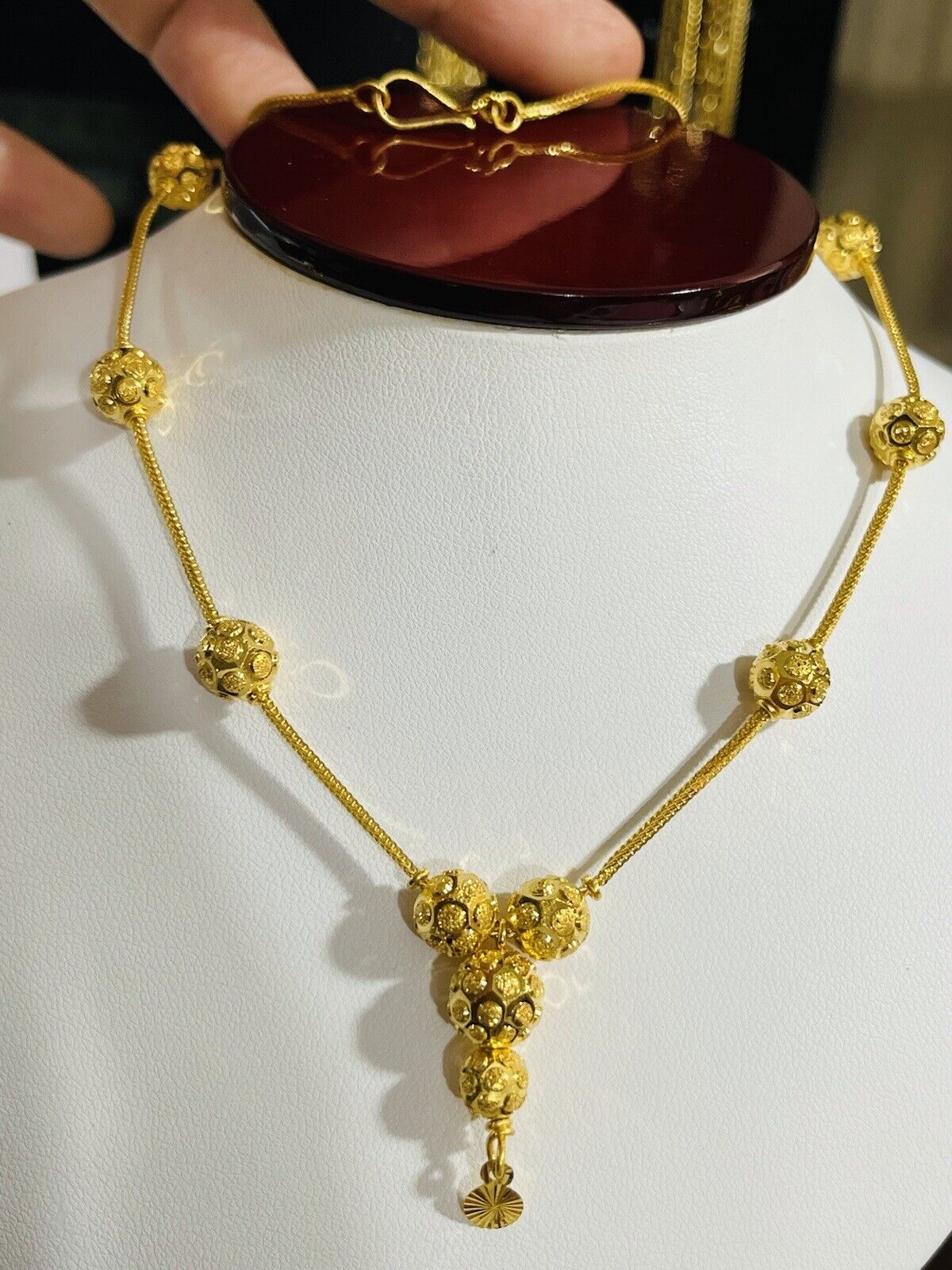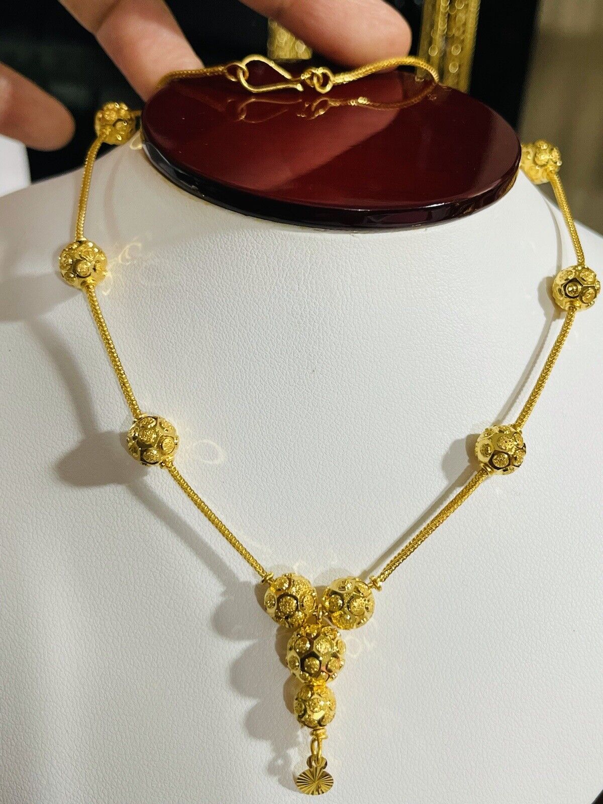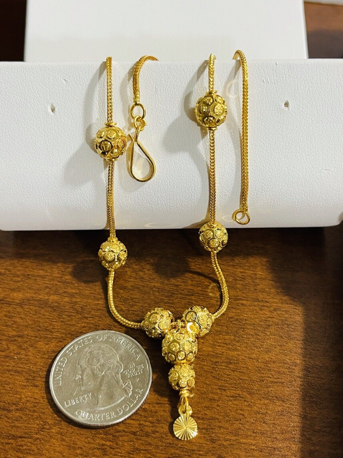 *Hello You are buying Real Brand New 22K 916 Fine Yellow Real Gold Women’s Ball Stud Necklace 17- 18” long chain 6.5 & 1.6mm 14.5g