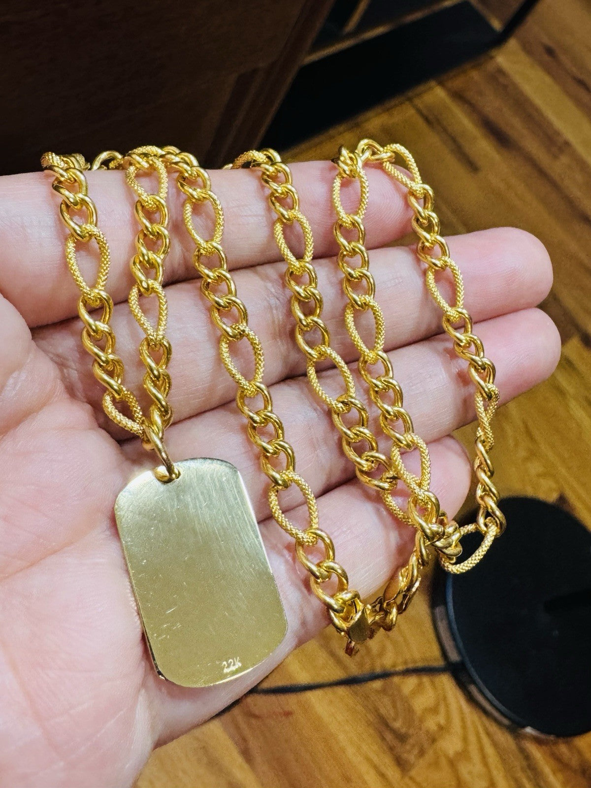 Solid 22K 916 Fine Yellow Real Gold 18” Long Women’s size Set Necklace 16.5g 6mm wide chain.