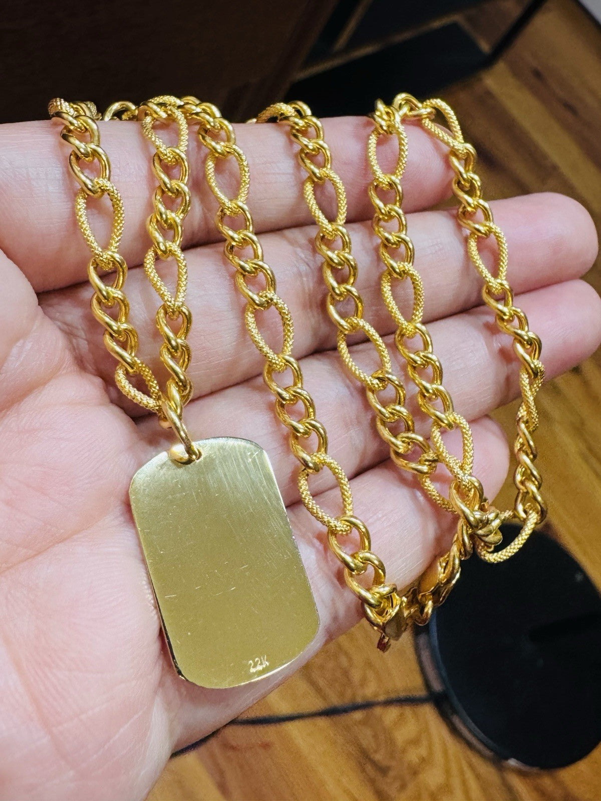 22K 916 Real Dubai Saudi Yellow Gold 18” Long Rectangle Necklace 16.5g 6mm