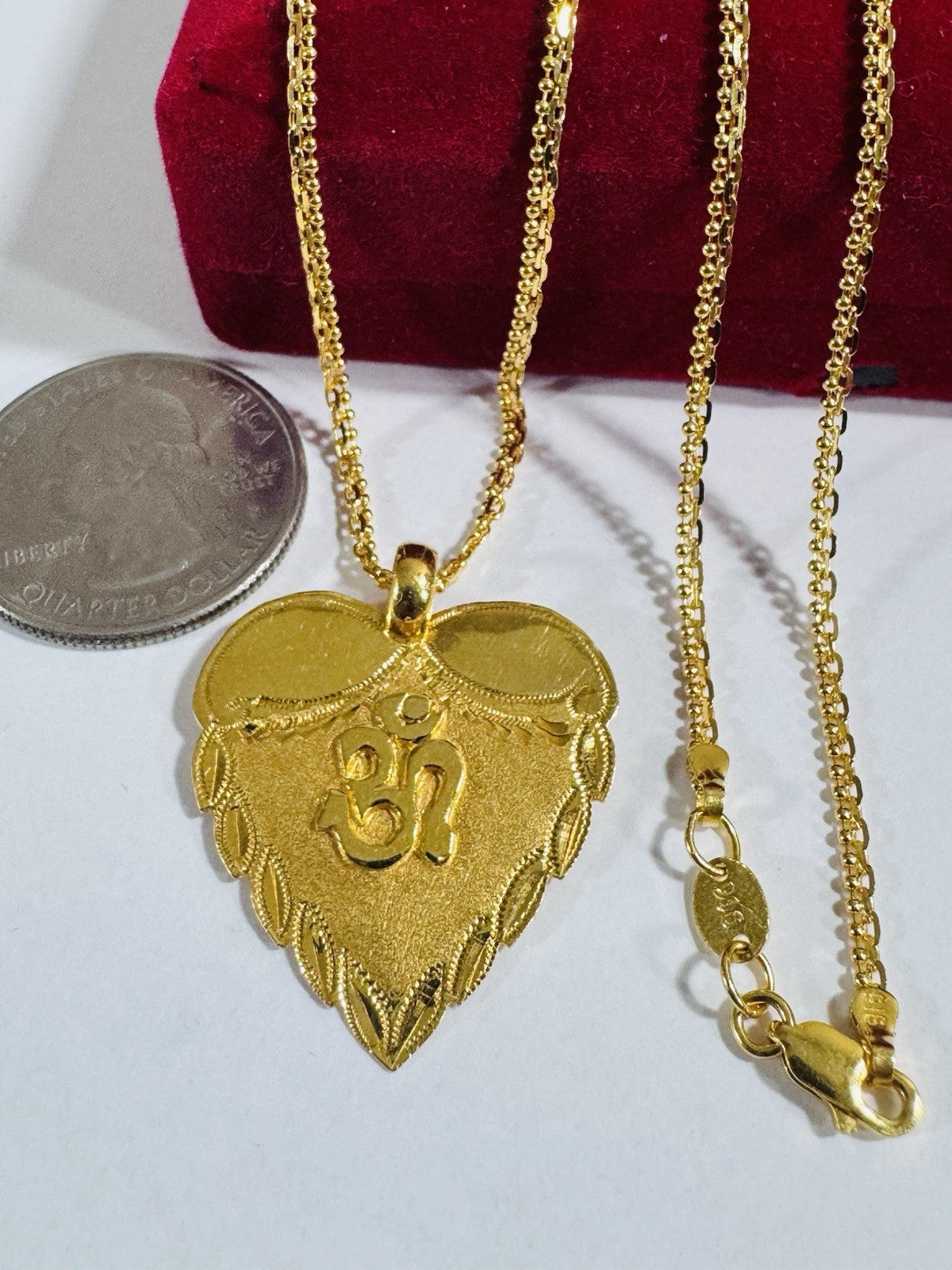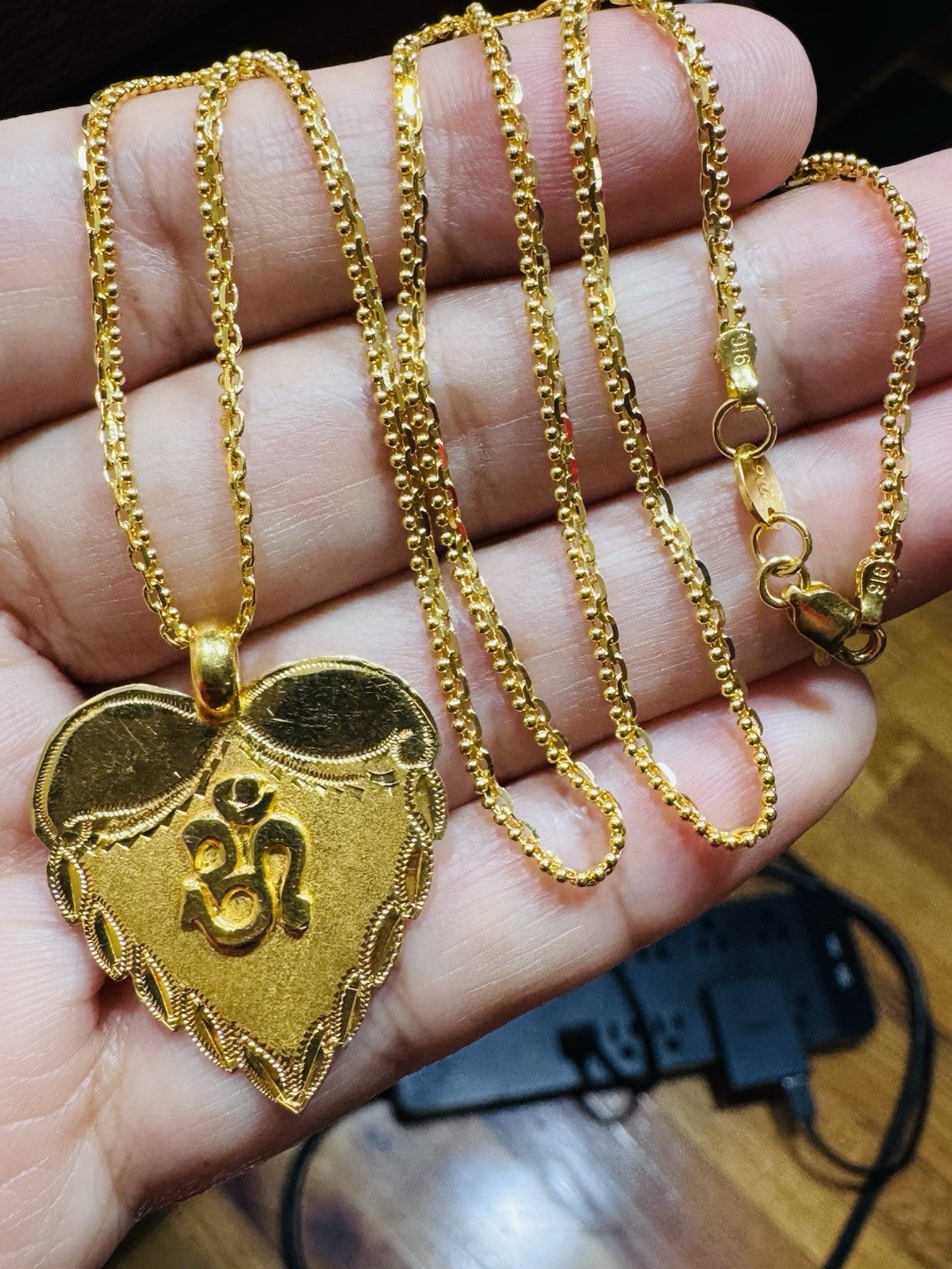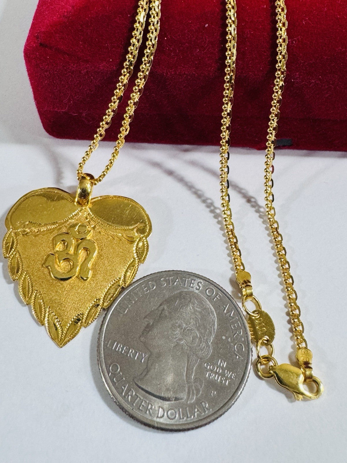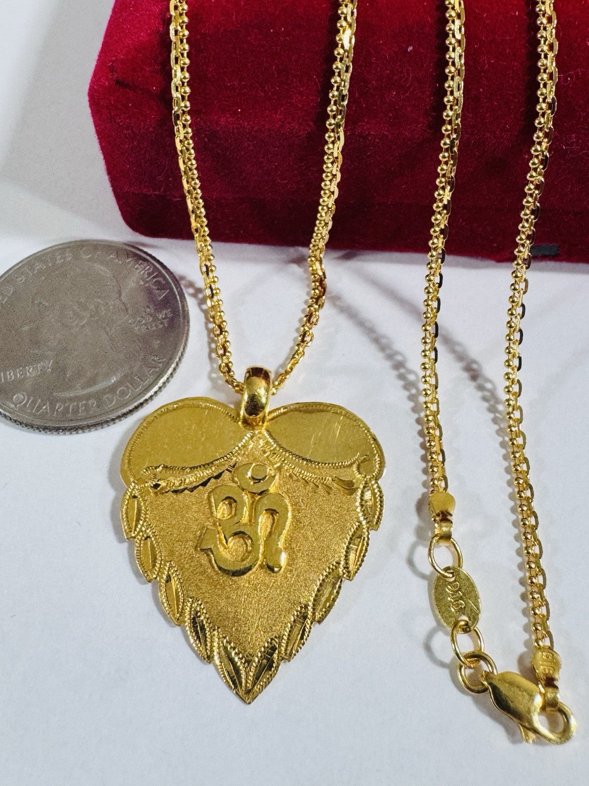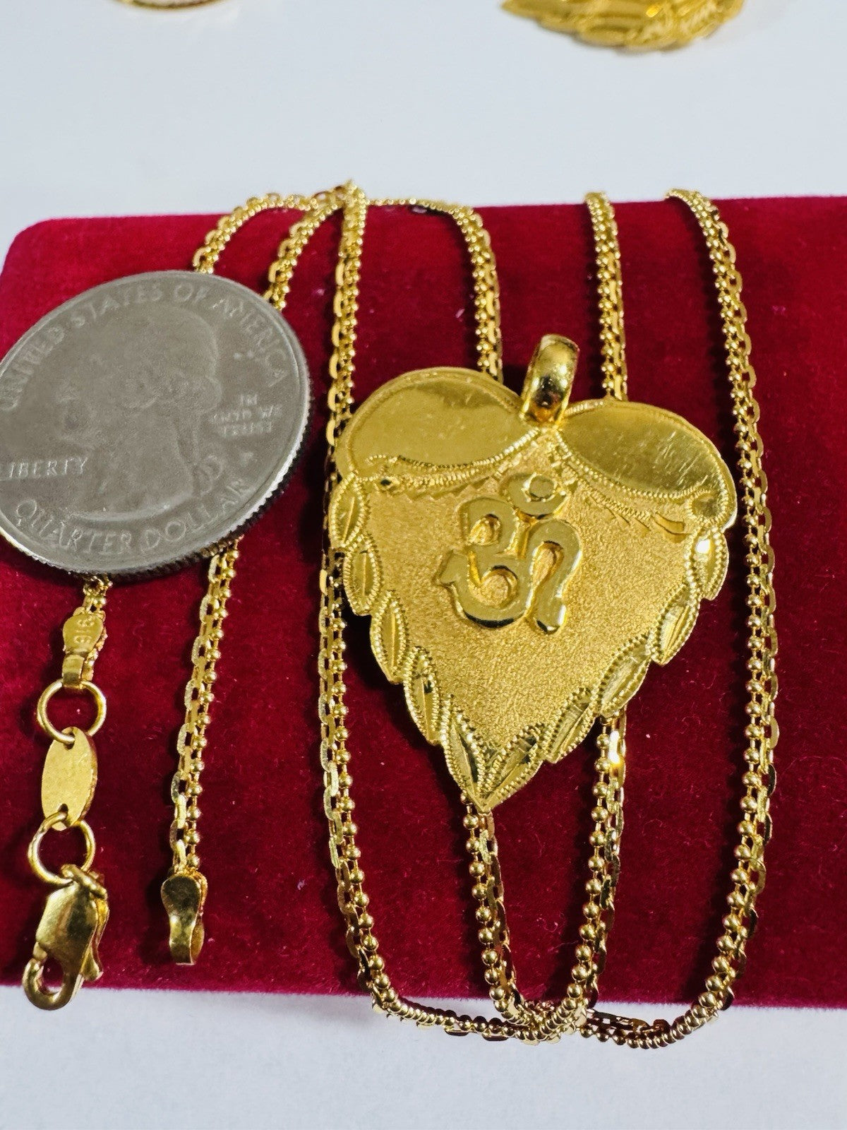 22K 916 Real Dubai Saudi Yellow Gold 20” Long Heart Sikh Necklace 9g 2.2mm