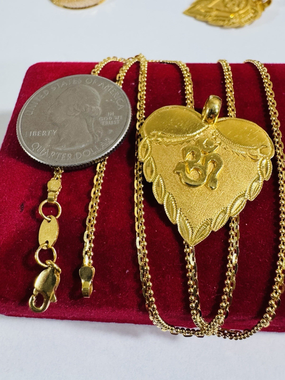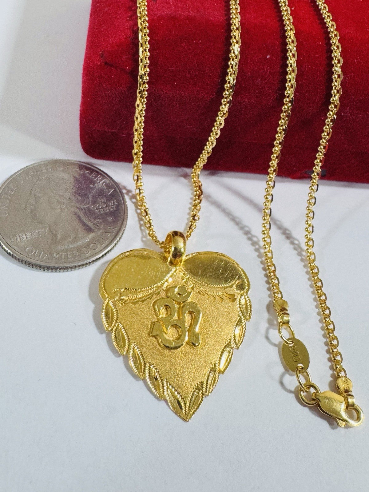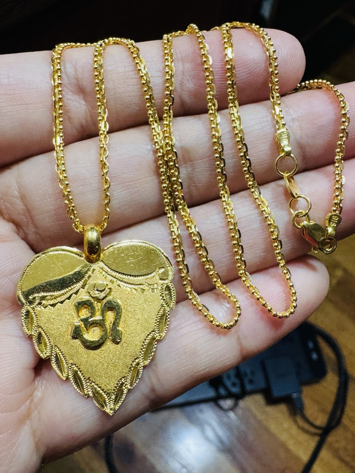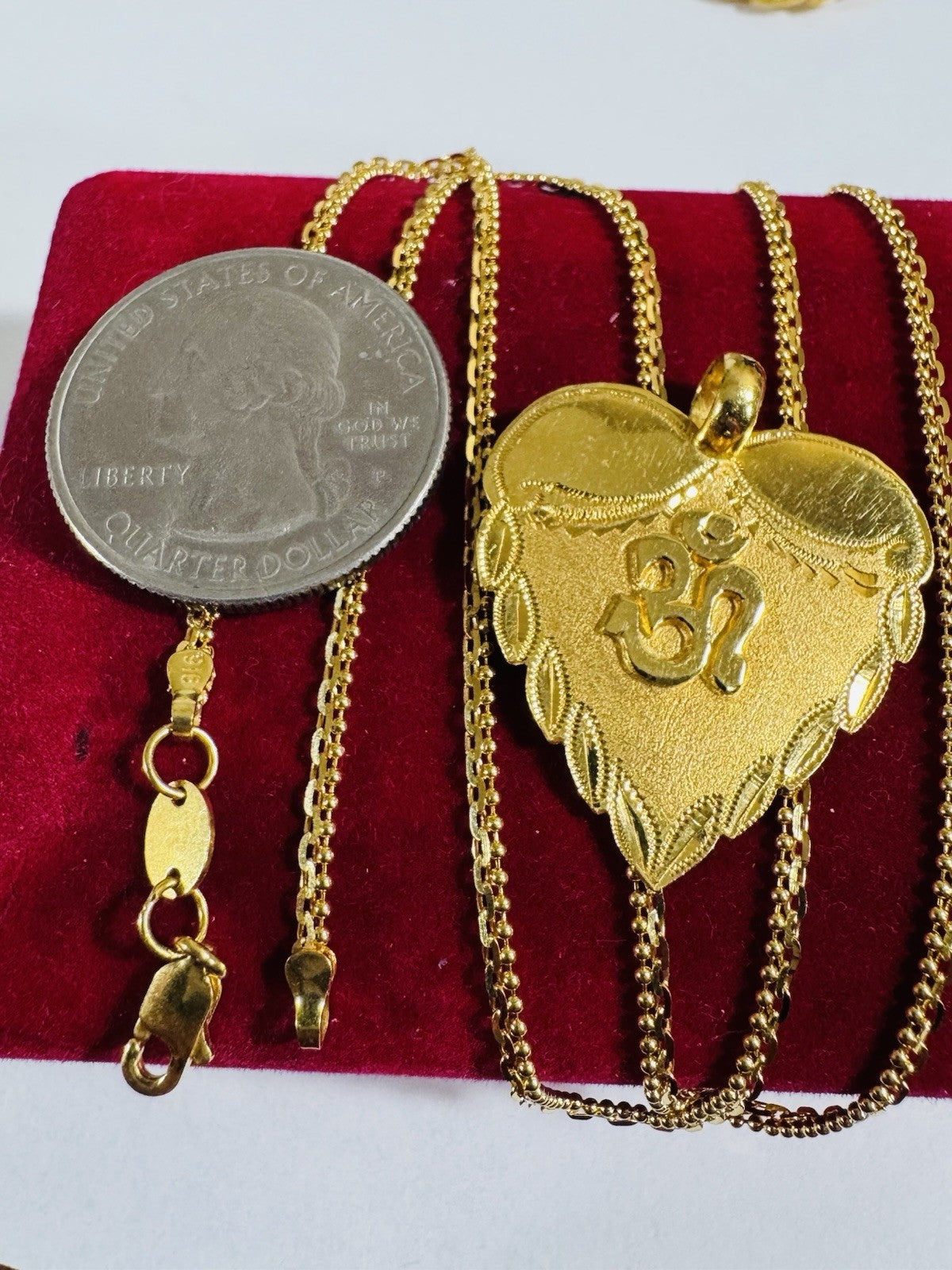 22K 916 Real Dubai Saudi Yellow Gold 20” Long Heart Sikh Necklace 9g 2.2mm