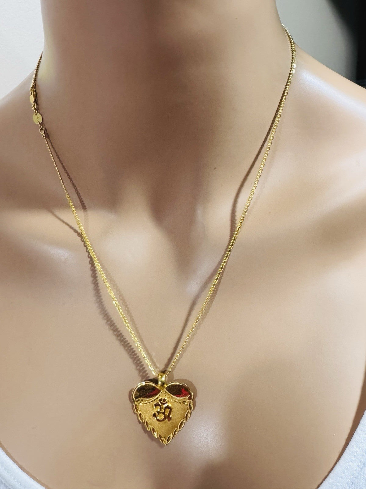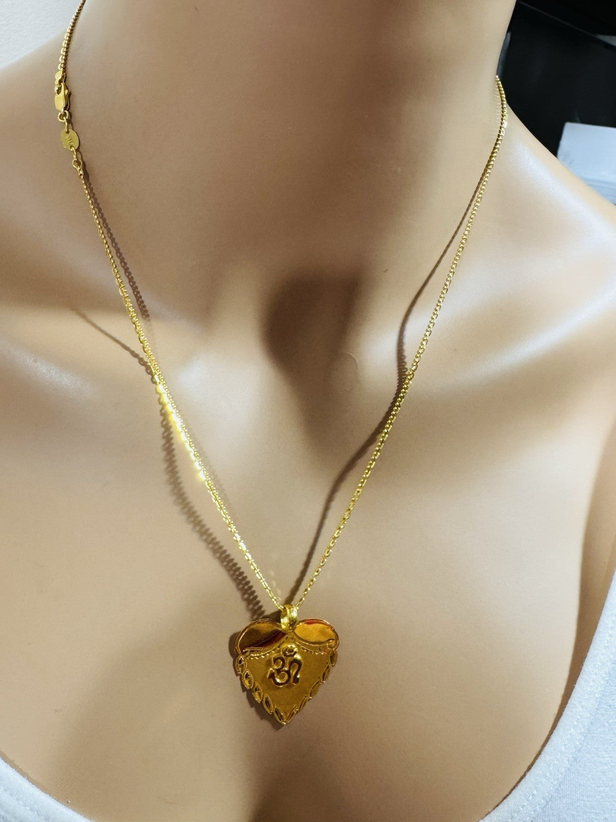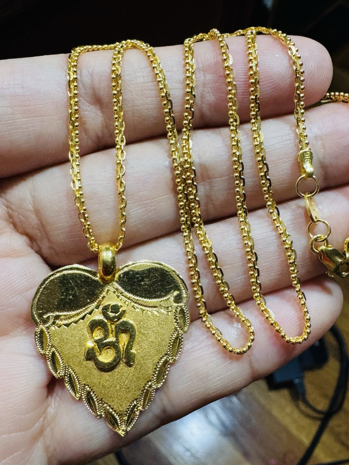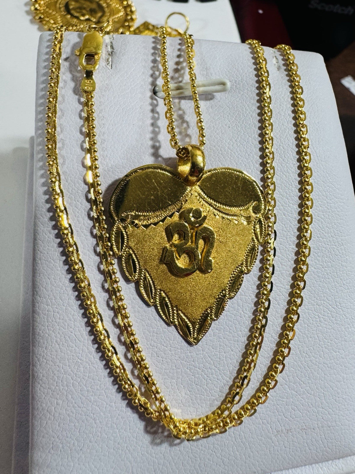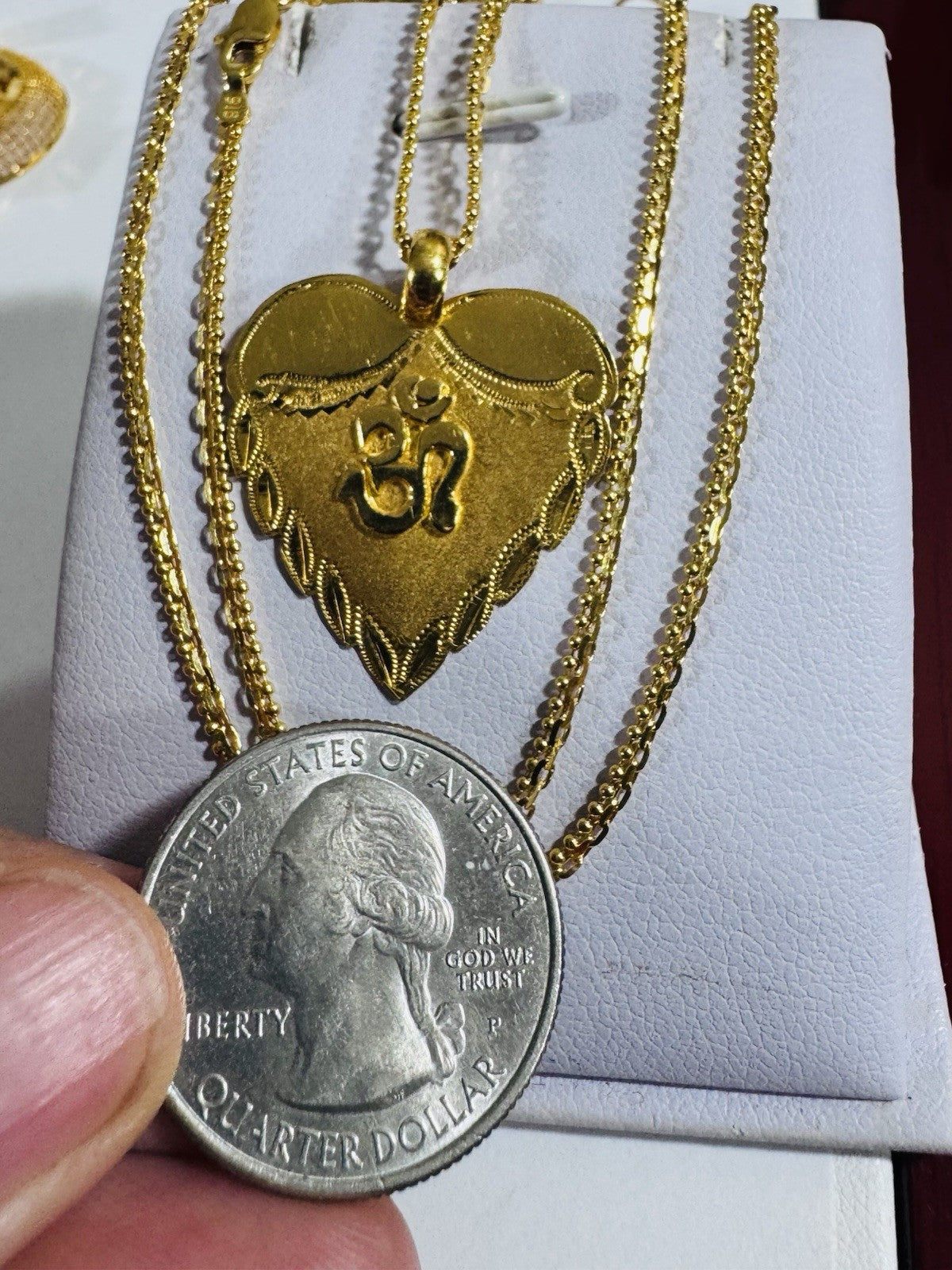 22K 916 Real Dubai Saudi Yellow Gold 20” Long Heart Sikh Necklace 9g 2.2mm