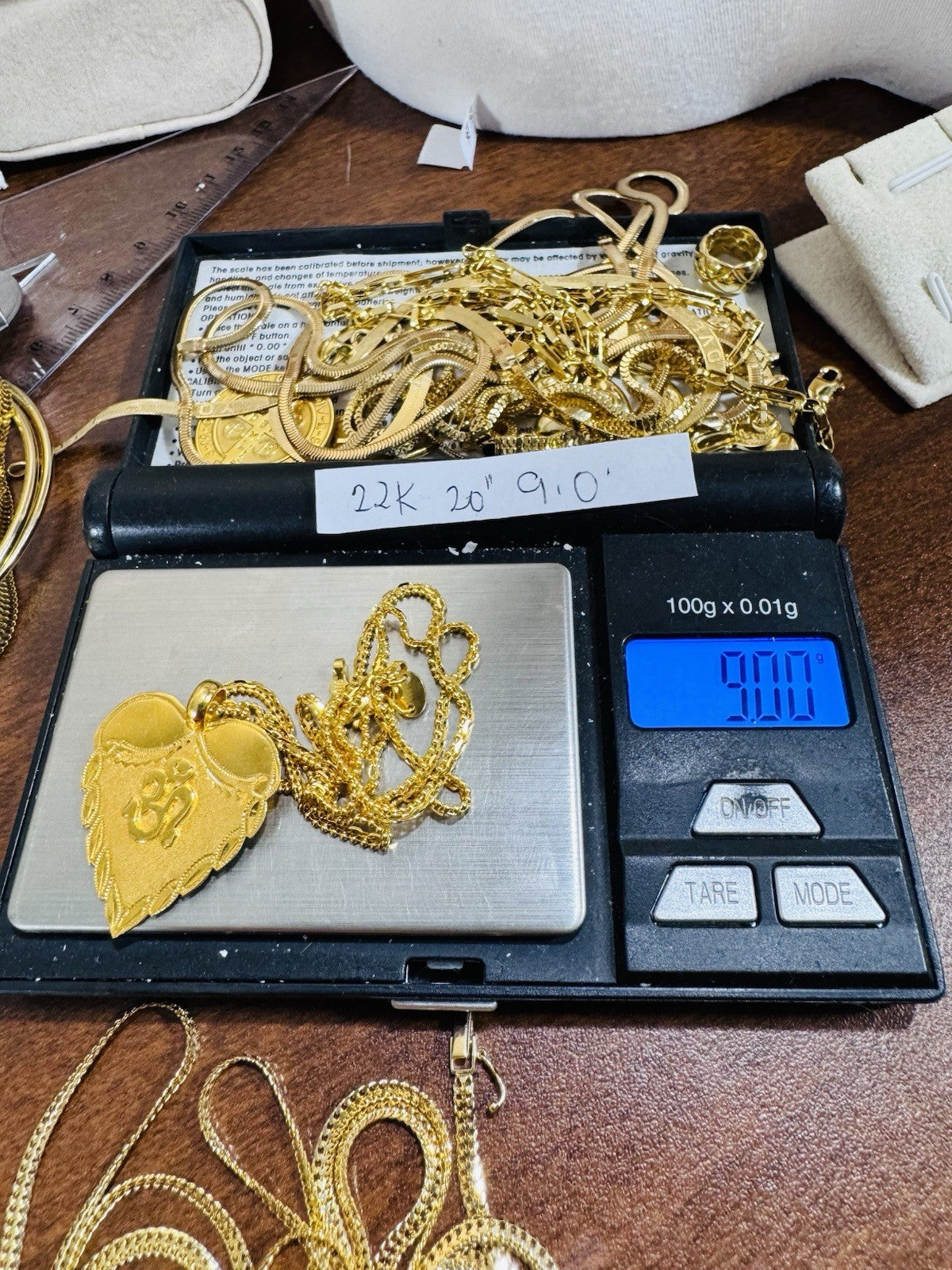 *100% 22C gold "916” equivalent, Mark stamp and tested Saudi gold, Light weight chain yet strong enough to hold.