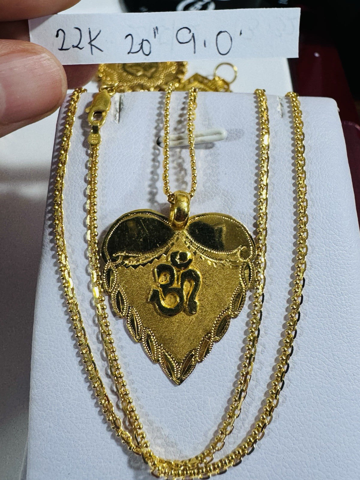 Solid 22K 916 Fine Yellow Real Gold 20” Long Women’s size Set Necklace 9.0g 2.2mm wide chain.