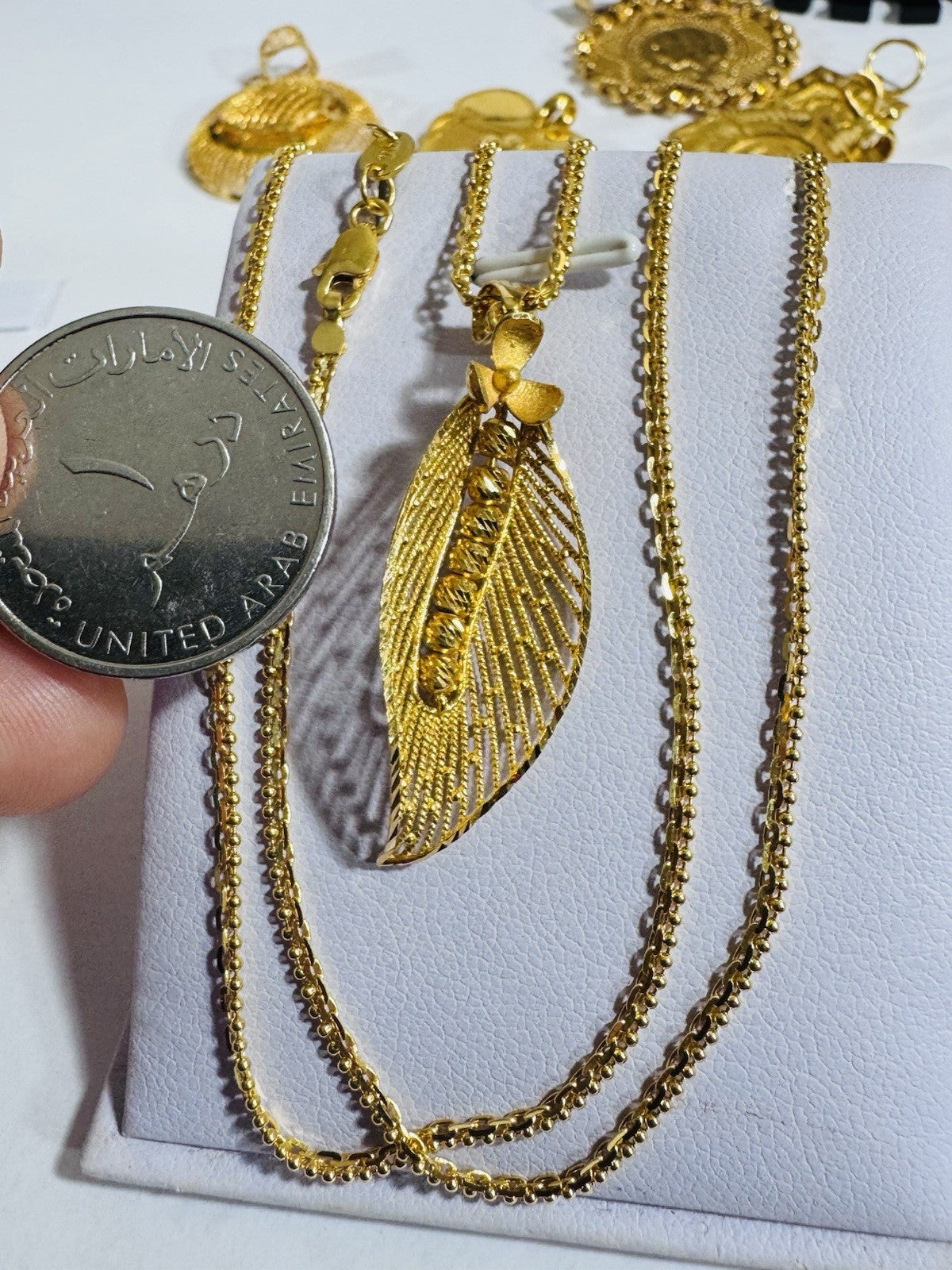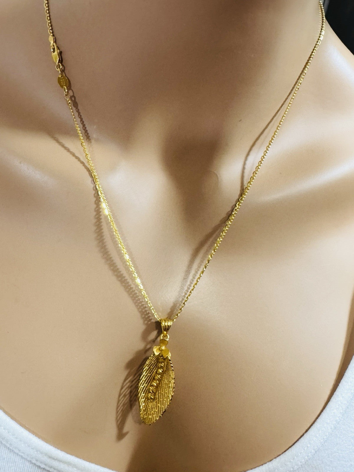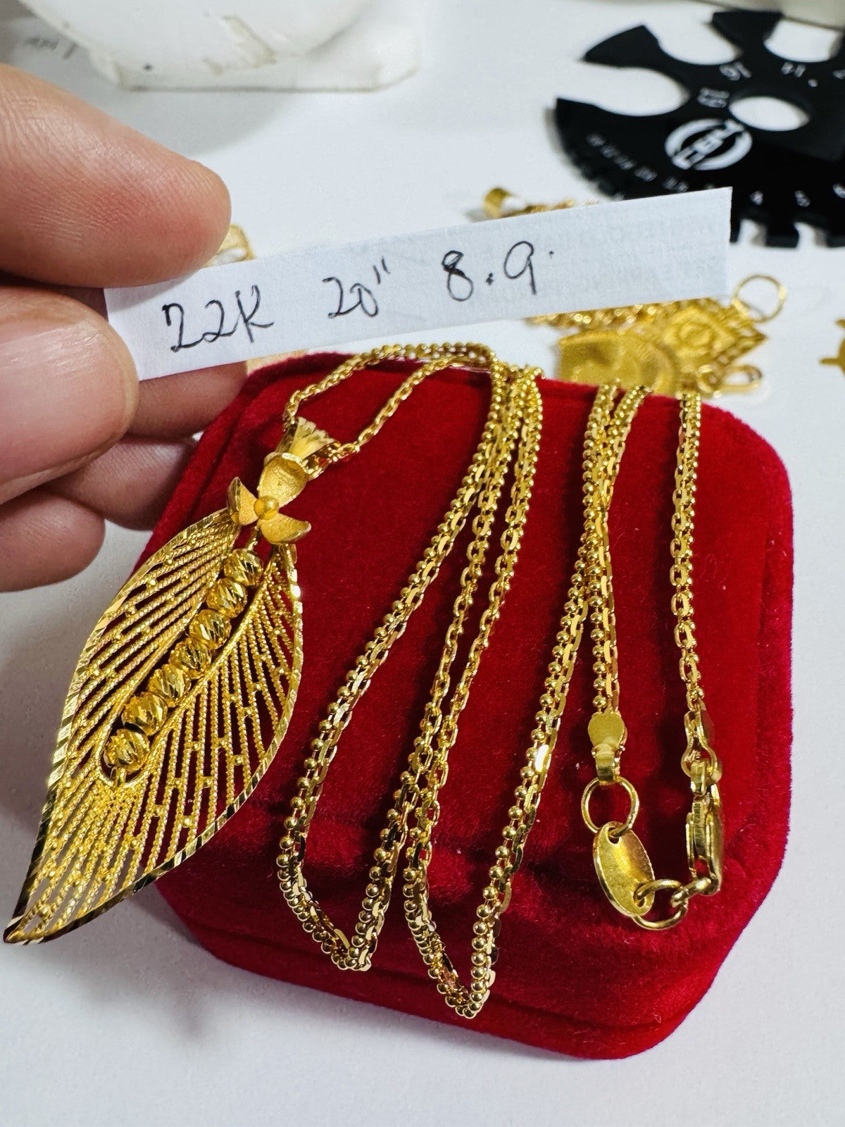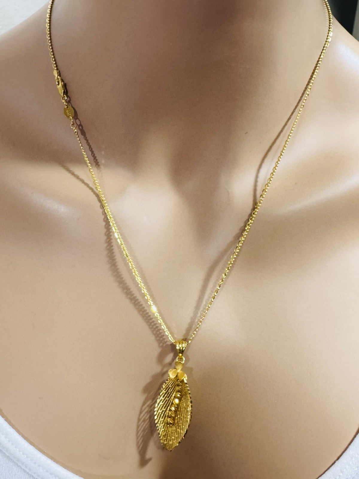 22K 916 Real Dubai Saudi Yellow Gold 20” Long Leaves Leaf Necklace 8.9g 2.2mm