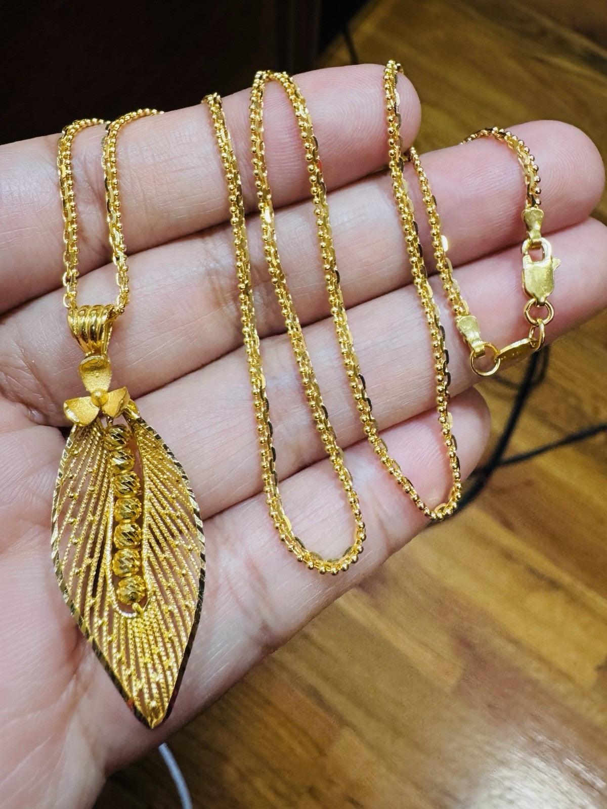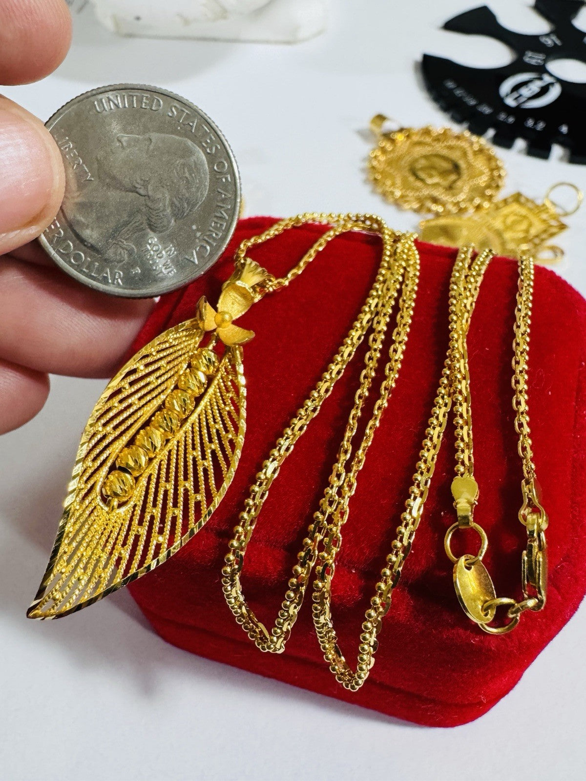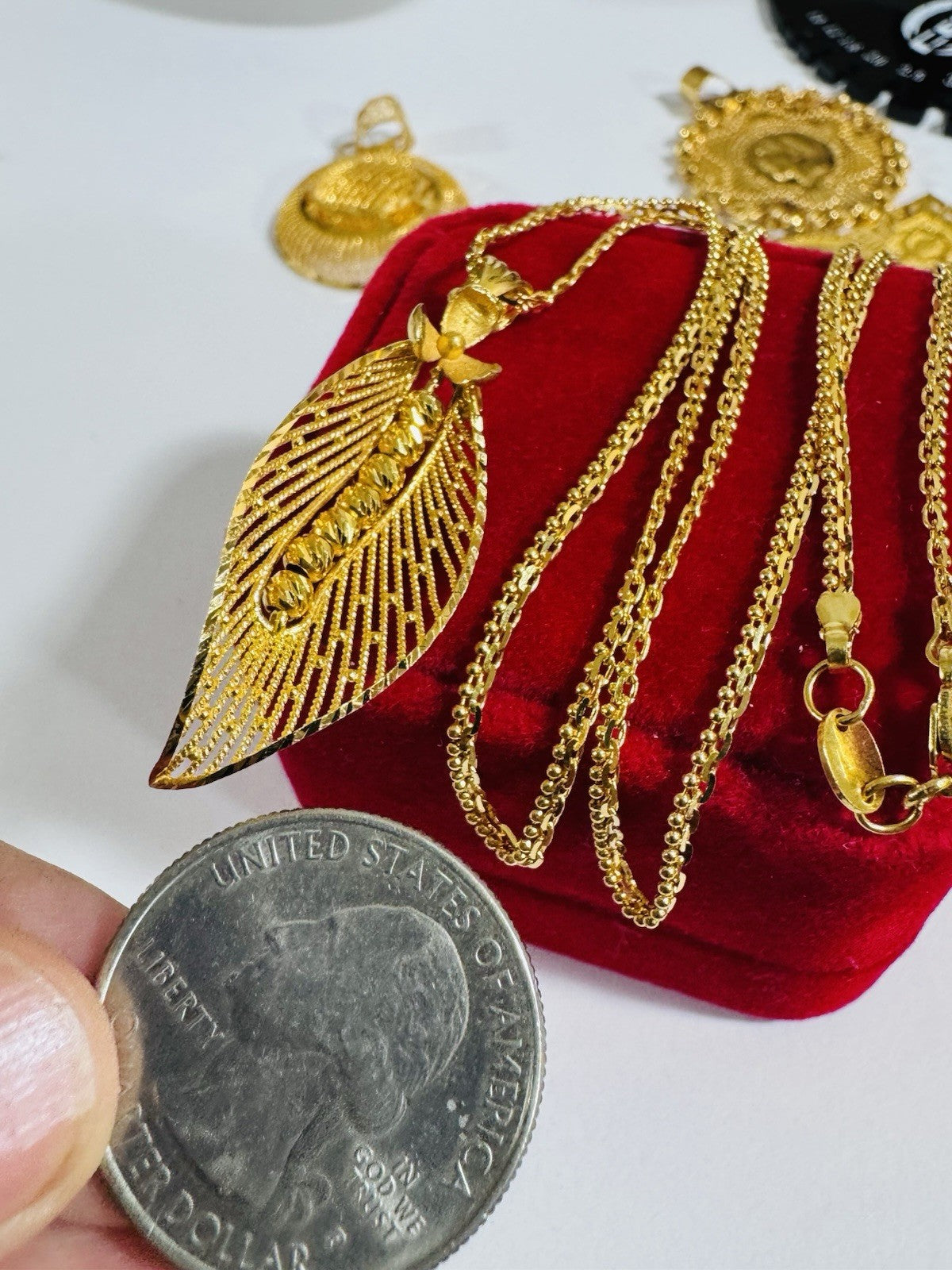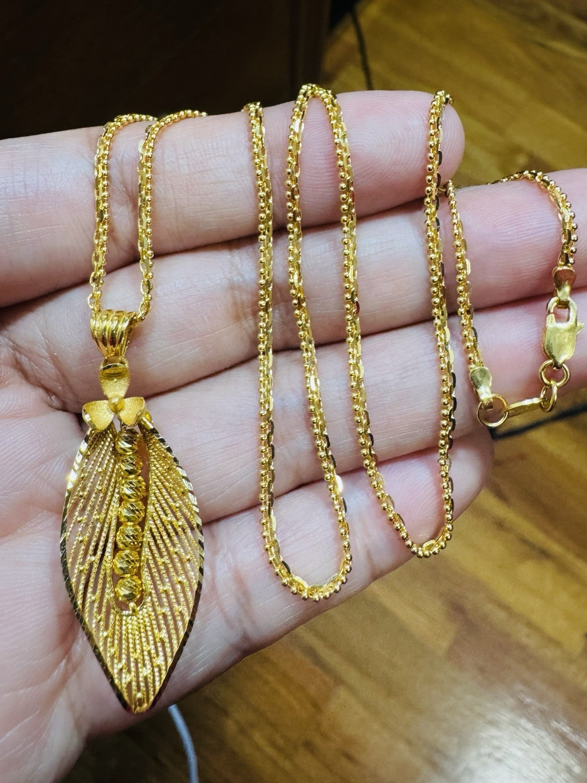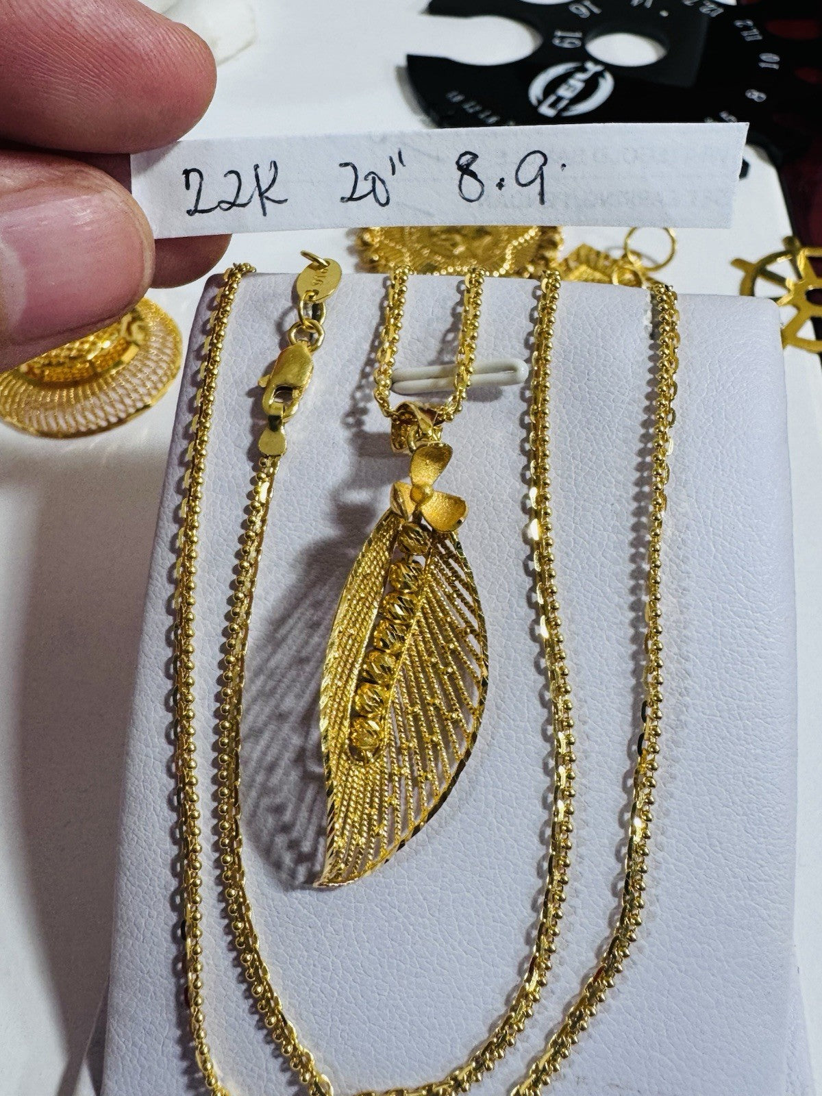 22K 916 Real Dubai Saudi Yellow Gold 20” Long Leaves Leaf Necklace 8.9g 2.2mm