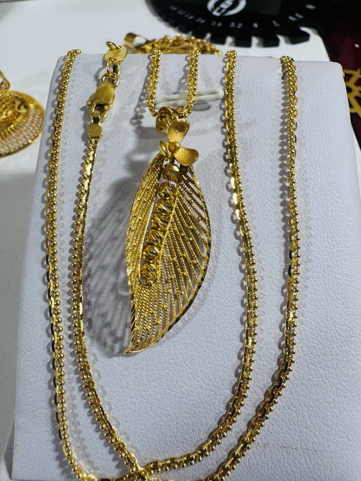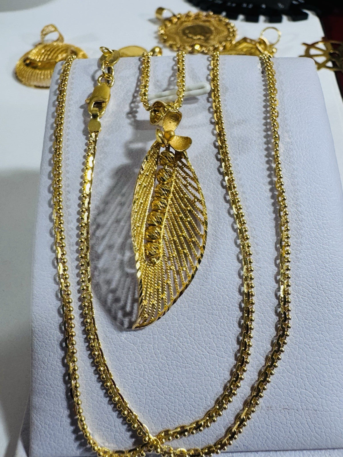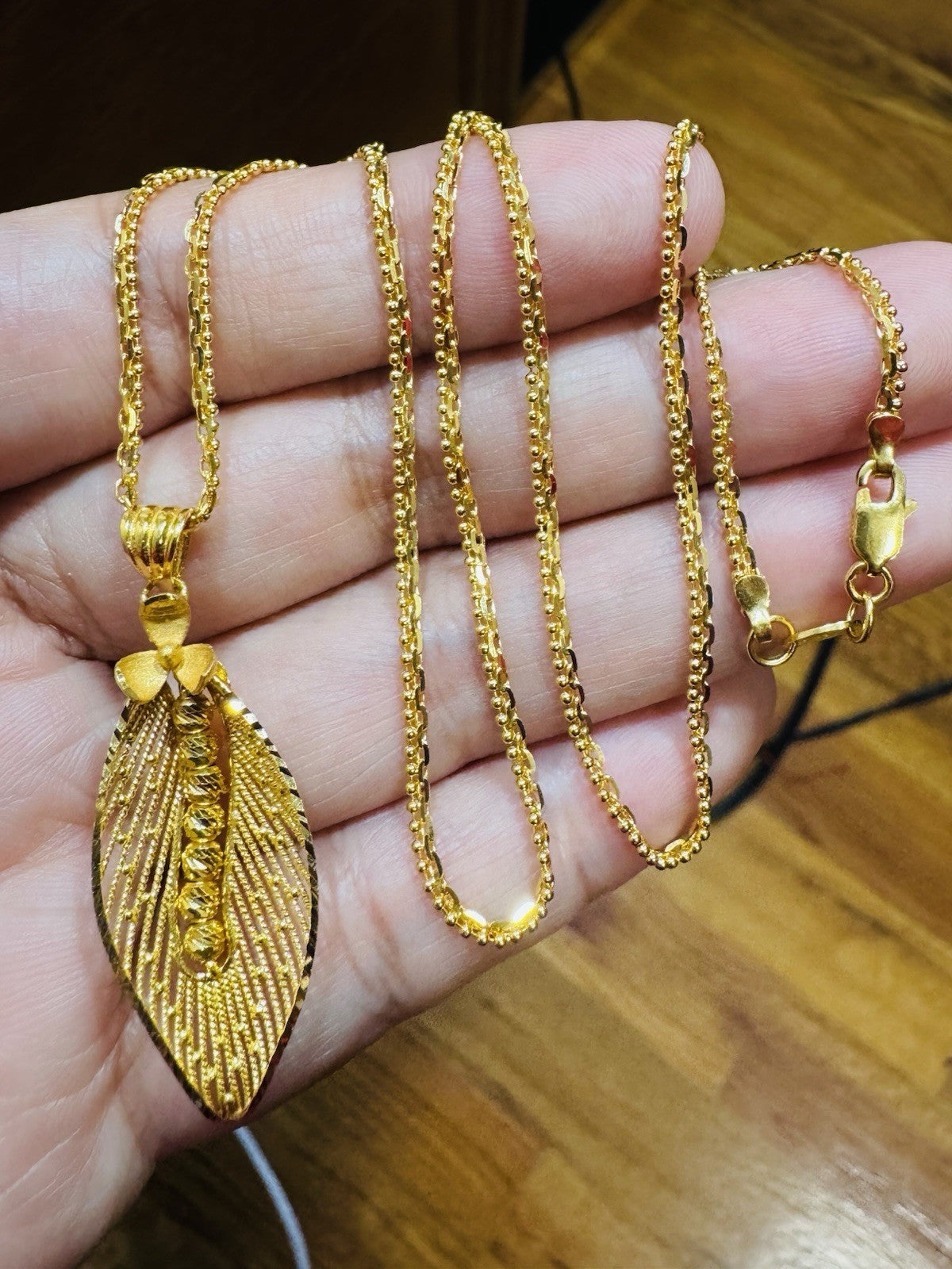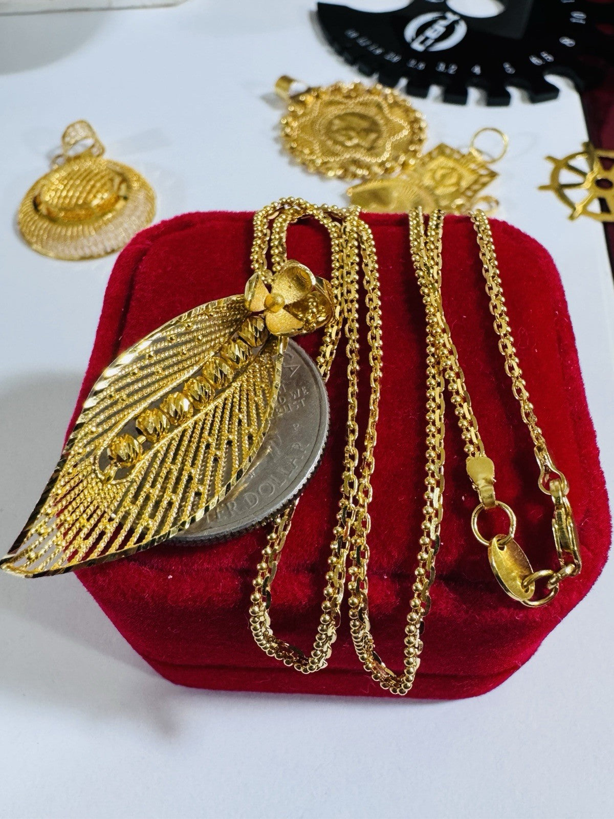 22K 916 Real Dubai Saudi Yellow Gold 20” Long Leaves Leaf Necklace 8.9g 2.2mm