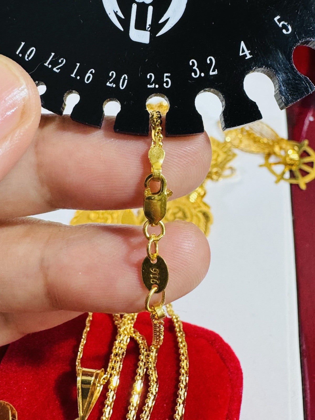 *100% 22C gold "916” equivalent, Mark stamp and tested Saudi gold, Light weight chain yet strong enough to hold.