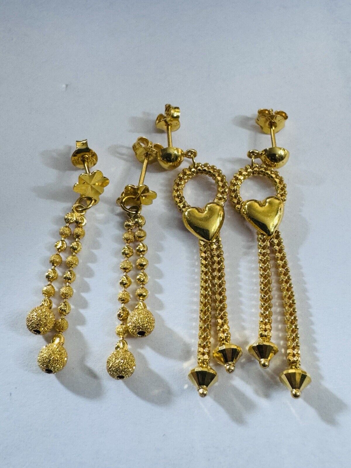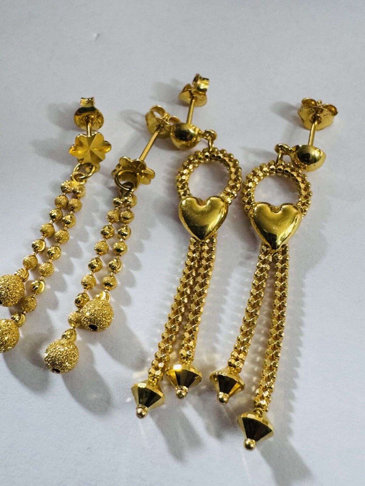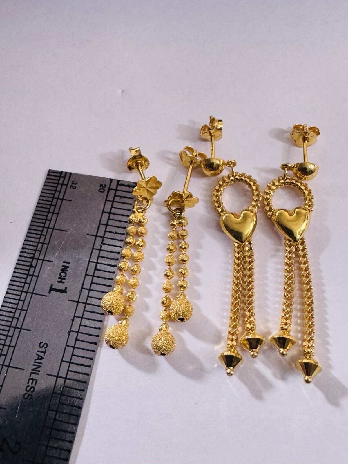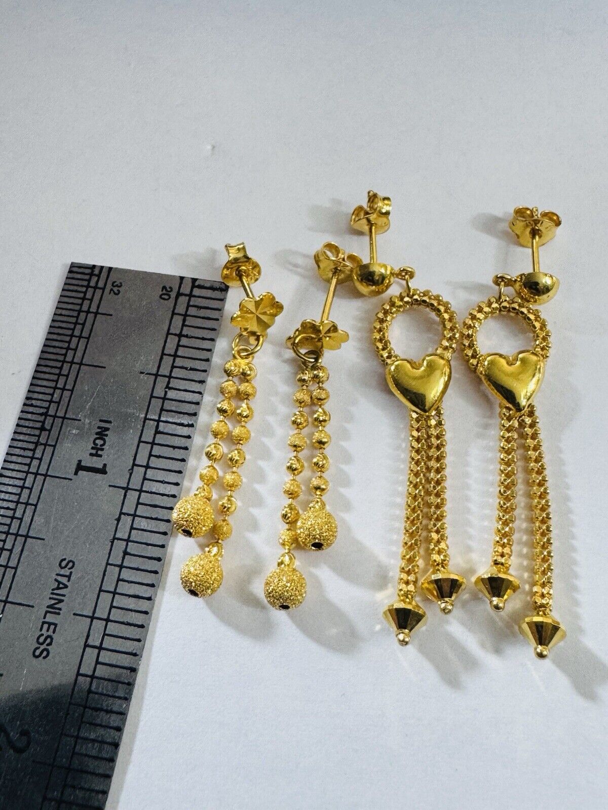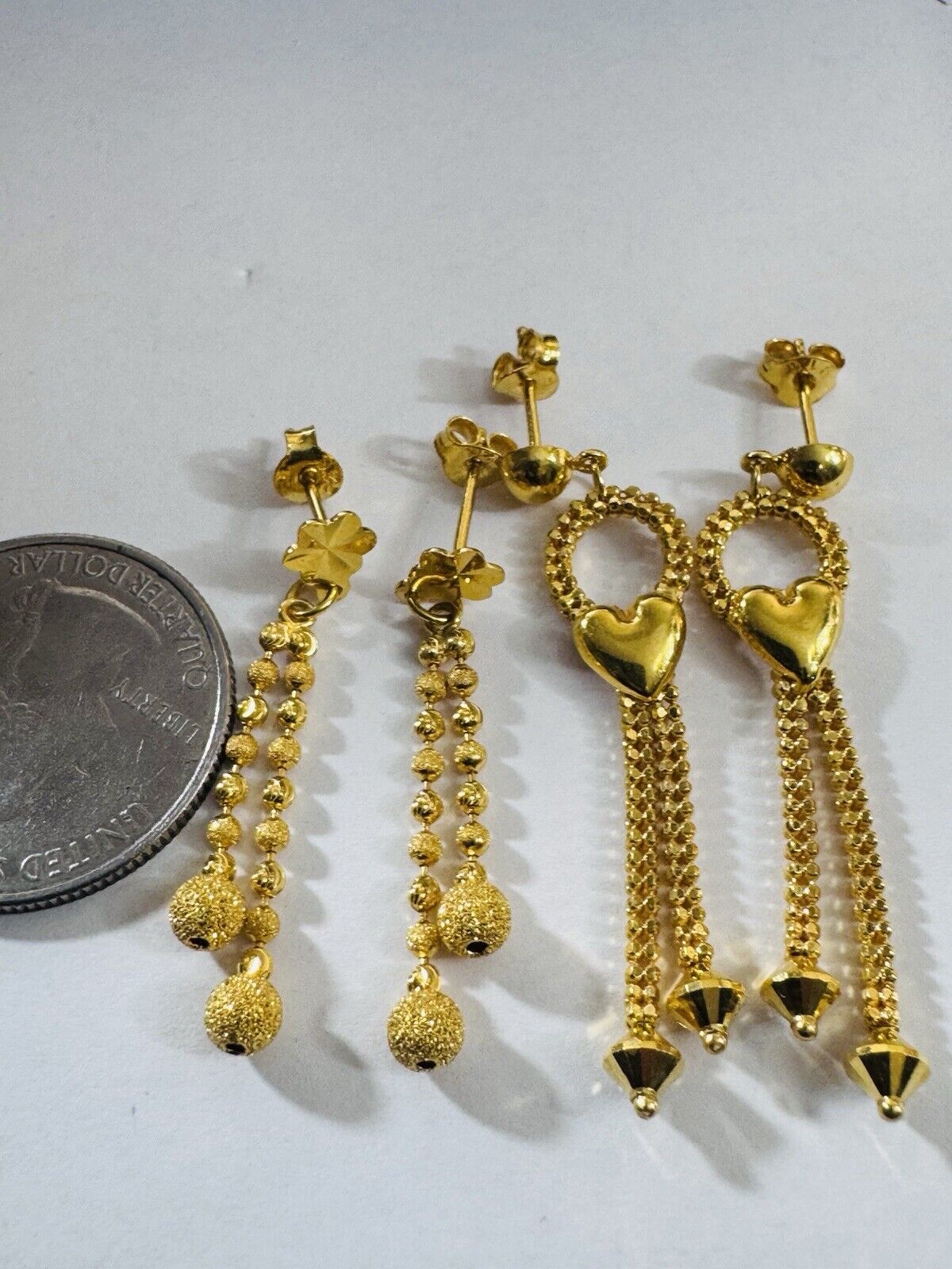 22K 916 Solid FineGold Women’s 2 Set Heart & Dangle Ball Beads Earrings 8.6g