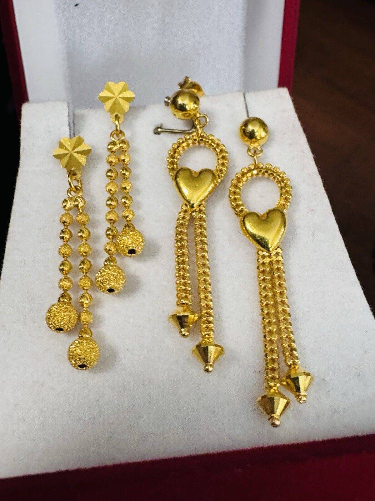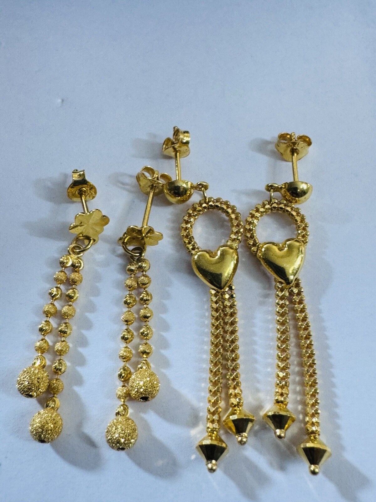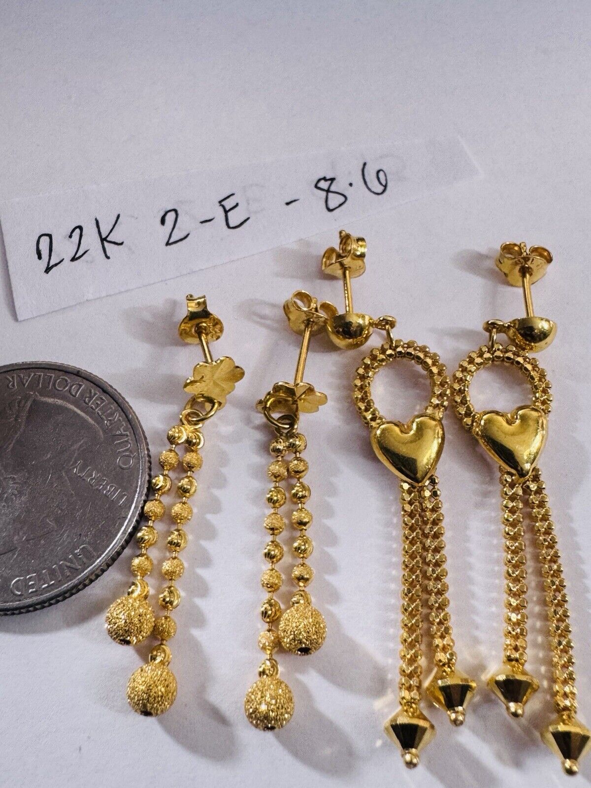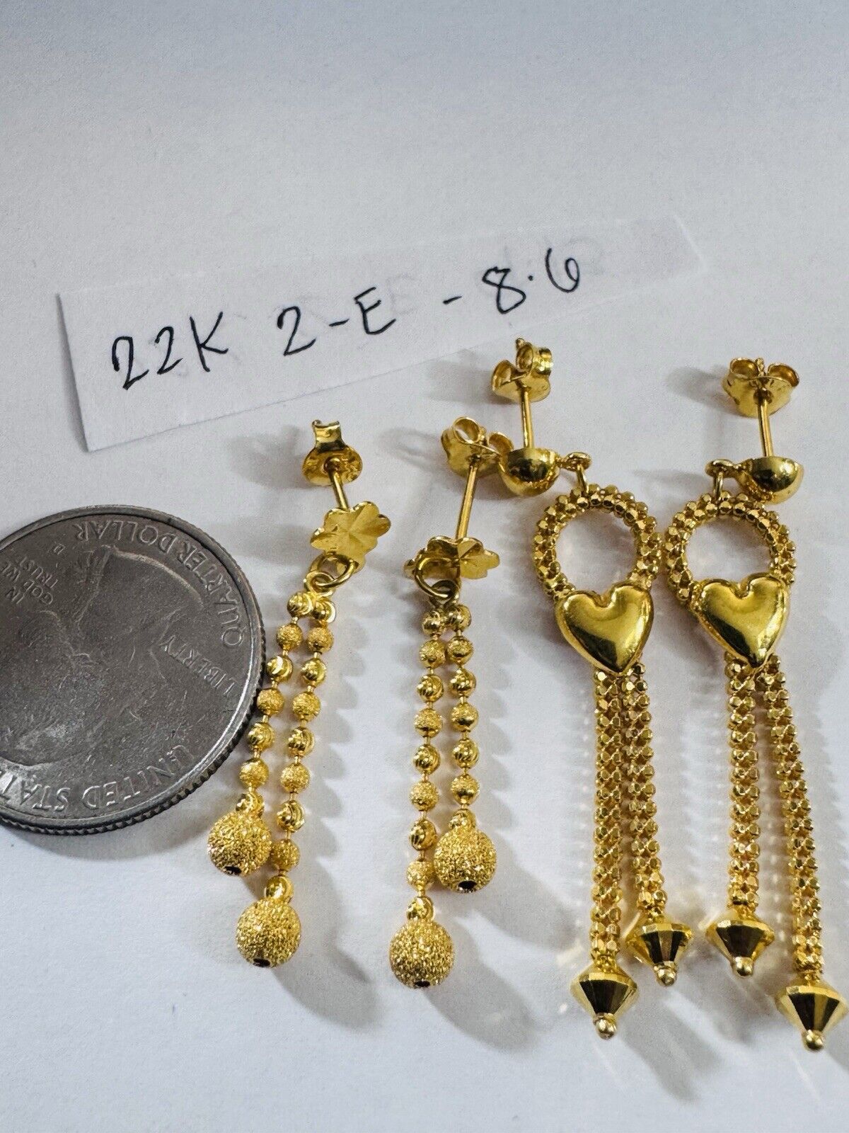 • Yes You are buying Beautiful 22C Fine 916 Saudi Real Fine Gold Beautiful Women's 2 Set of Beautiful Unique style Earrings 8.6g Fast n free-ship USA Seller