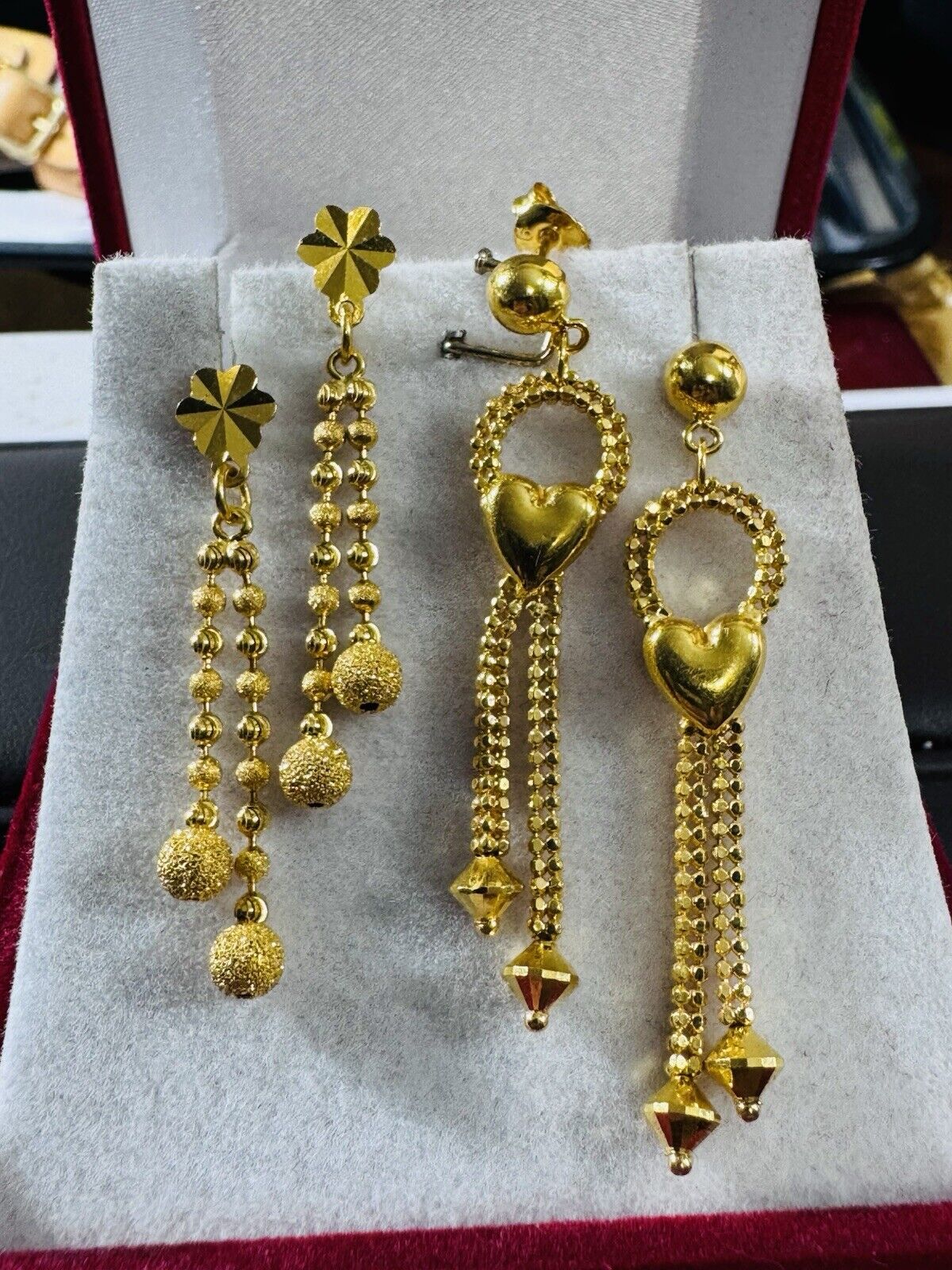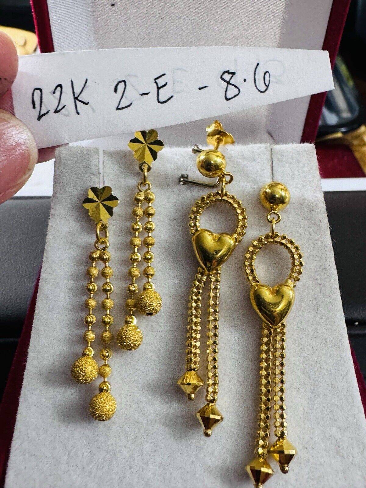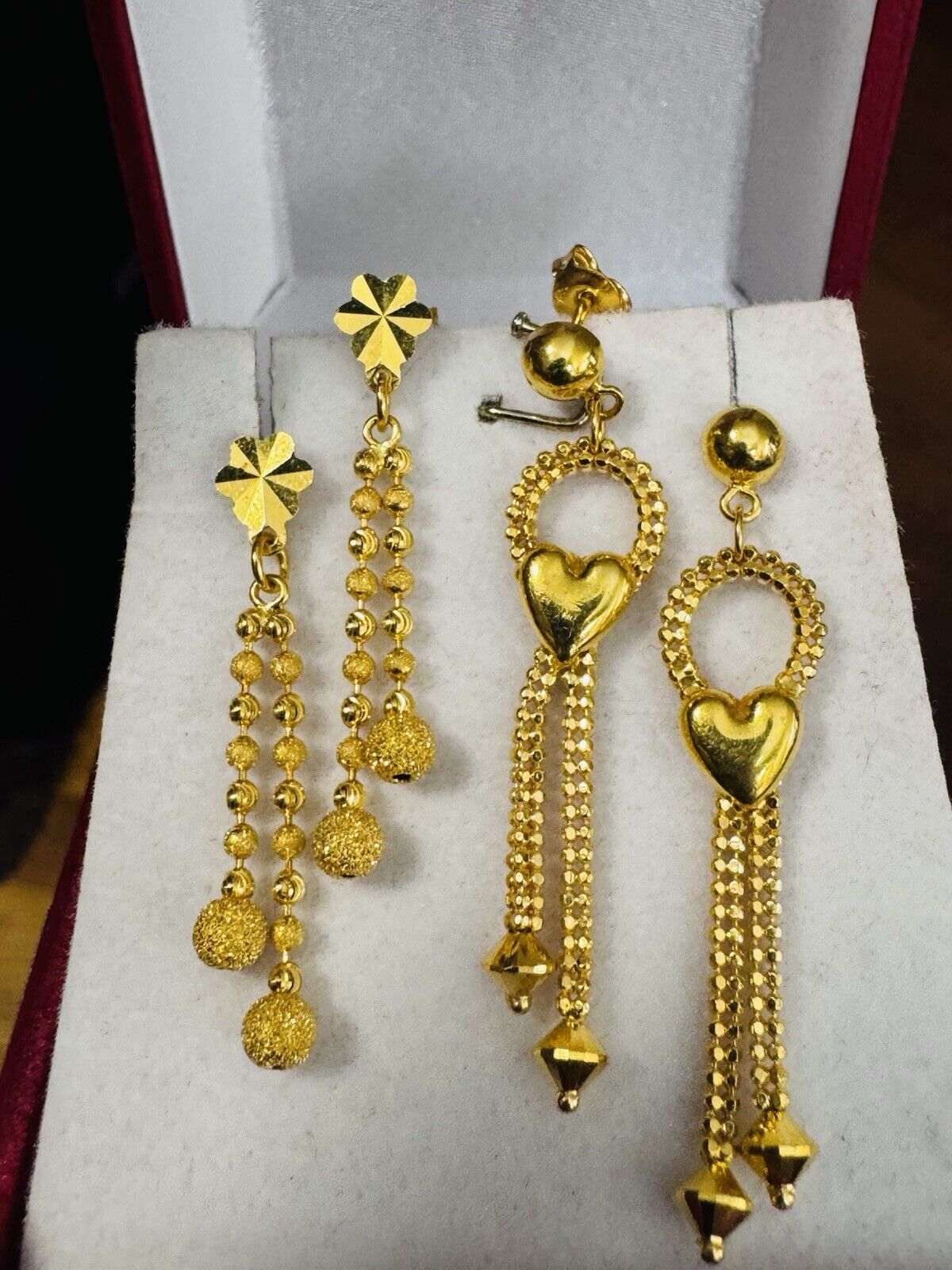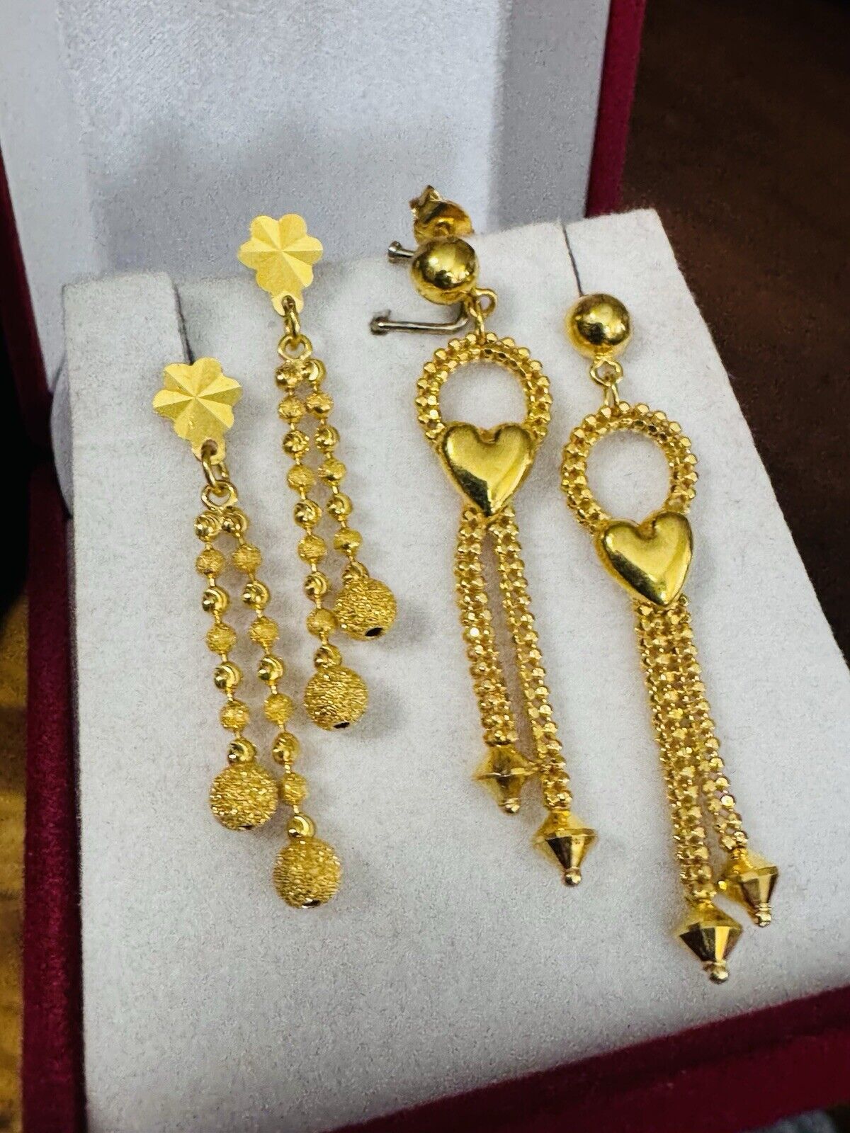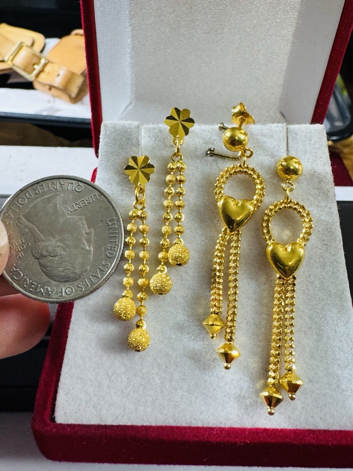 • Yes You are buying Beautiful 22C Fine 916 Saudi Real Fine Gold Beautiful Women's 2 Set of Beautiful Unique style Earrings 8.6g Fast n free-ship USA Seller